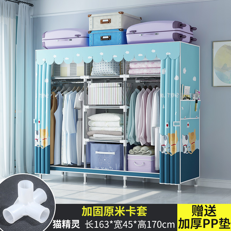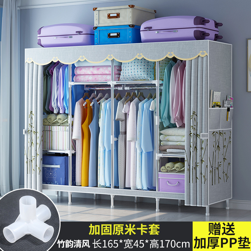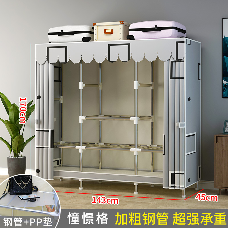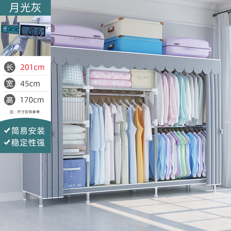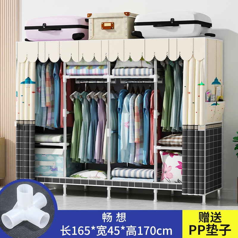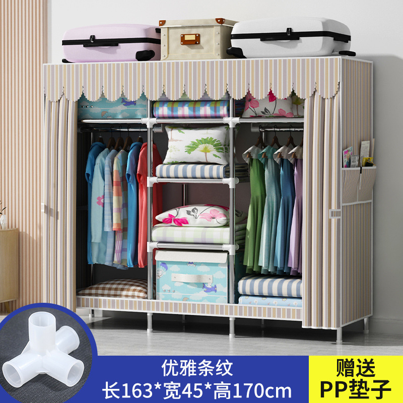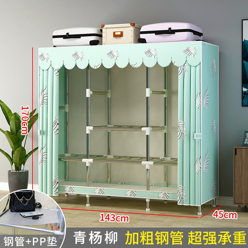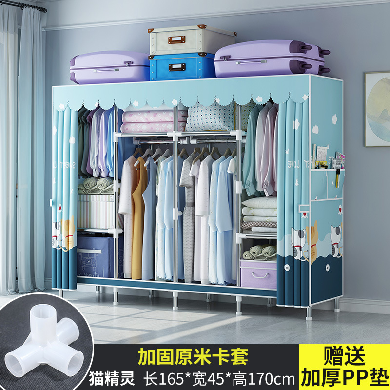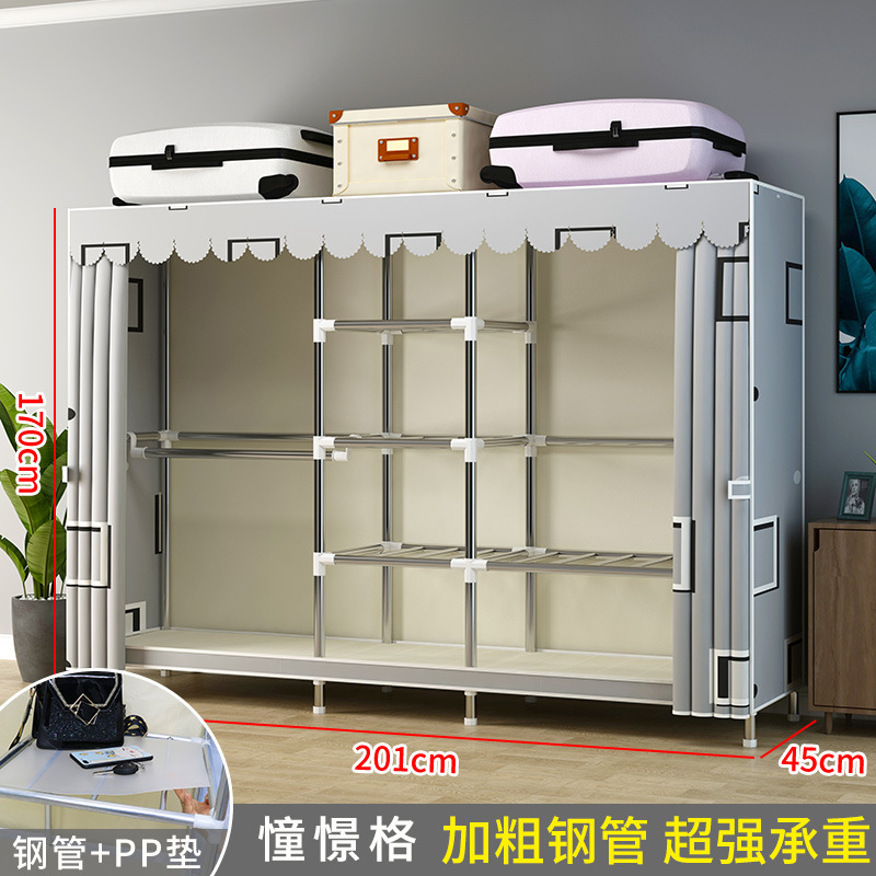 간단한 옷장 홈 굵은 강화 스틸 파이프 천 옷장 침실 조립 옷장 렌탈룸 옷 보관 랙스토어 가기