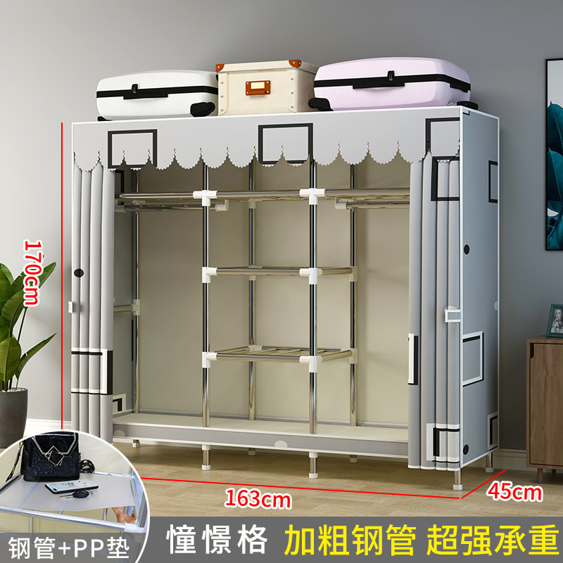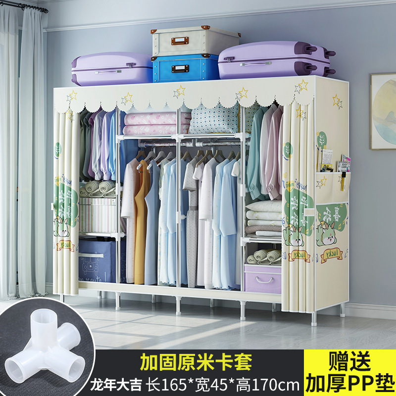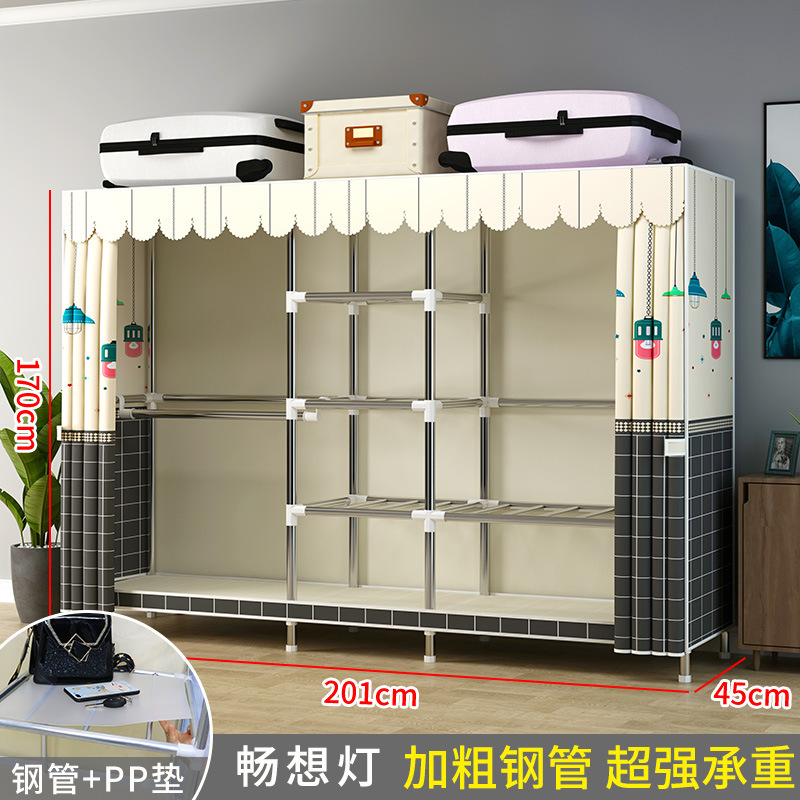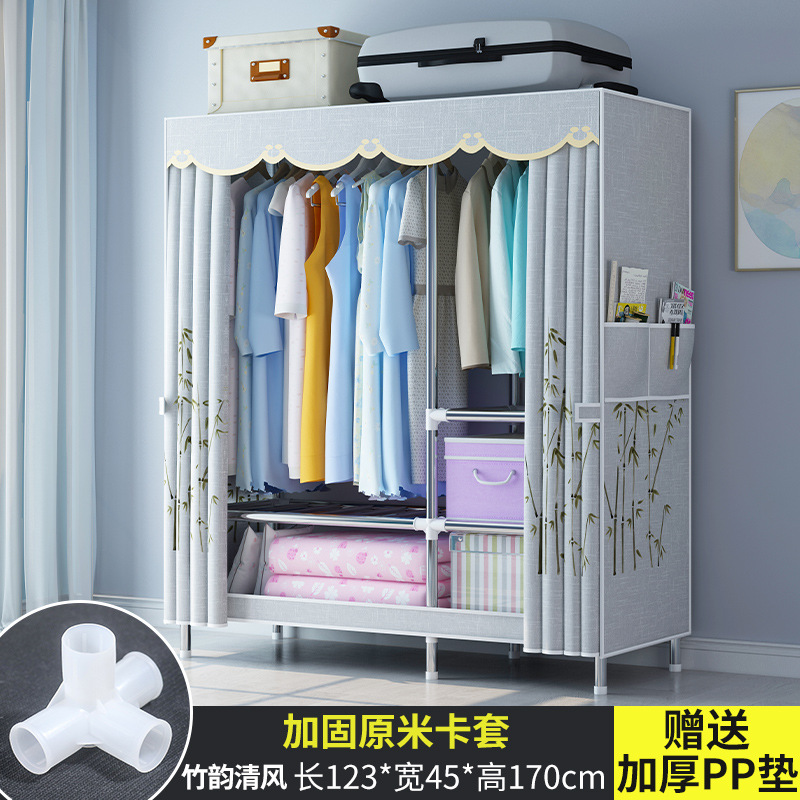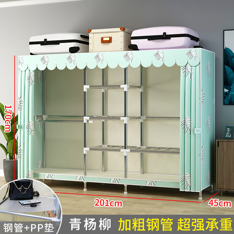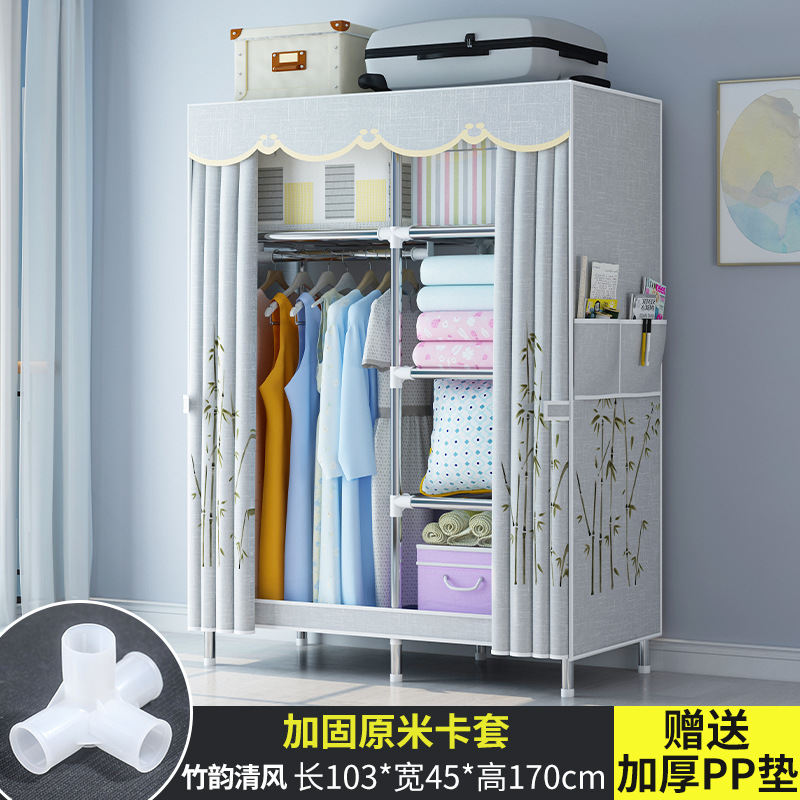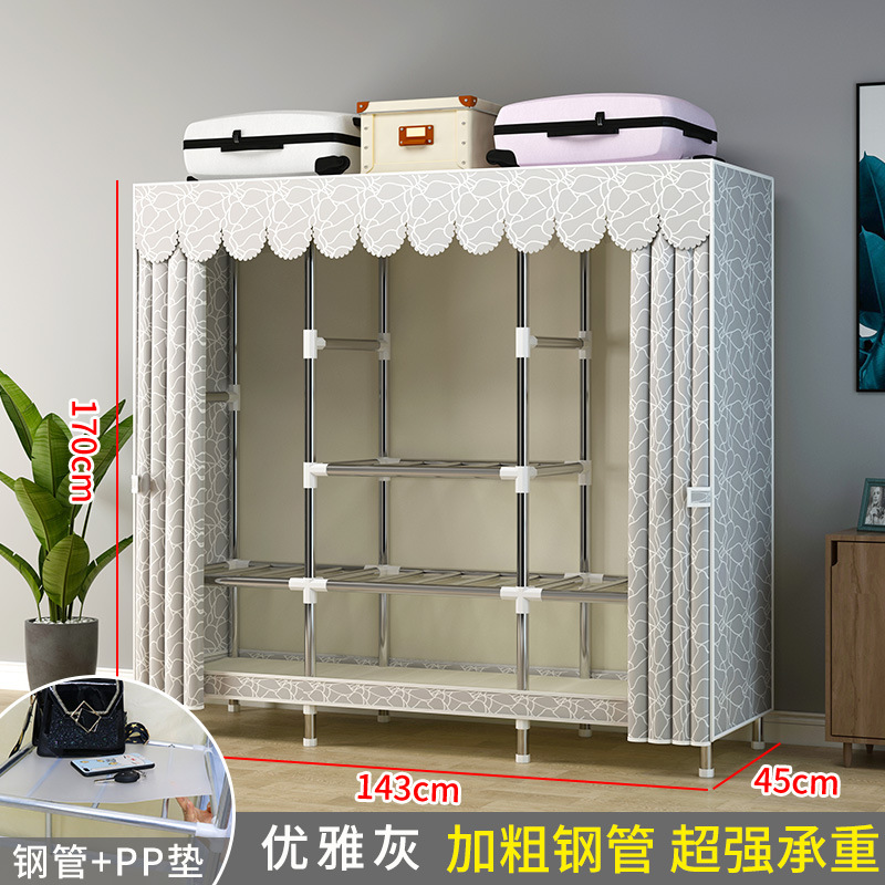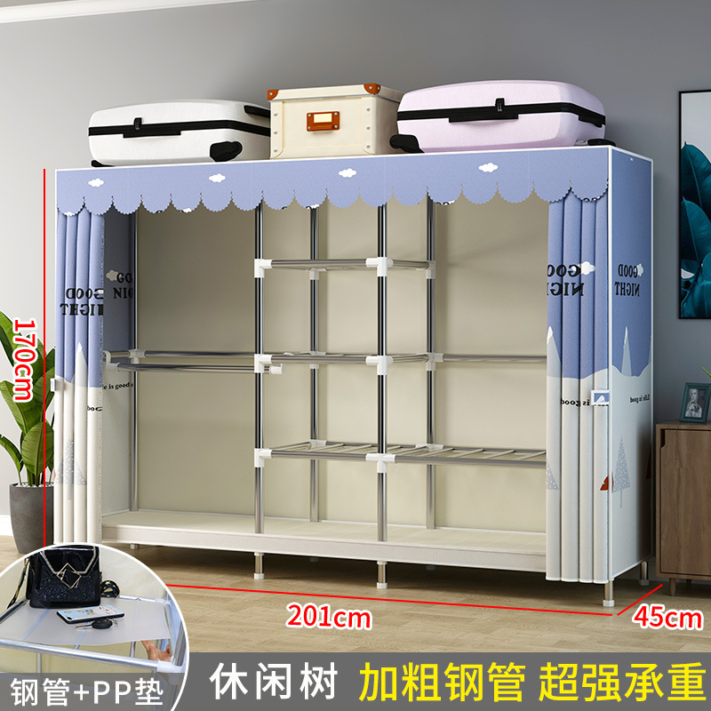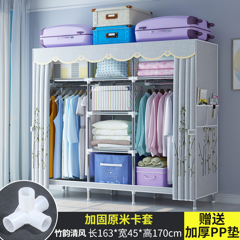 간단한 옷장 홈 굵은 강화 스틸 파이프 천 옷장 침실 조립 옷장 렌탈룸 옷 보관 랙스토어 가기