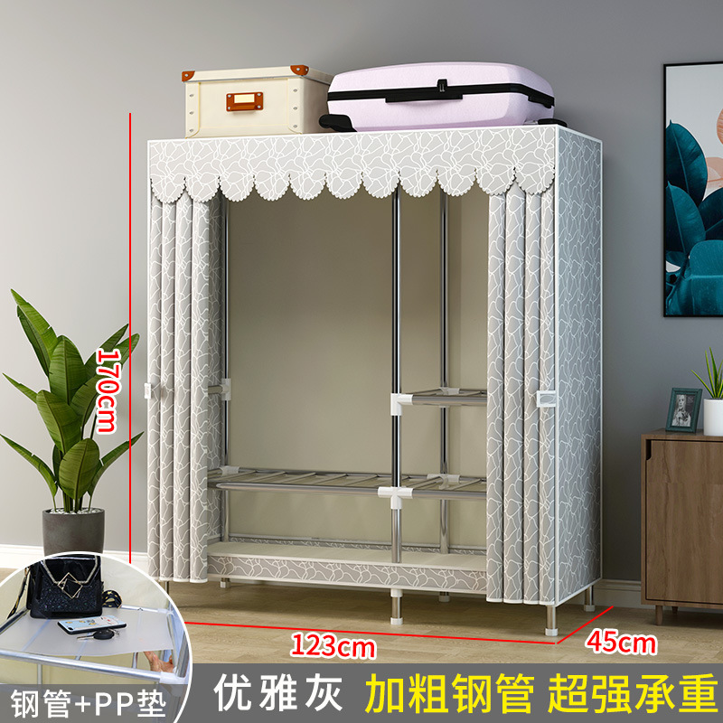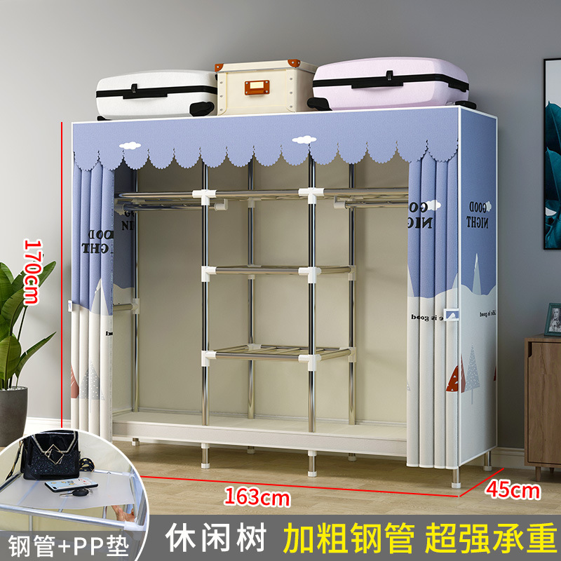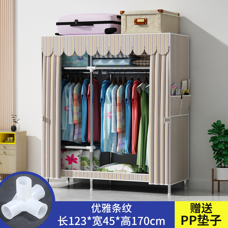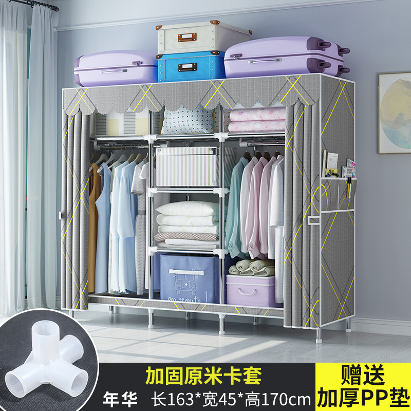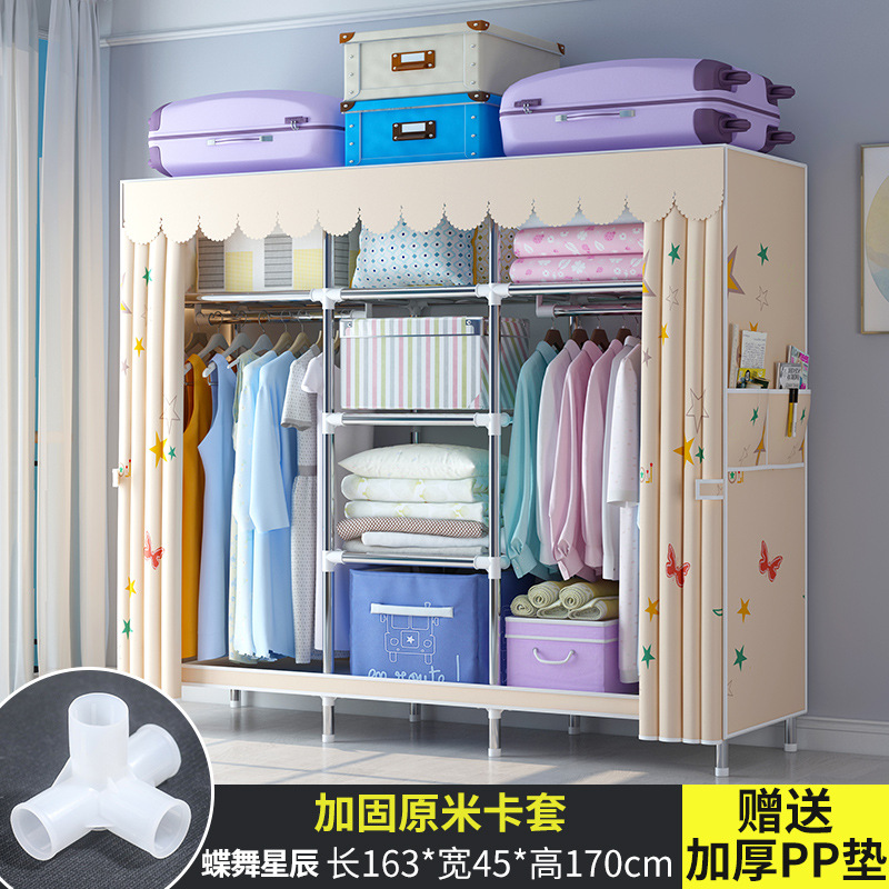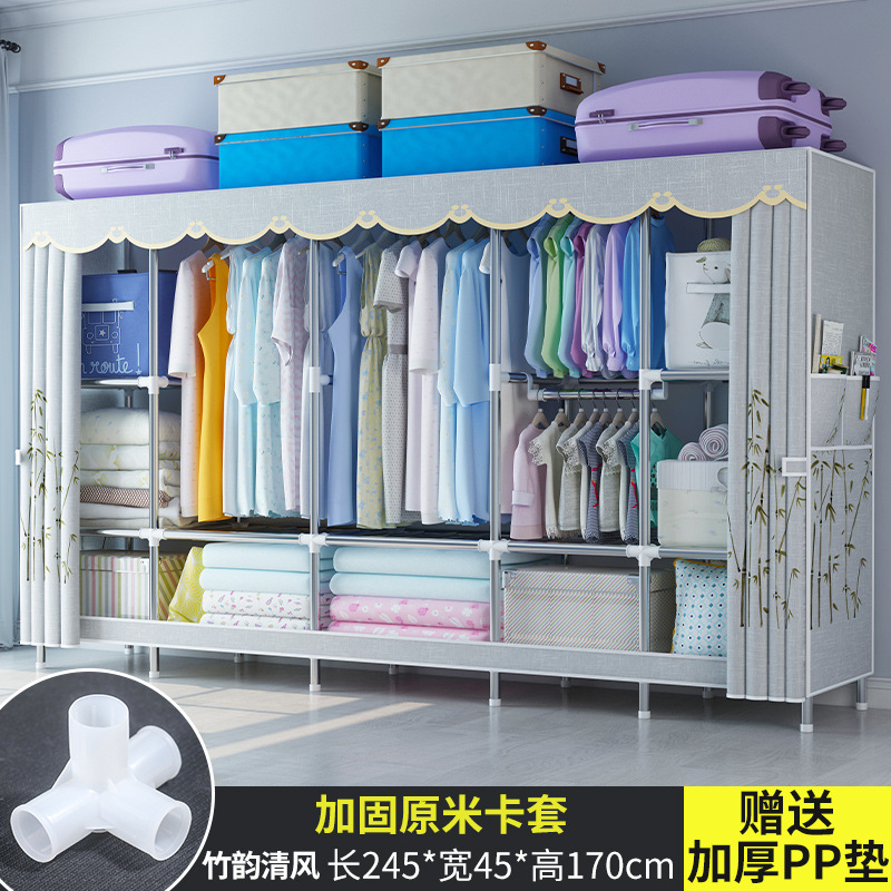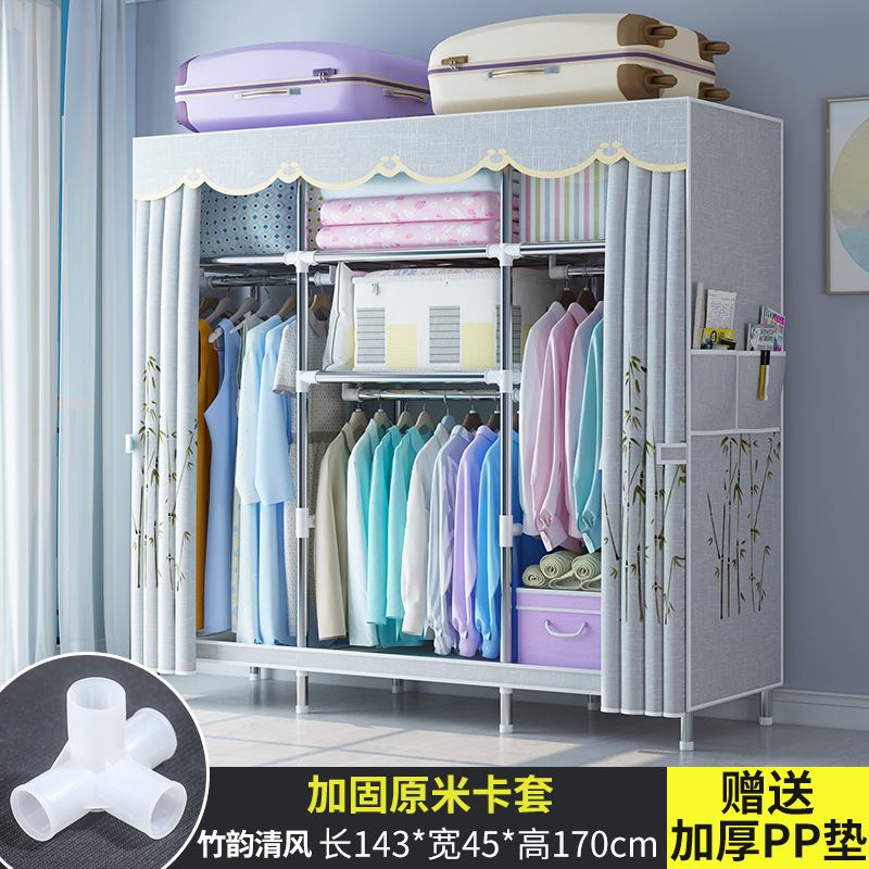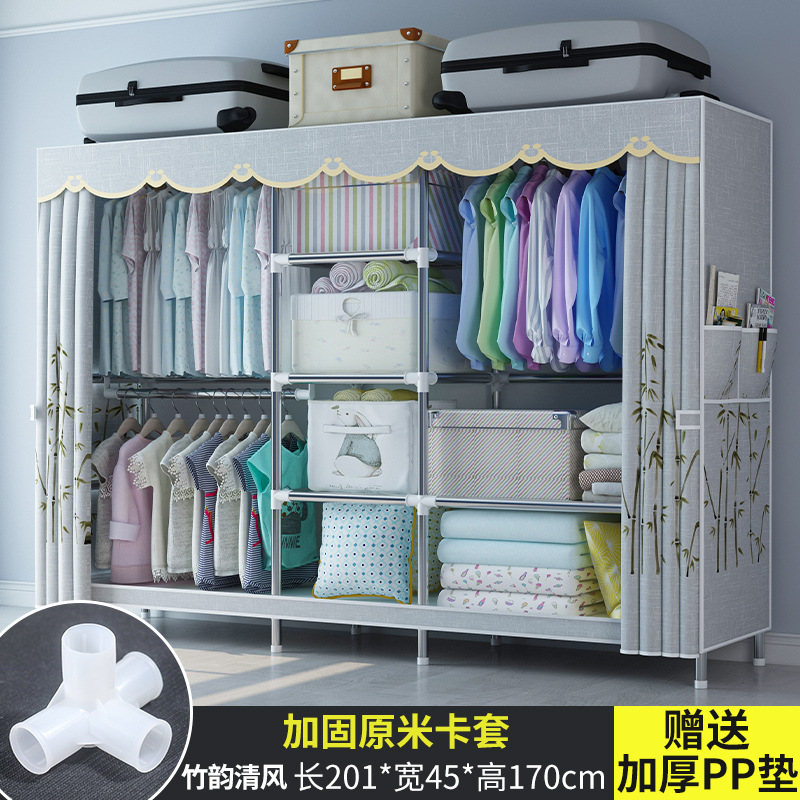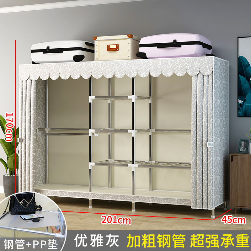 간단한 옷장 홈 굵은 강화 스틸 파이프 천 옷장 침실 조립 옷장 렌탈룸 옷 보관 랙스토어 가기