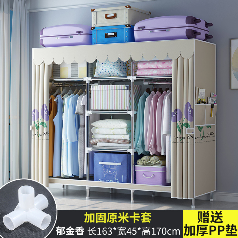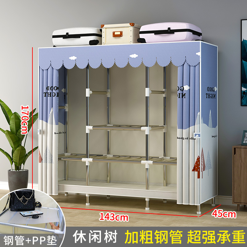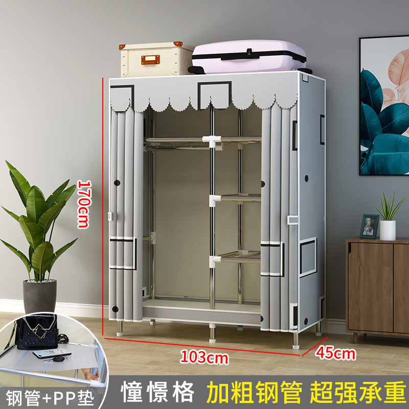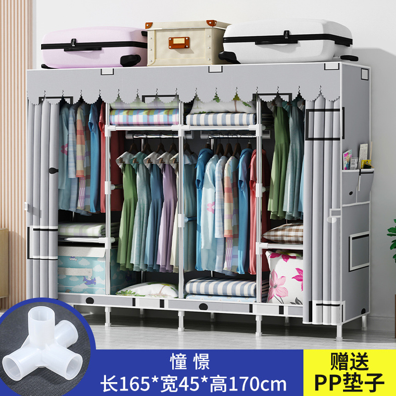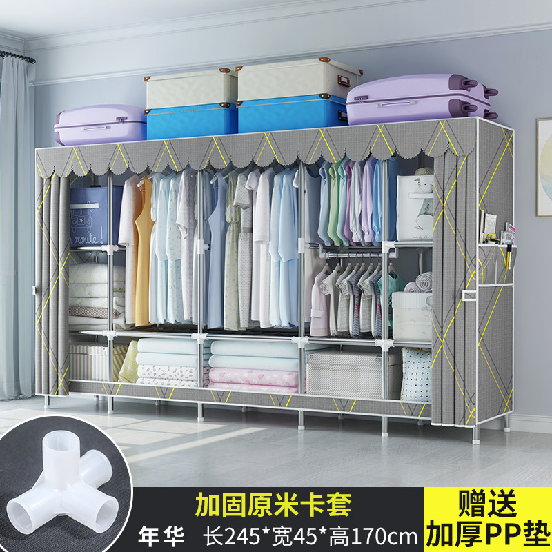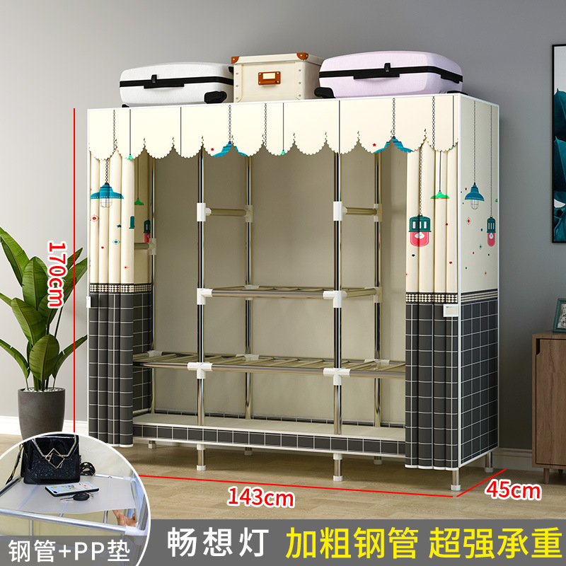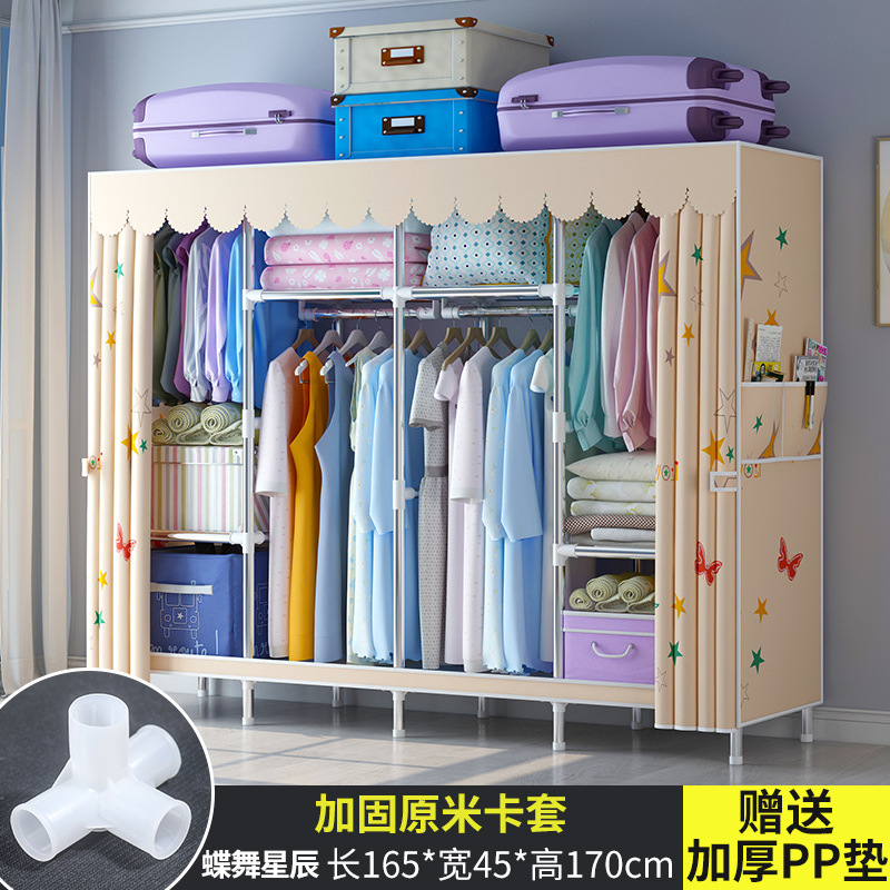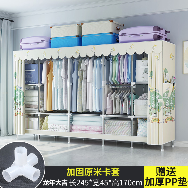 간단한 옷장 홈 굵은 강화 스틸 파이프 천 옷장 침실 조립 옷장 렌탈룸 옷 보관 랙스토어 가기
