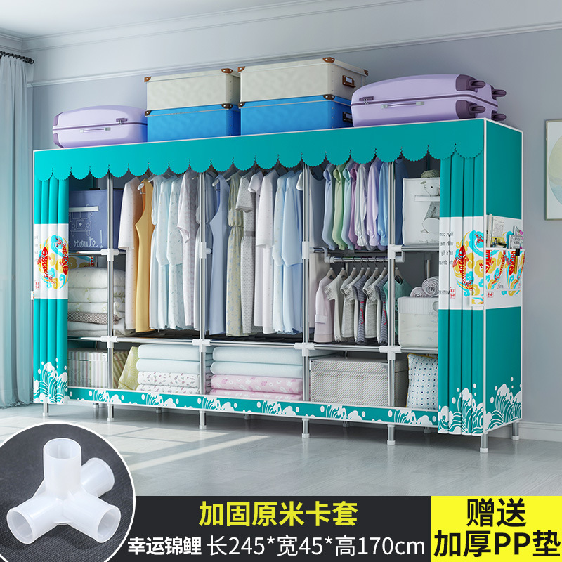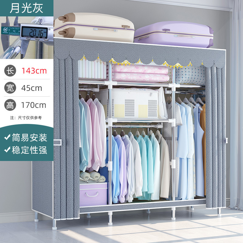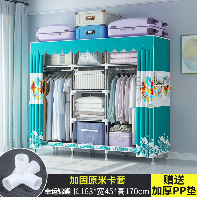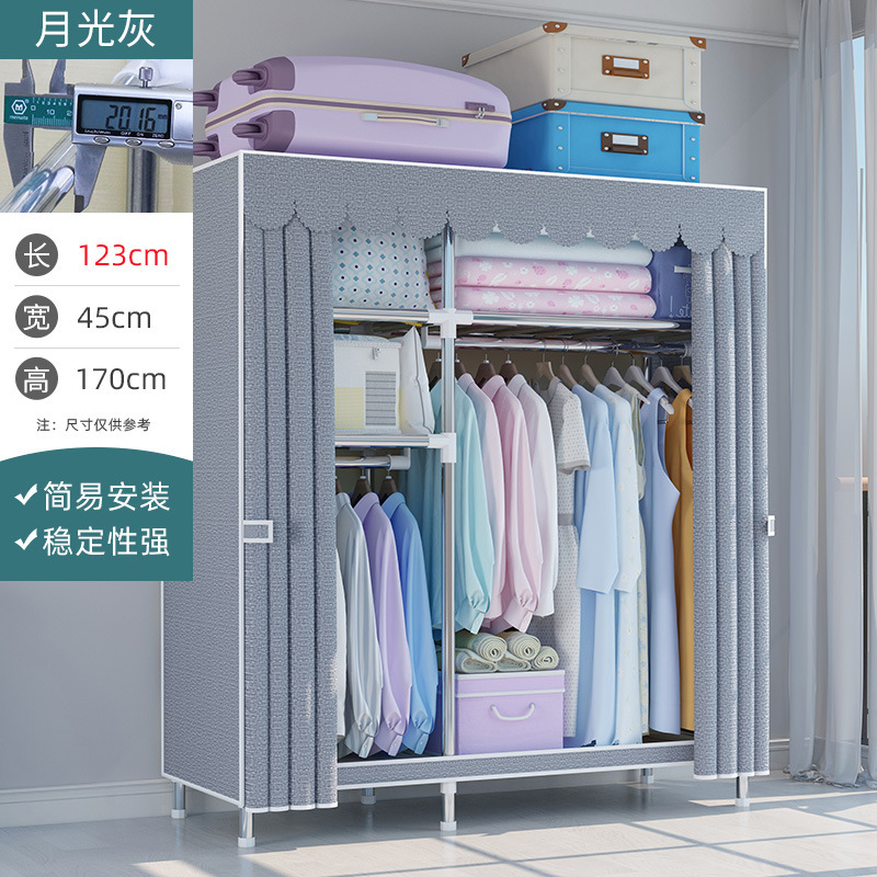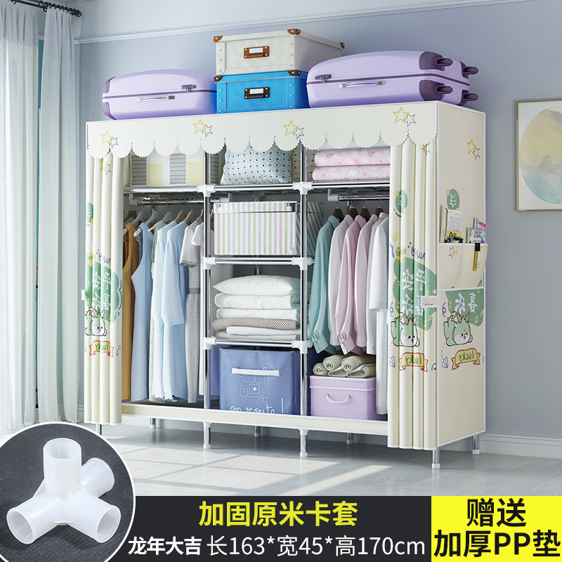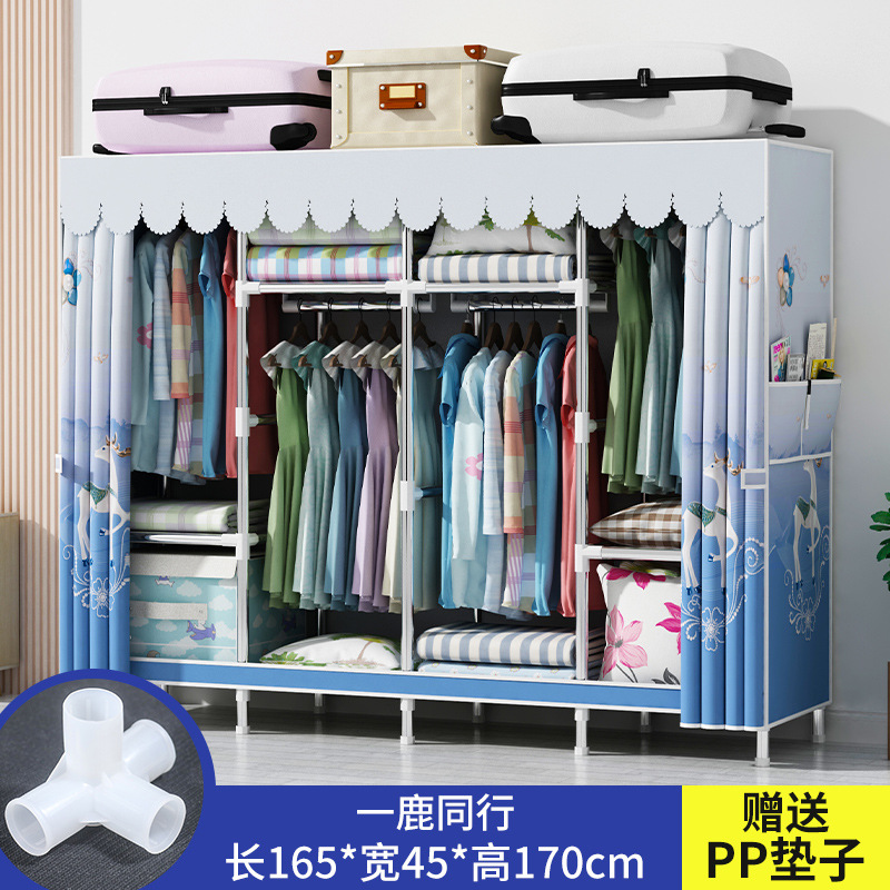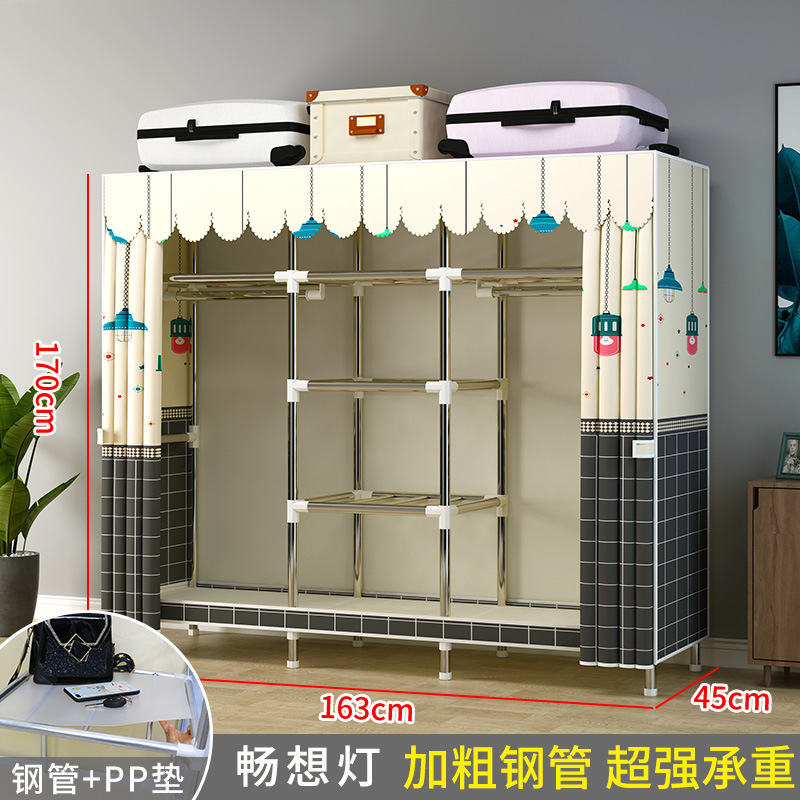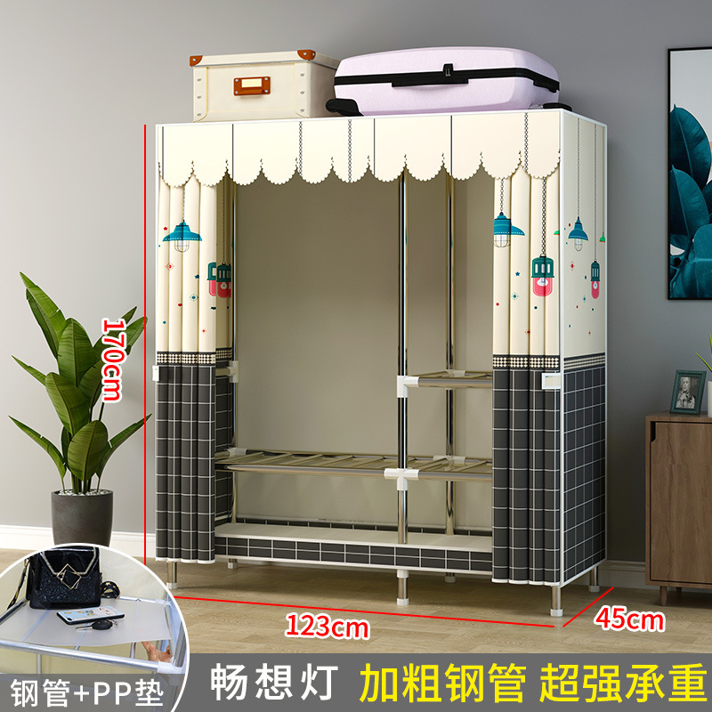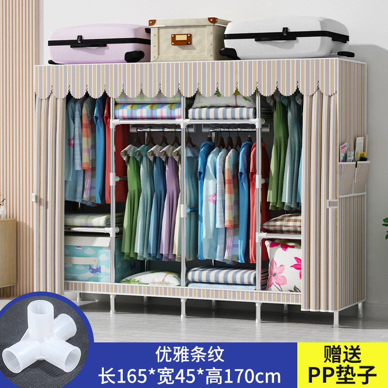 간단한 옷장 홈 굵은 강화 스틸 파이프 천 옷장 침실 조립 옷장 렌탈룸 옷 보관 랙스토어 가기