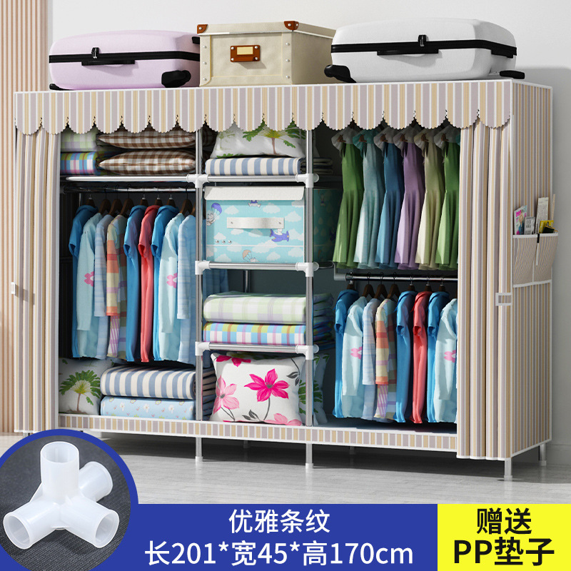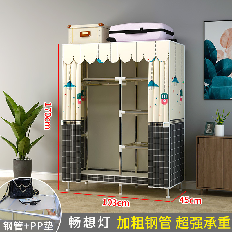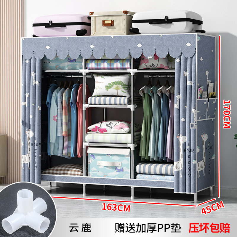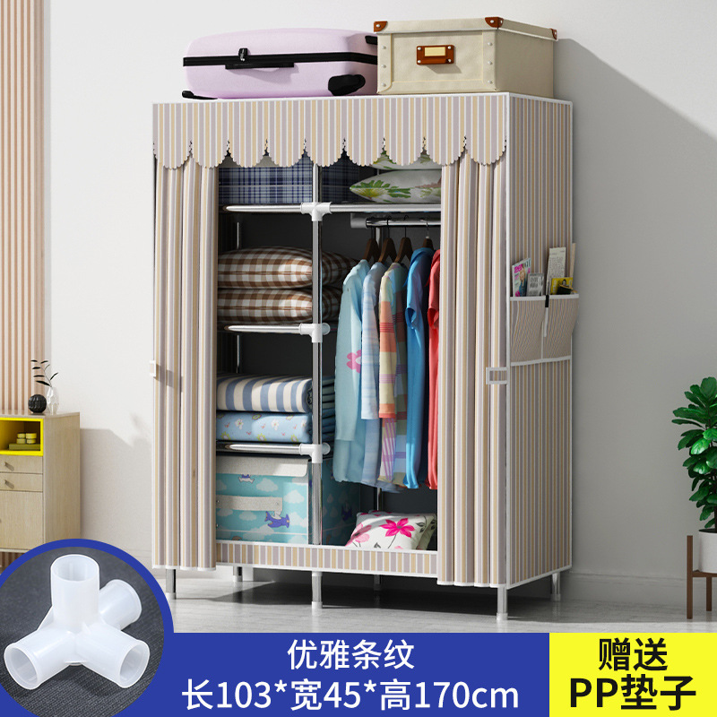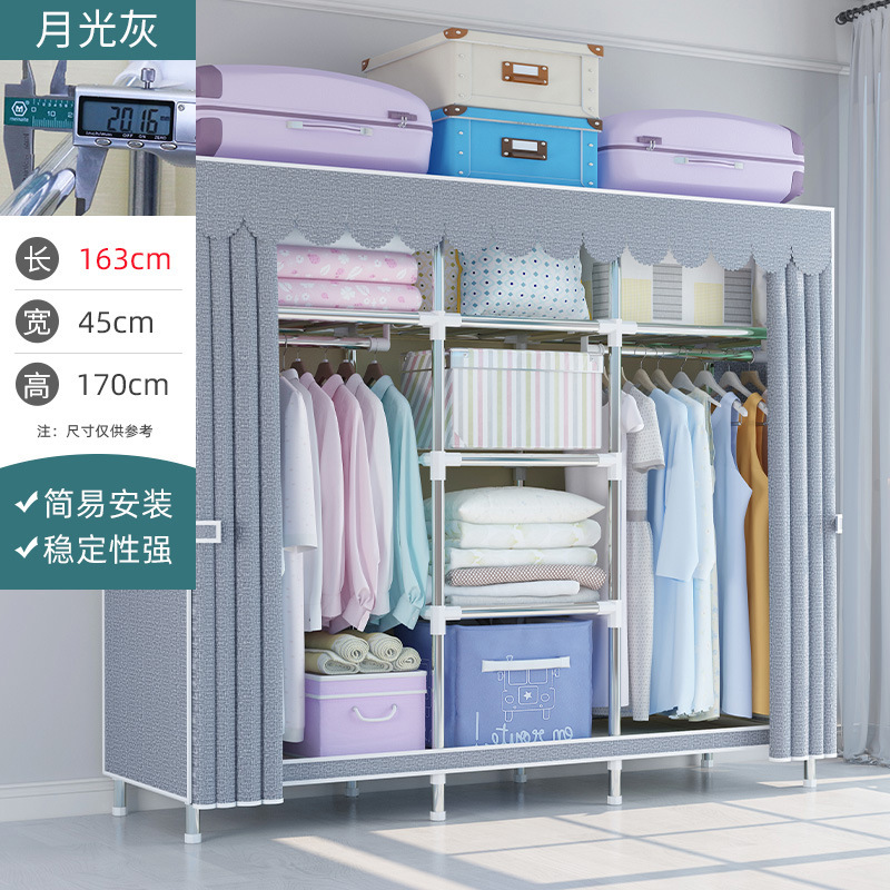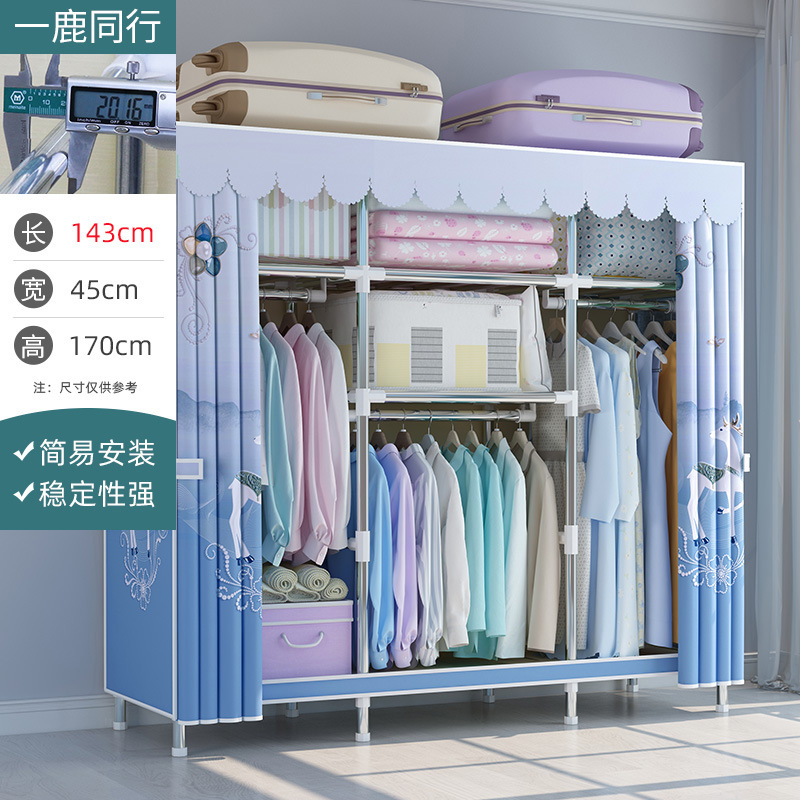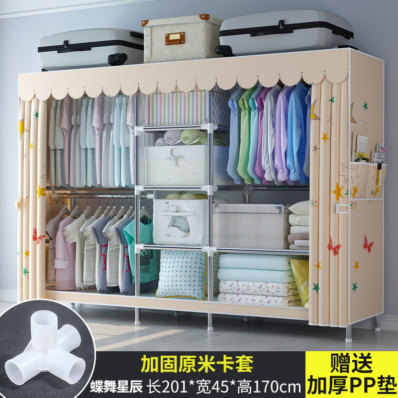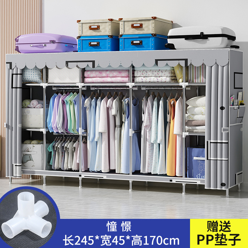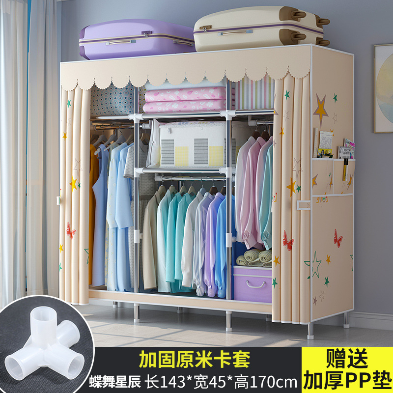 간단한 옷장 홈 굵은 강화 스틸 파이프 천 옷장 침실 조립 옷장 렌탈룸 옷 보관 랙스토어 가기