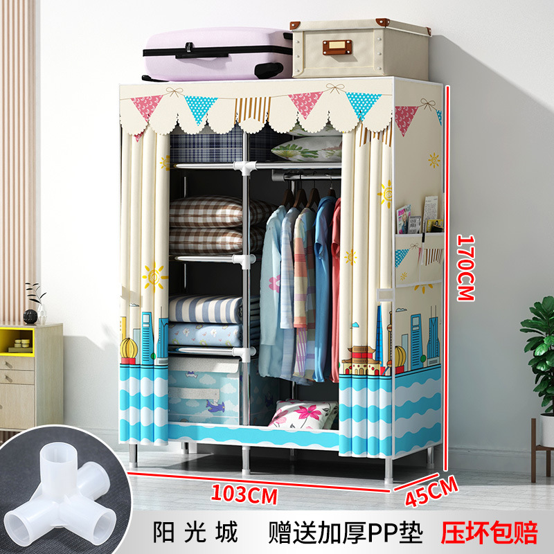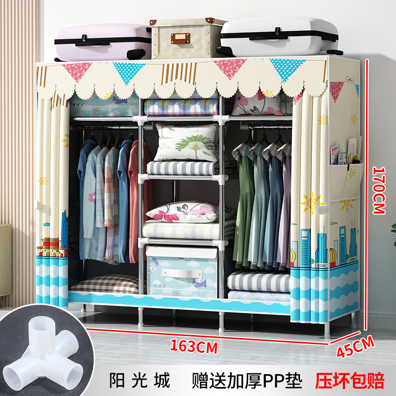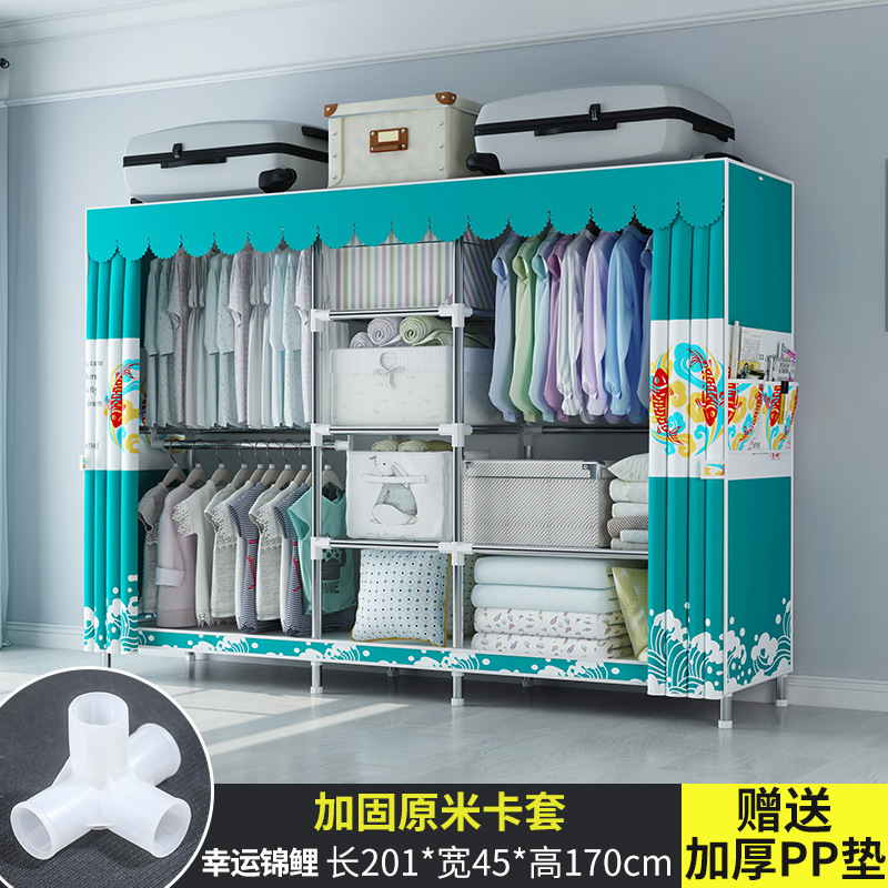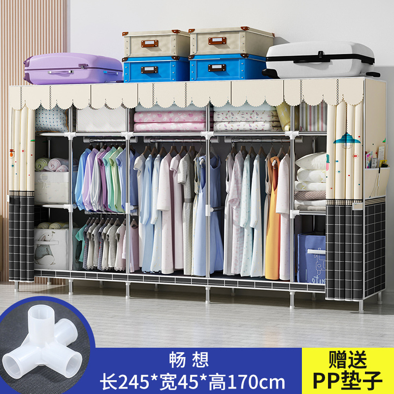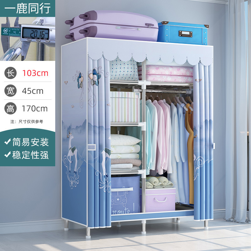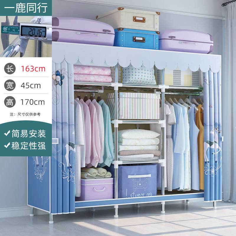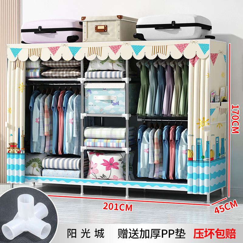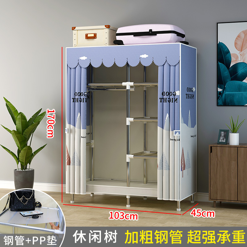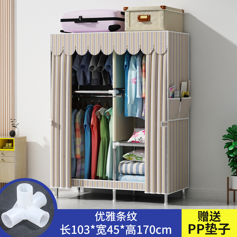 간단한 옷장 홈 굵은 강화 스틸 파이프 천 옷장 침실 조립 옷장 렌탈룸 옷 보관 랙스토어 가기