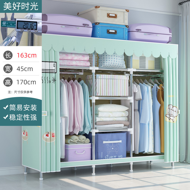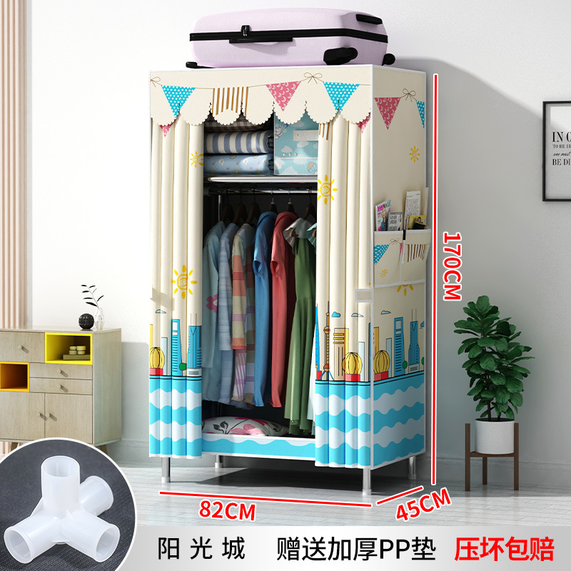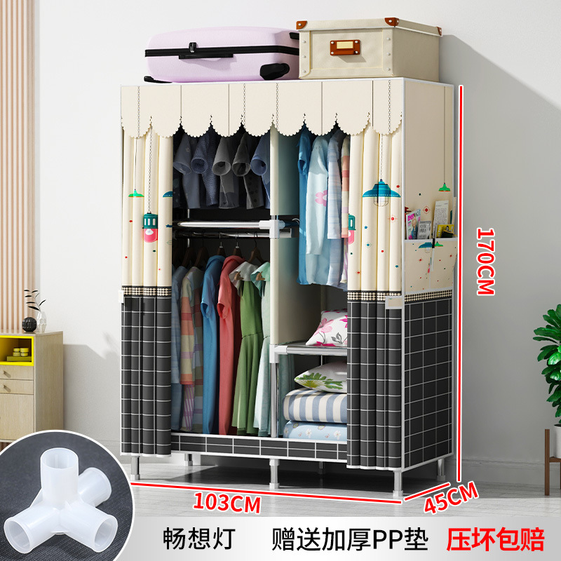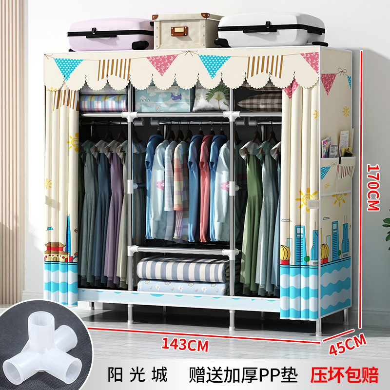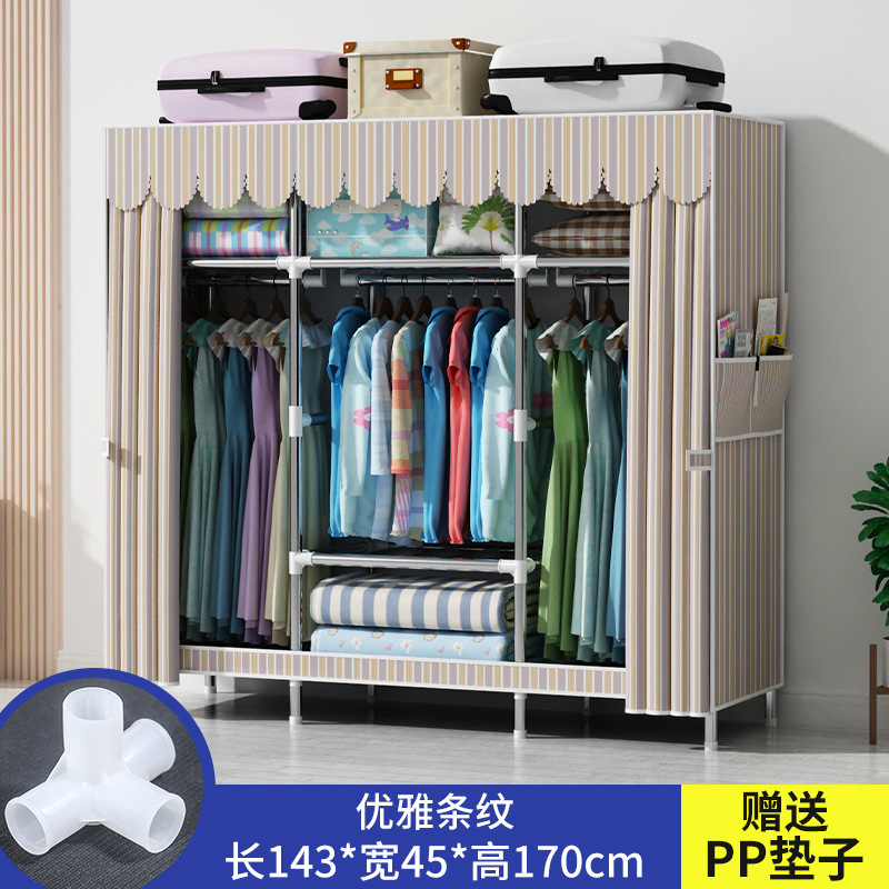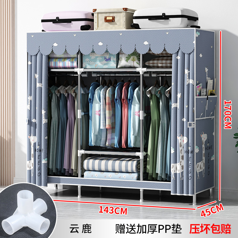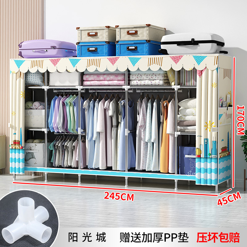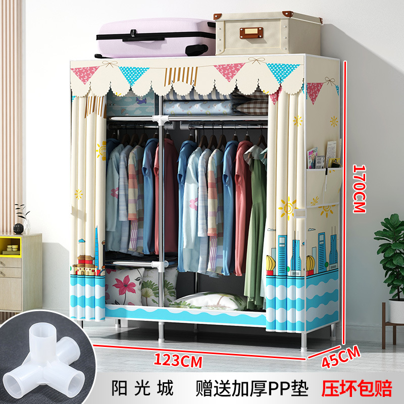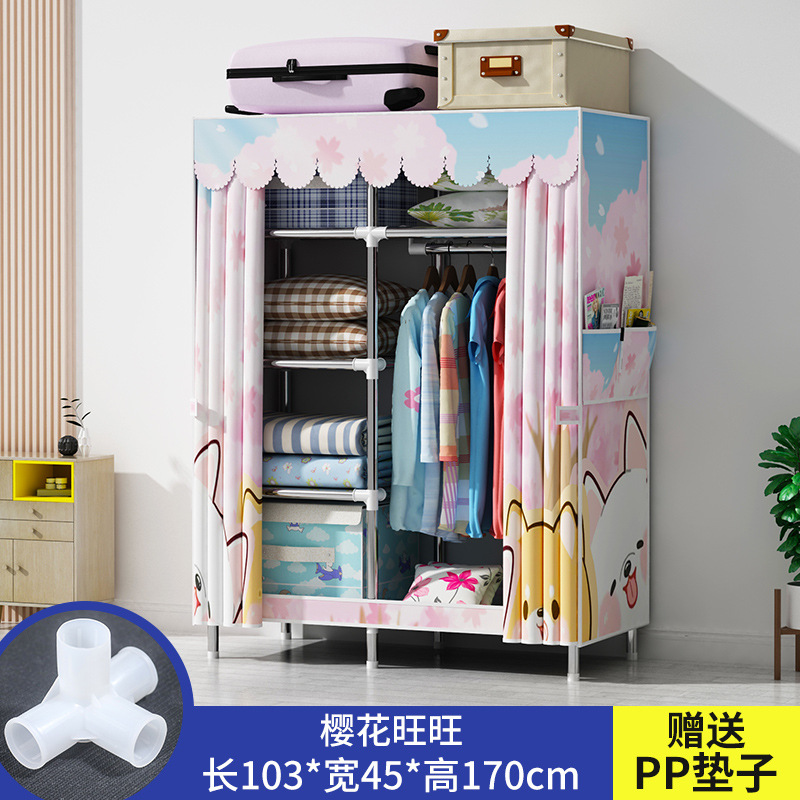 간단한 옷장 홈 굵은 강화 스틸 파이프 천 옷장 침실 조립 옷장 렌탈룸 옷 보관 랙스토어 가기
