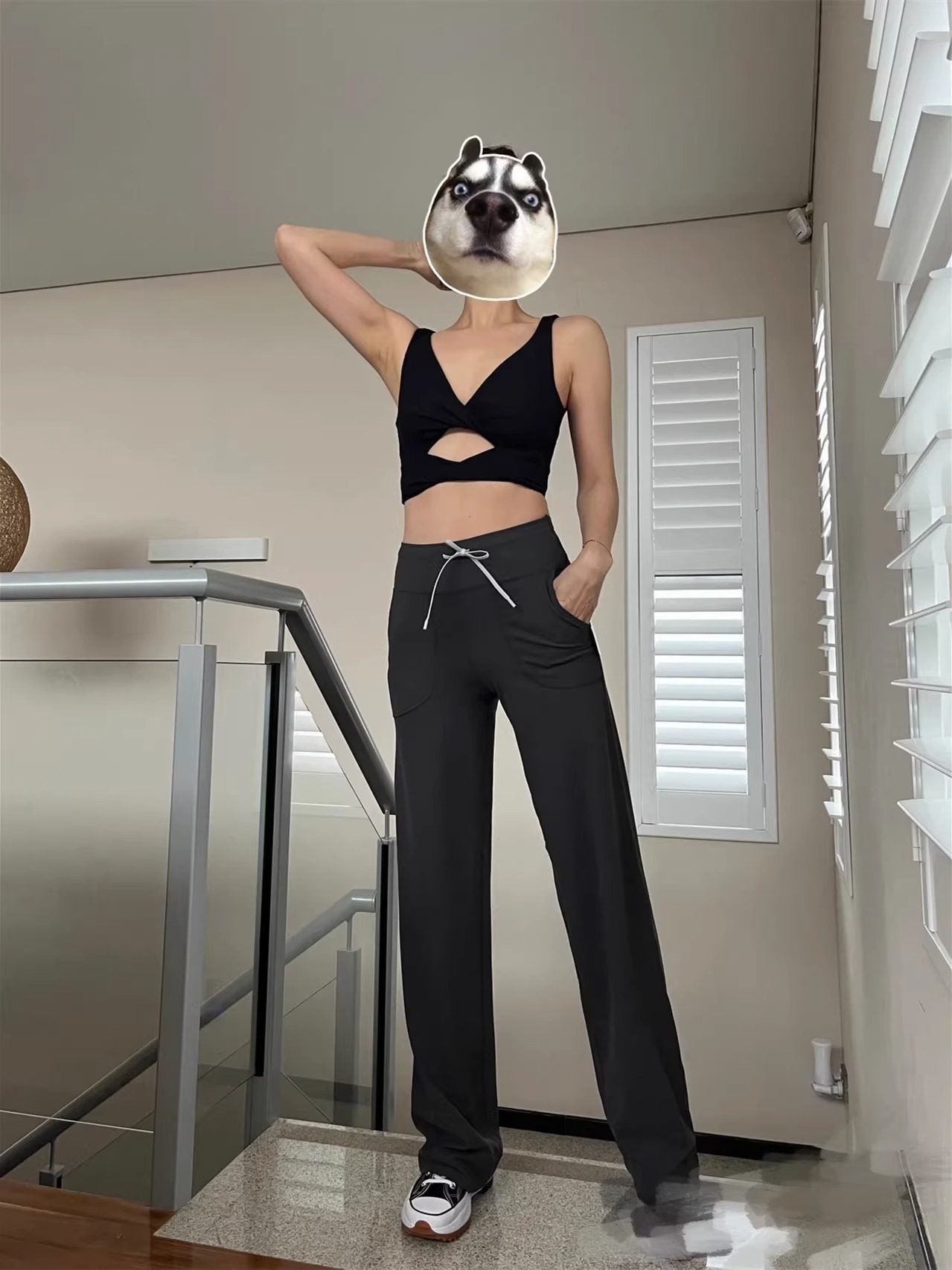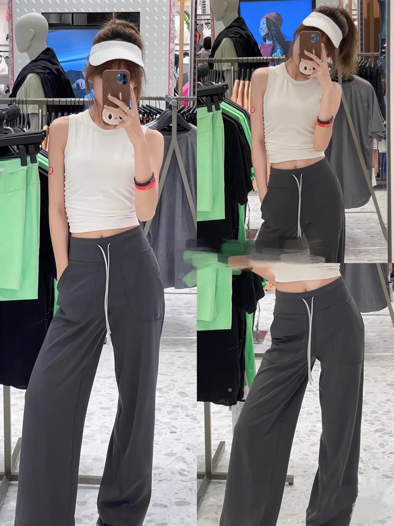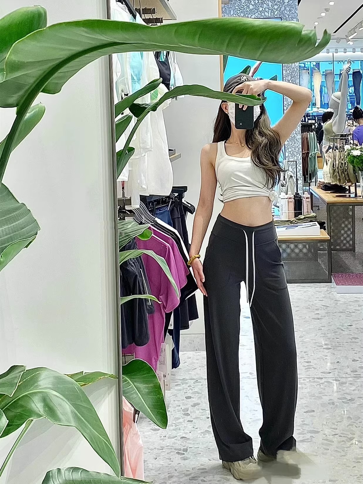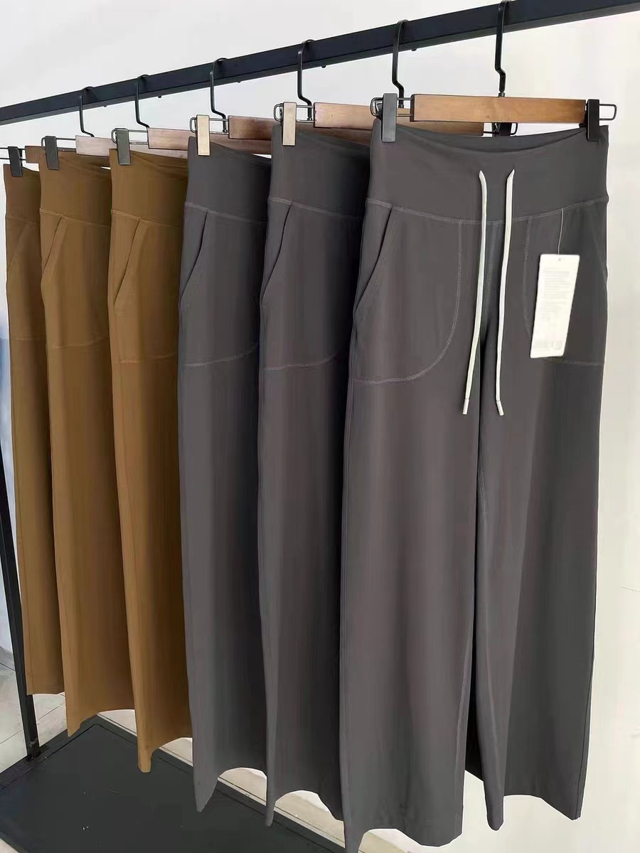 LULU ZGLY 항균 하이웨이스트 와이드 팬츠 누드감 탄력 요가 팬츠 피트니스 러닝 가을 스포츠 롱 팬츠 여성용스토어 가기