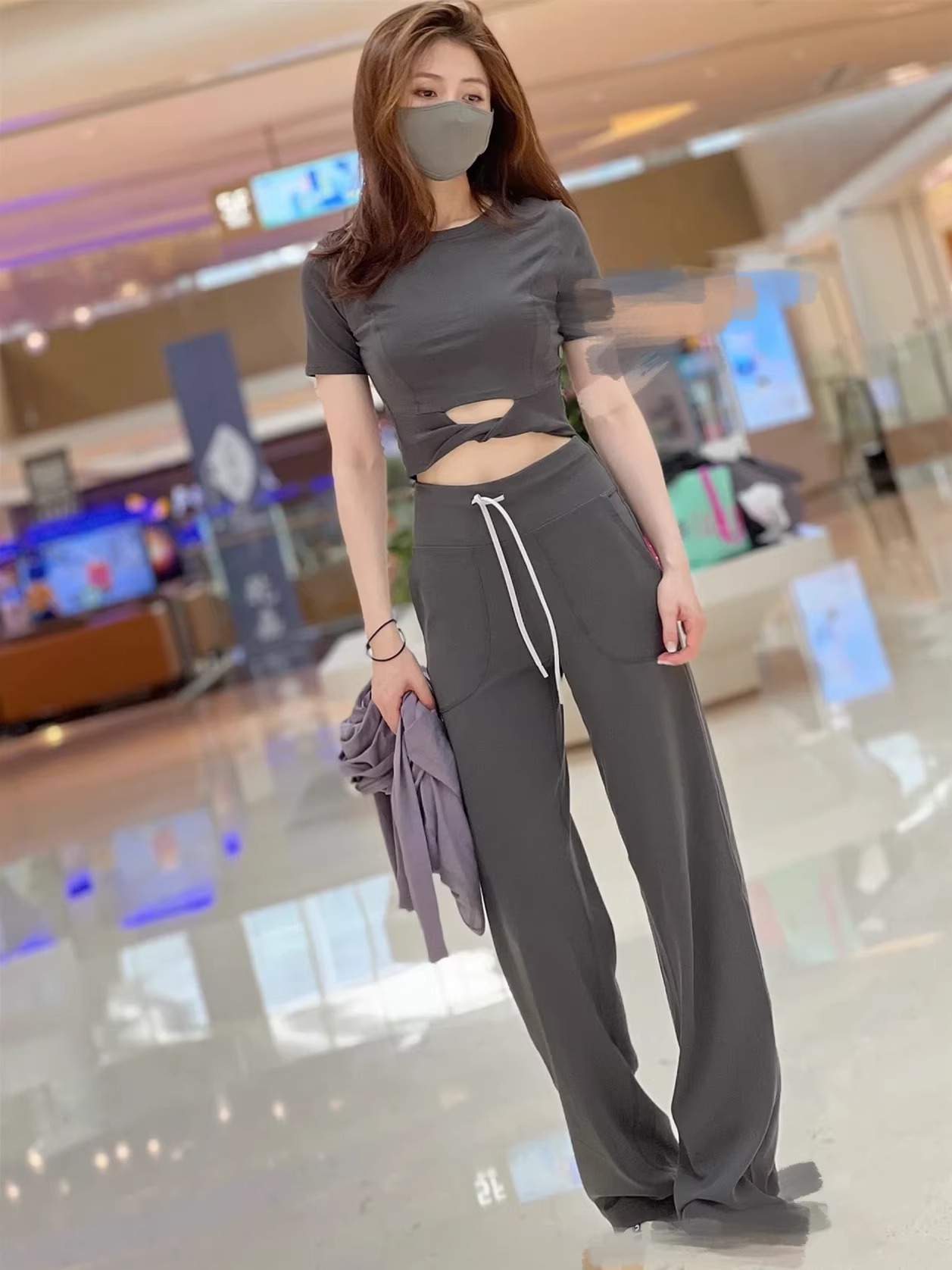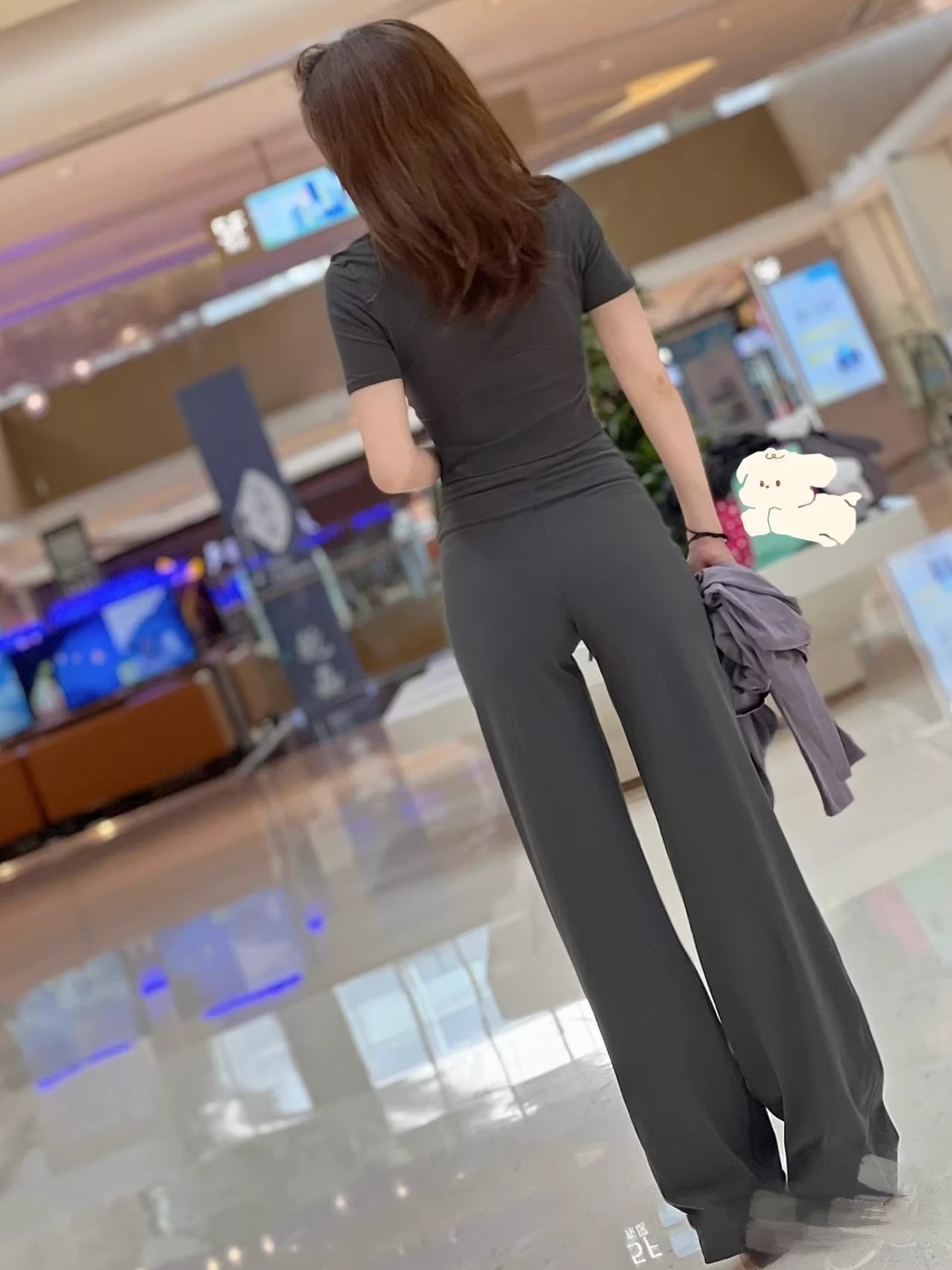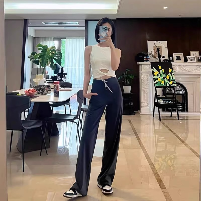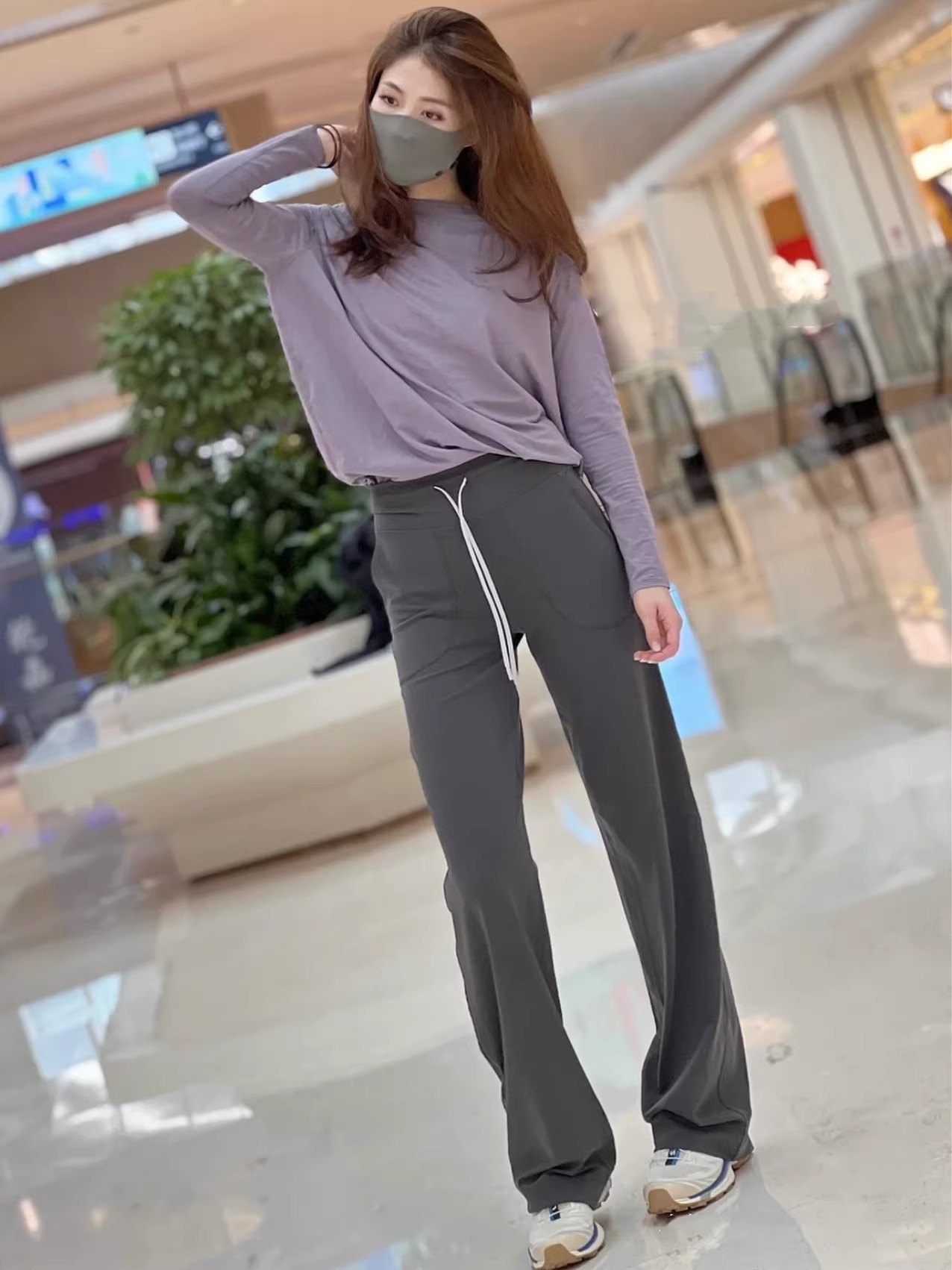 LULU ZGLY 항균 하이웨이스트 와이드 팬츠 누드감 탄력 요가 팬츠 피트니스 러닝 가을 스포츠 롱 팬츠 여성용스토어 가기
