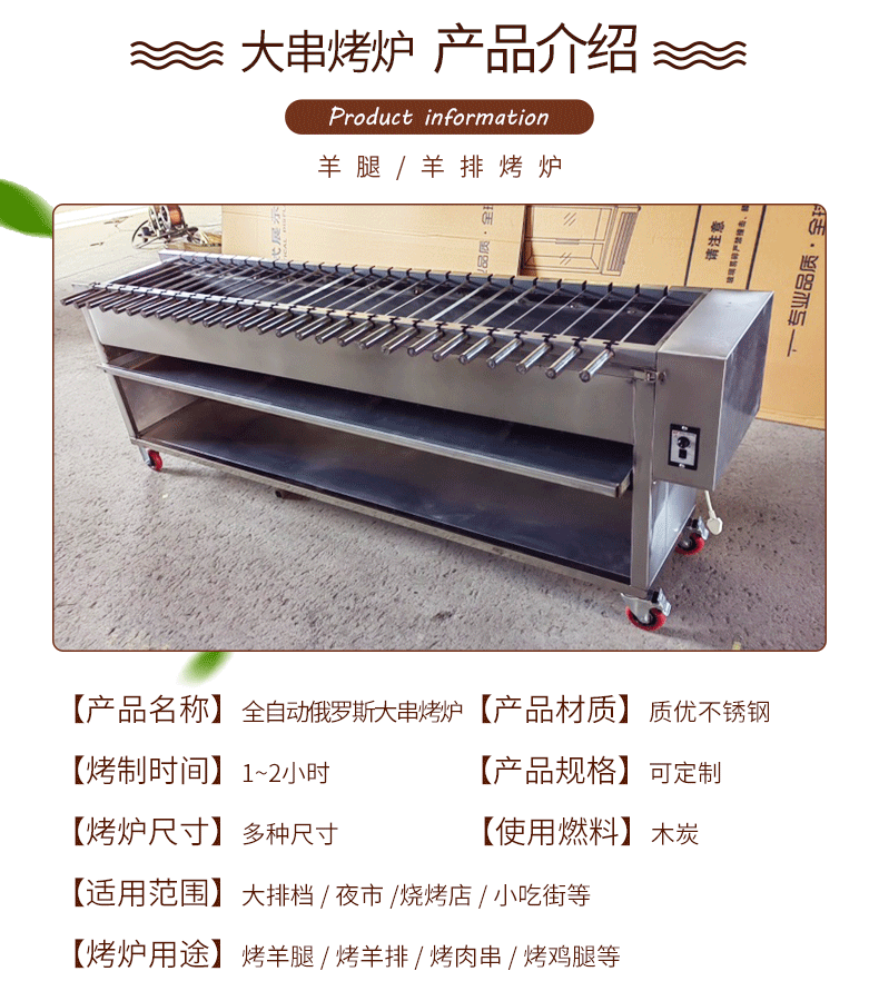 러시아식 대형 꼬치구이 그릴, 회전식 닭날개, 닭다리, 오리목구이, 숯불구이, 무연 친환경 꼬치구이스토어 가기
