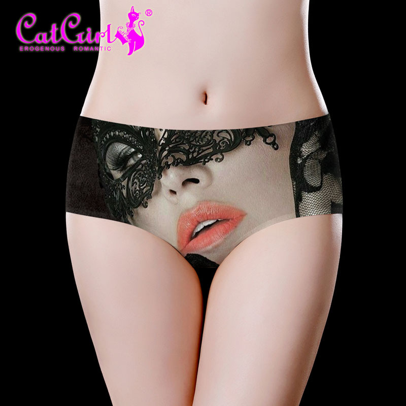 여자 속옷 여름 얇은 얼음 실크 추적 섹시한 속옷 여자 고양이 인쇄 팬티 귀여운 인테리어