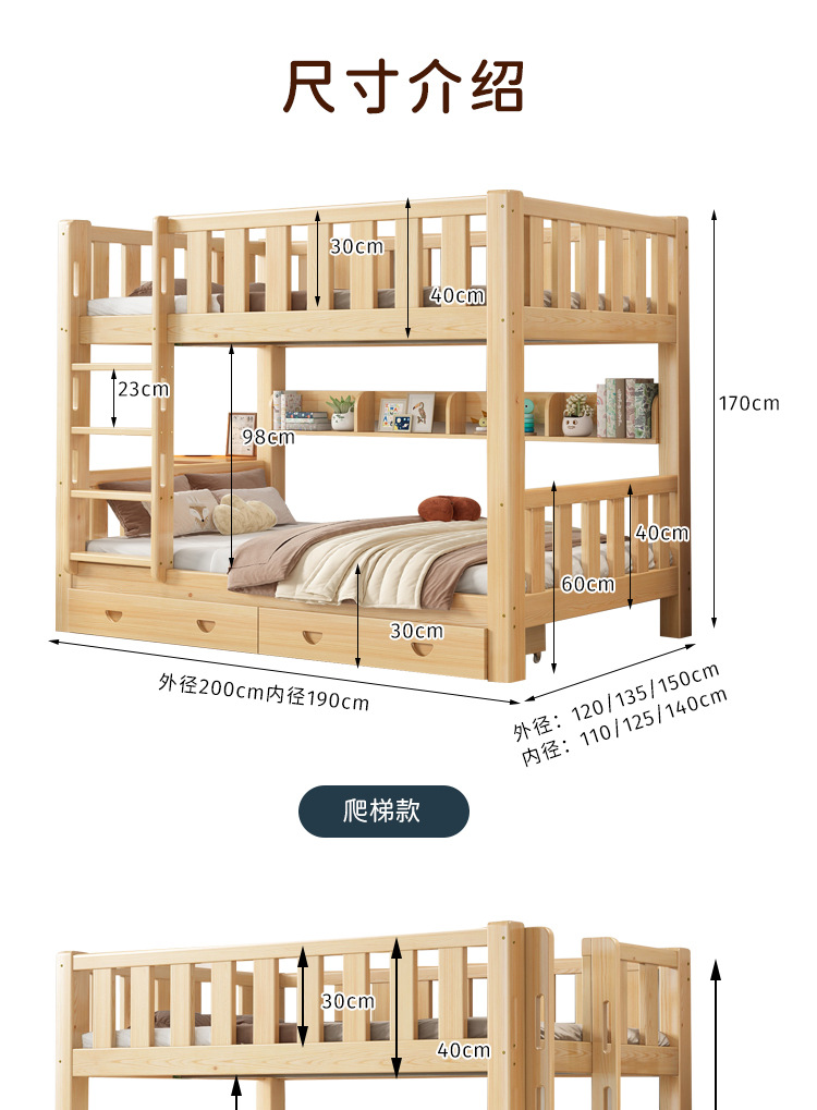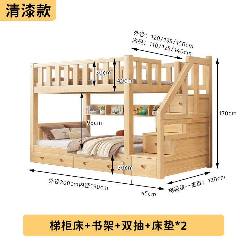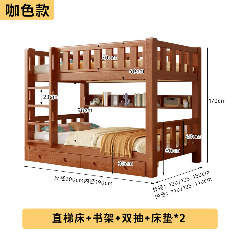 전체 단단한 나무 성인 하이 로우 침대 소형 아파트 가정용 어머니-어린이 침대 사다리 캐비닛 기숙사 이층 침대스토어 가기