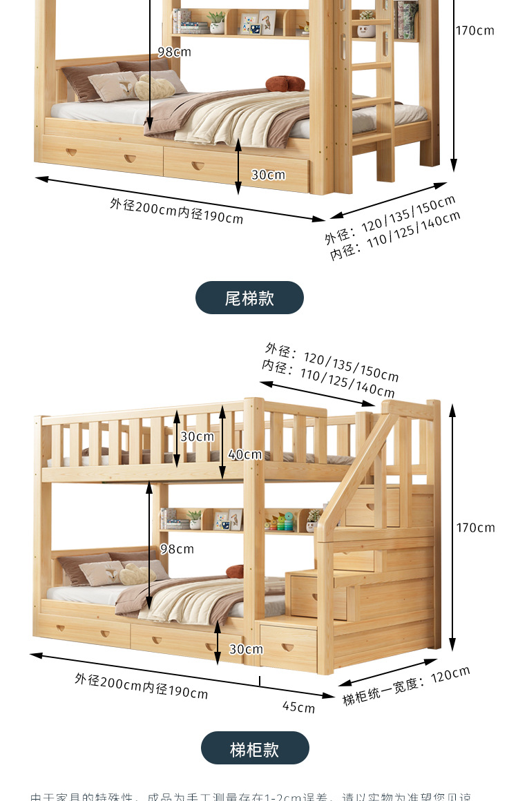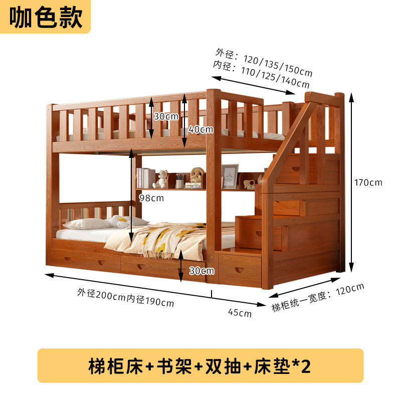 전체 단단한 나무 성인 하이 로우 침대 소형 아파트 가정용 어머니-어린이 침대 사다리 캐비닛 기숙사 이층 침대