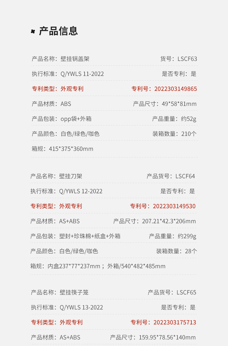 [Wo Dou] 주방 용품 벽걸이 랙 벽 칼 홀더 플라스틱 보관함 젓가락 케이지 냄비 커버 랙 세트