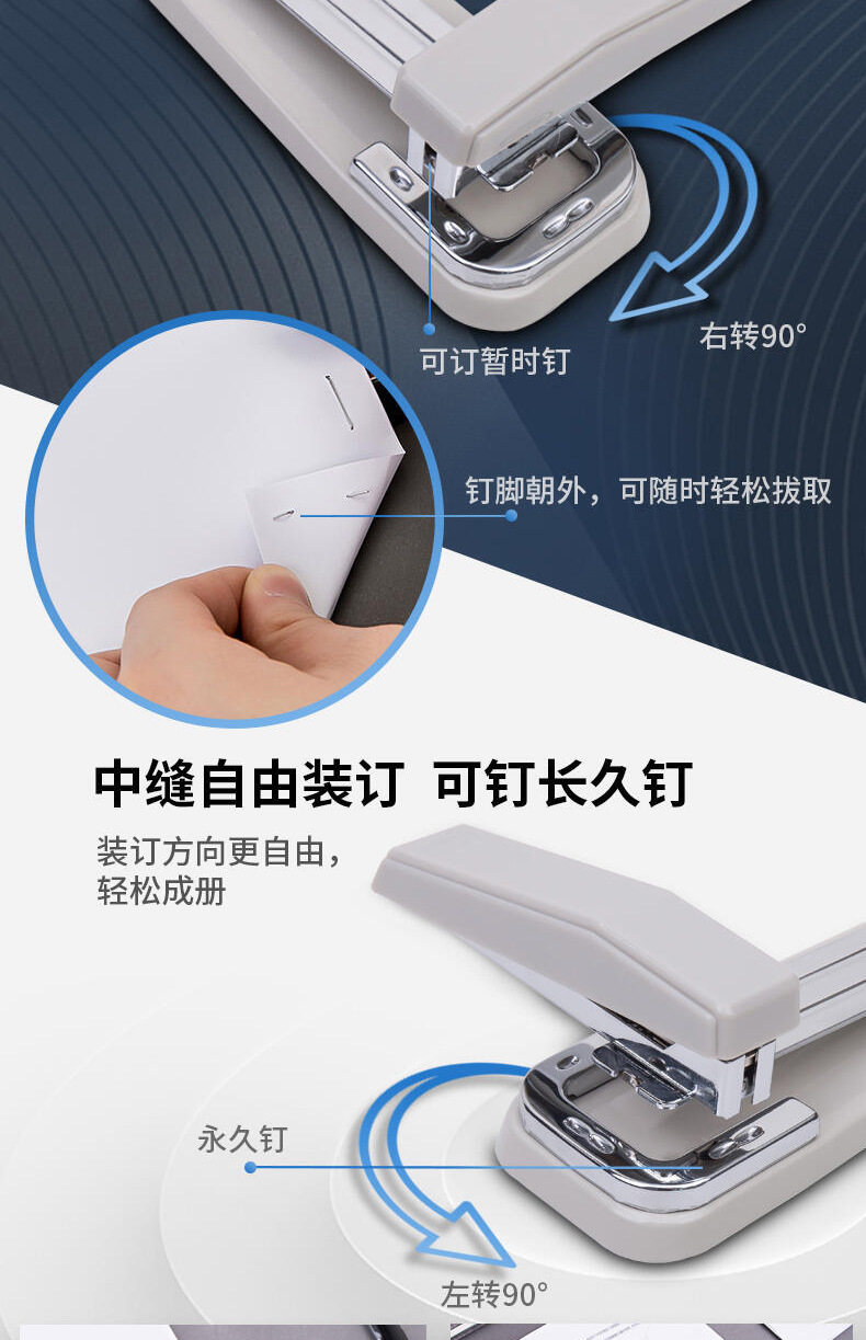 델리 회전 스테이플러 도매 학생 스테이플러 대형 두꺼운 스테이플러 가정용 다기능 노동 절약