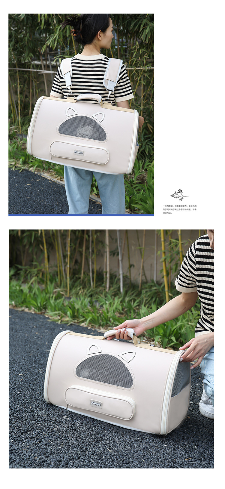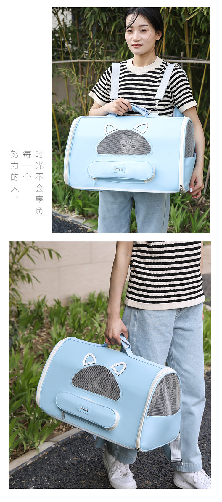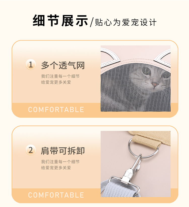 공장 직공급 고양이 가방 휴대용 애완동물 가방 어깨 휴대용 사계절 만능 통기성 고양이 배낭