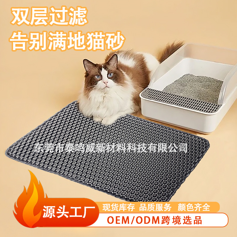 도매용 이중층 대형 세척 가능 미끄럼 방지 고양이 긁는 방지 매트 EVA 고양이 모래 매트 벌집 모양 구멍이 있는 접이식 모래 흩뿌림 방지 매트스토어 가기