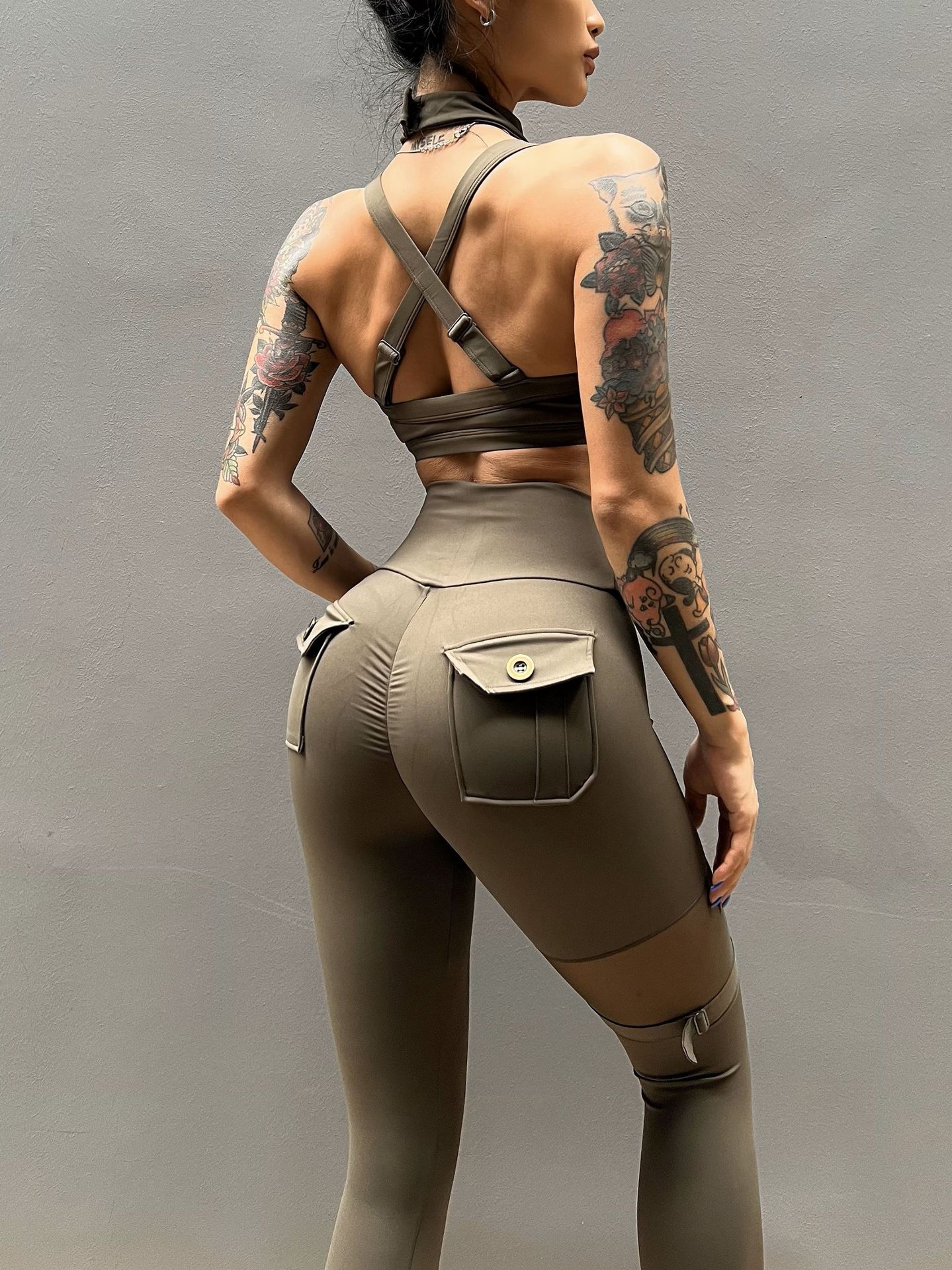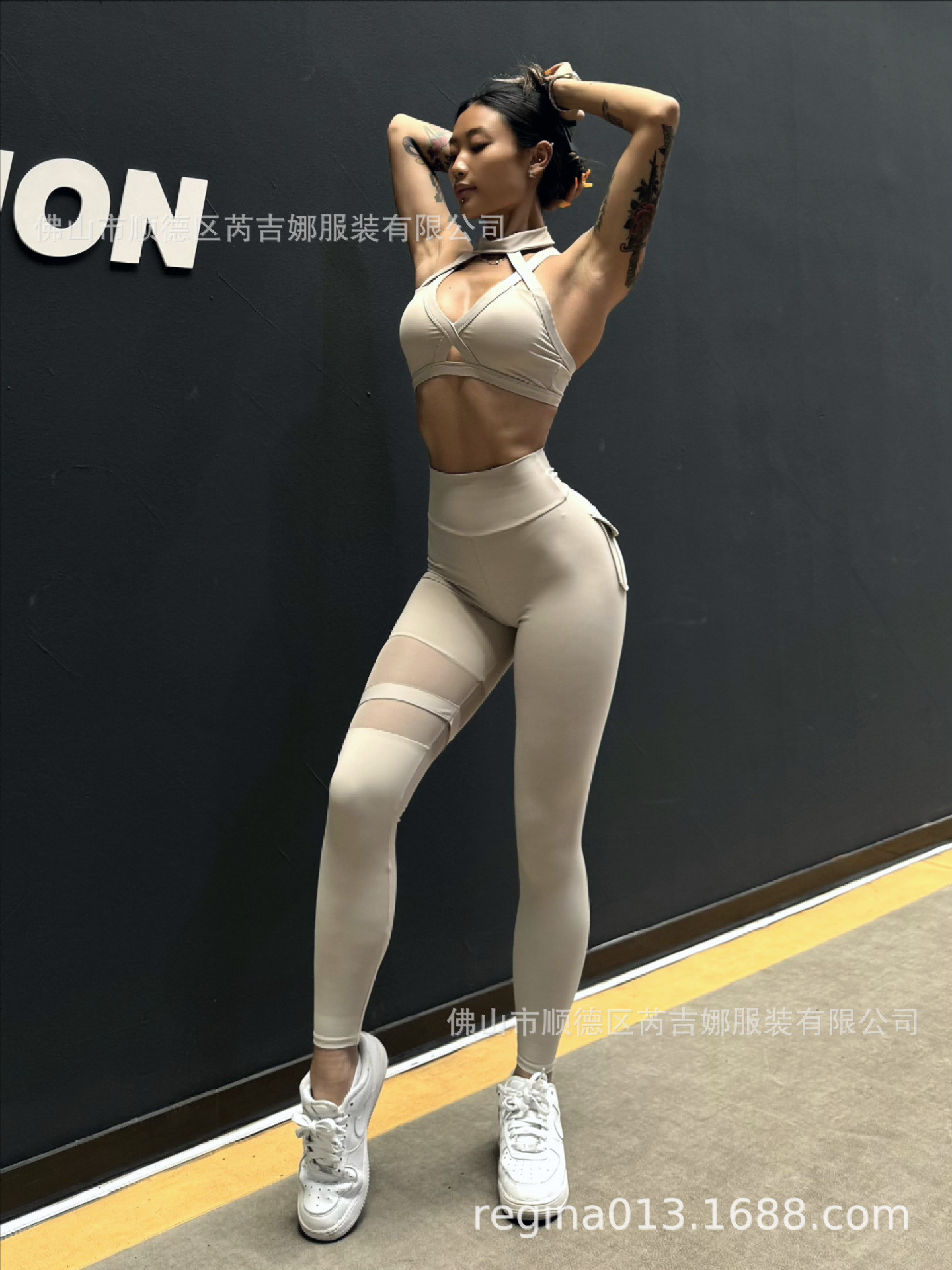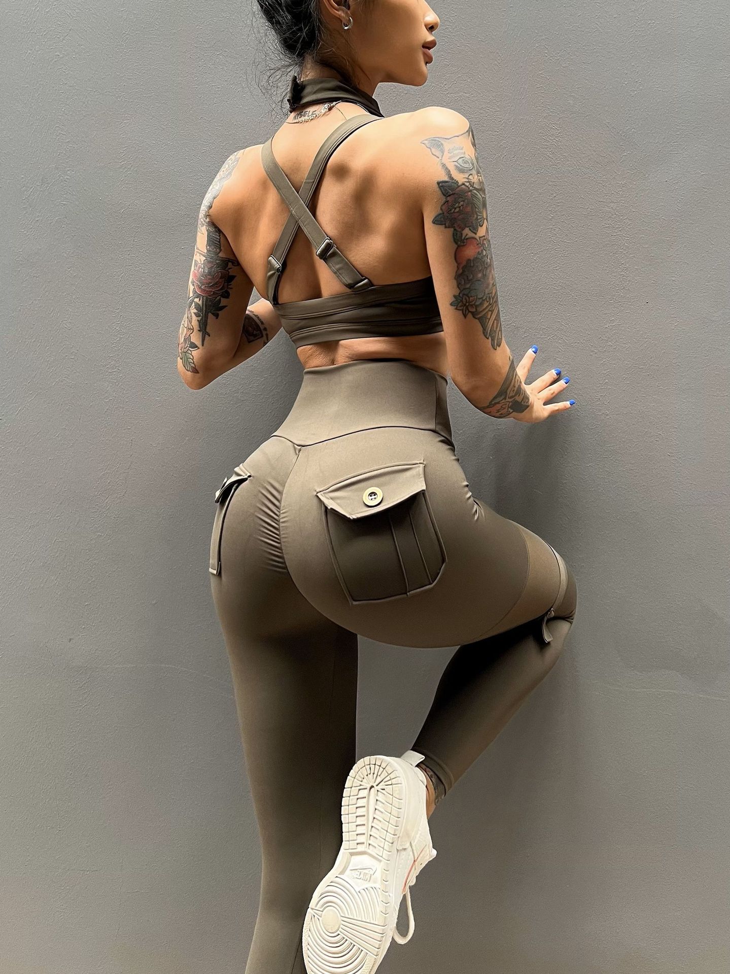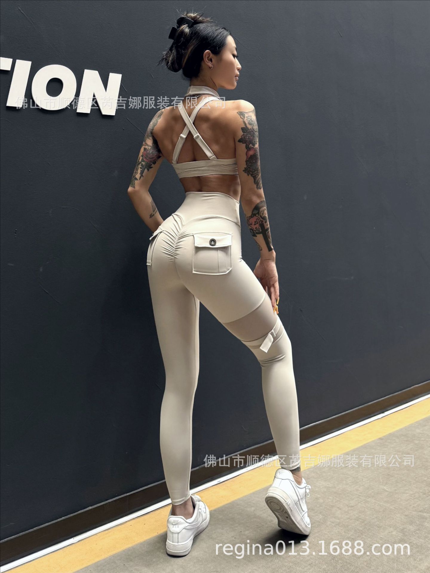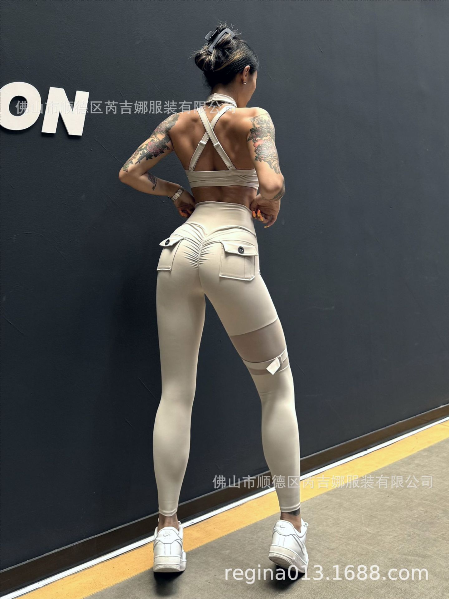 세트 유럽과 미국 크로스 보더 스포츠 휘트니스 요가 브래지어 속옷 여자의 섹시 스티칭 하이 웨이스트 꽉 바지 알몸 원활한스토어 가기
