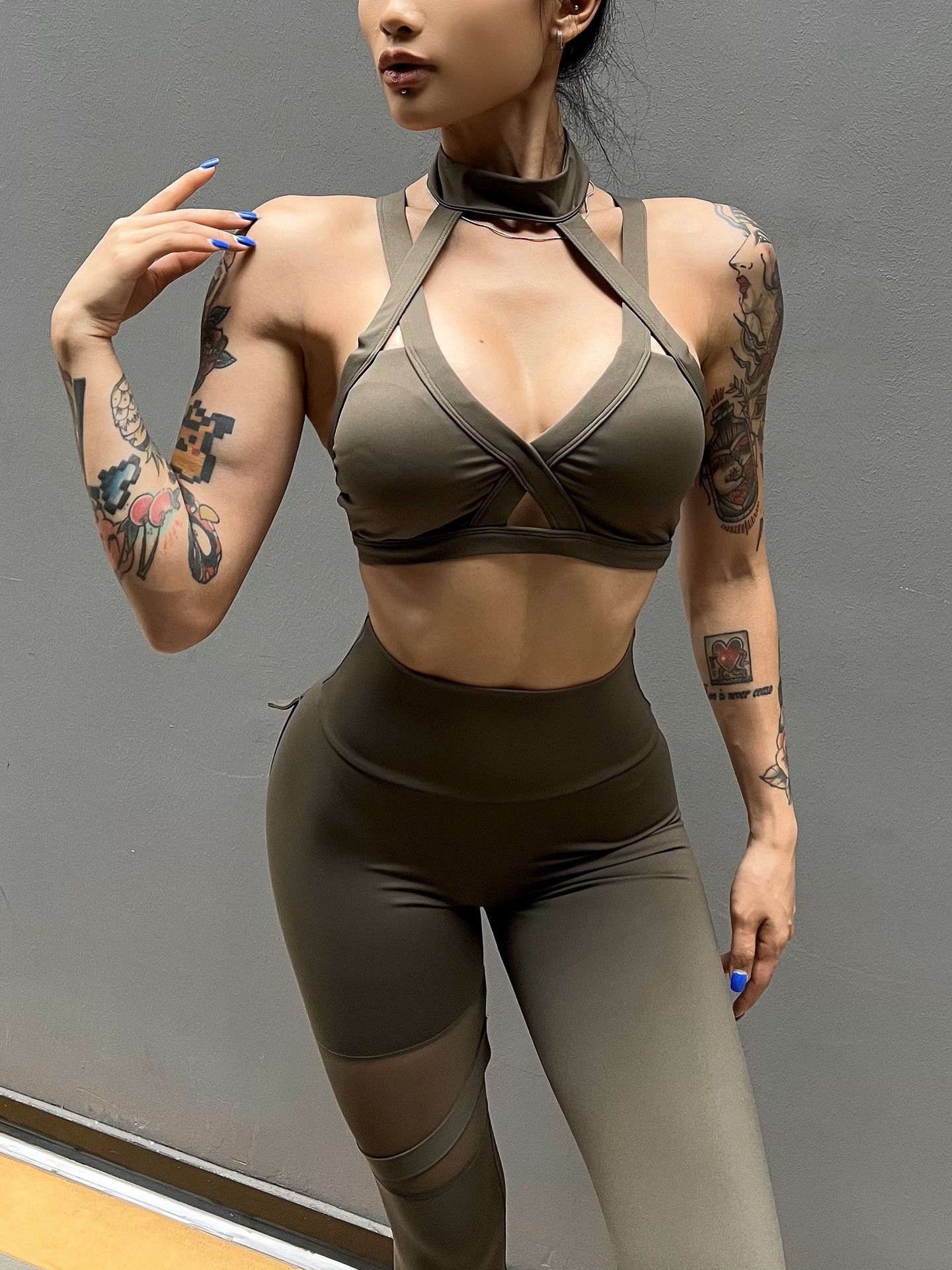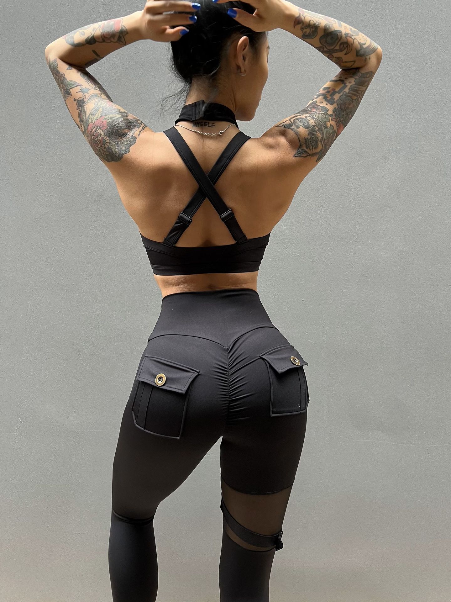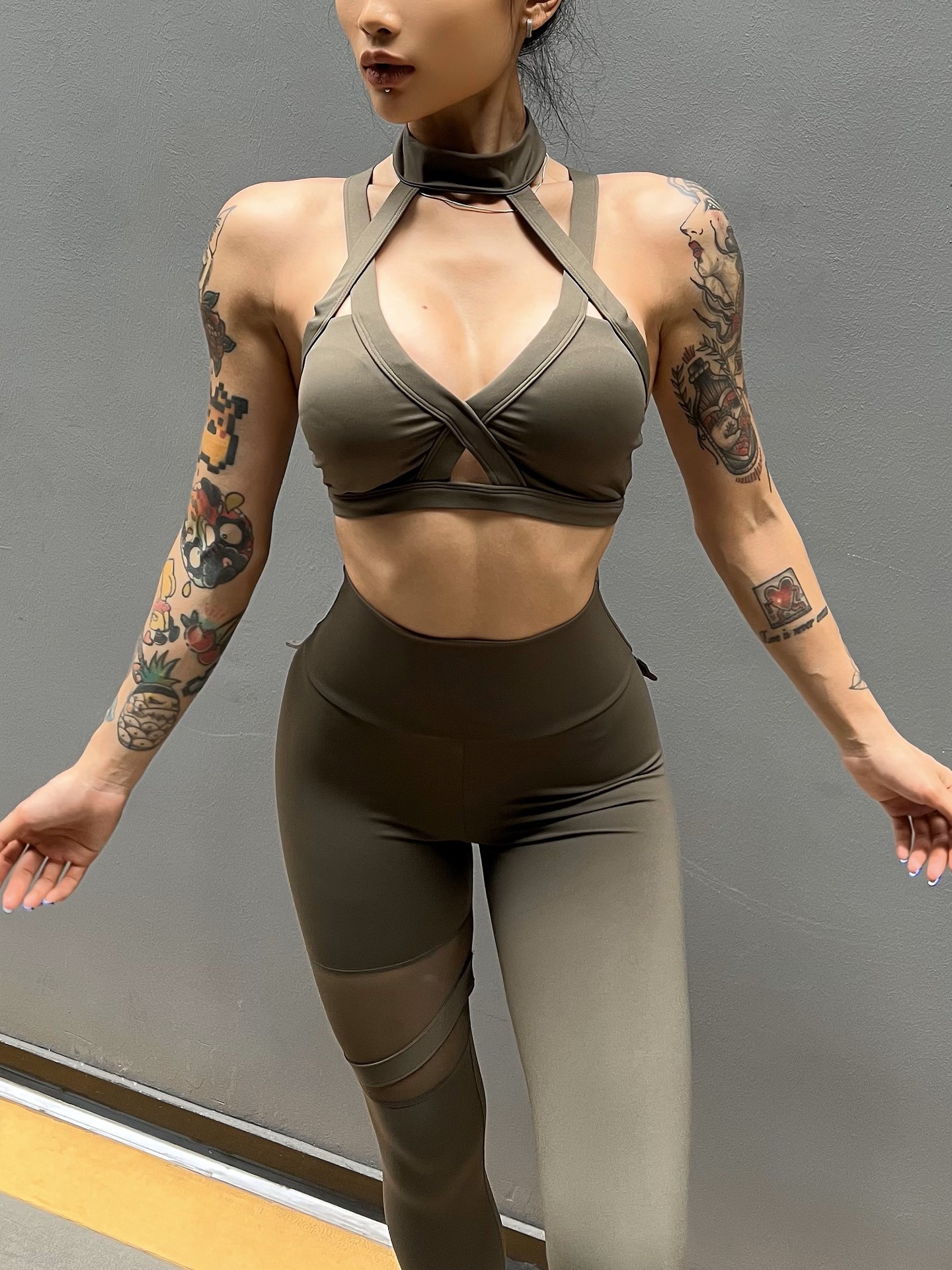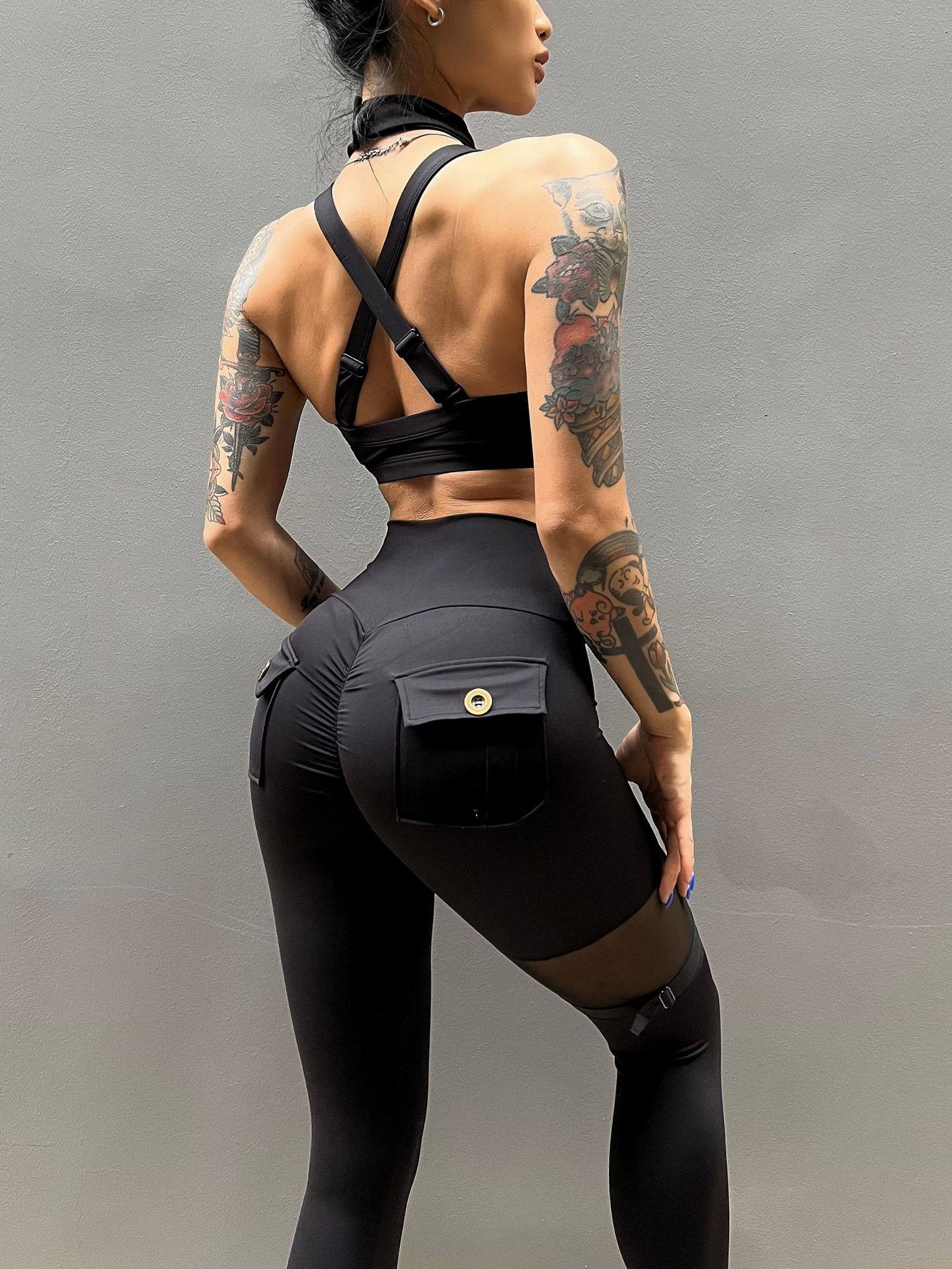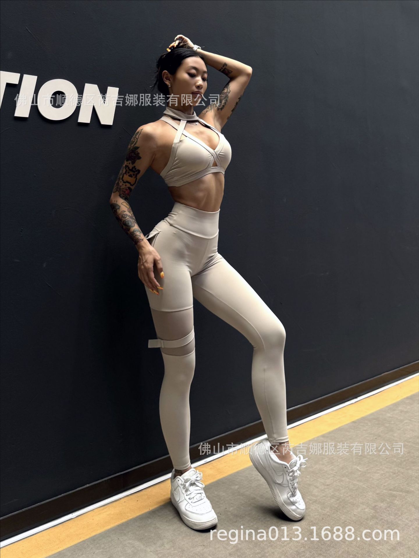 세트 유럽과 미국 크로스 보더 스포츠 휘트니스 요가 브래지어 속옷 여자의 섹시 스티칭 하이 웨이스트 꽉 바지 알몸 원활한스토어 가기