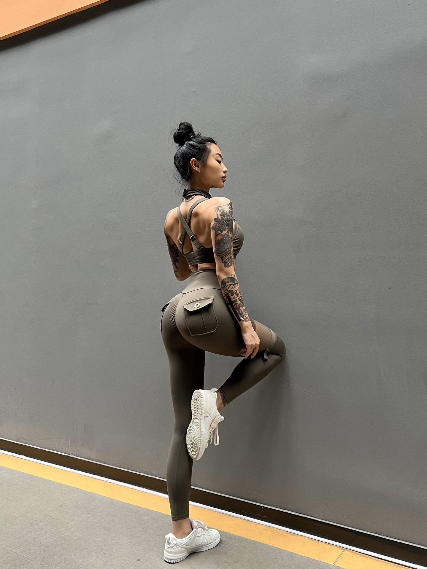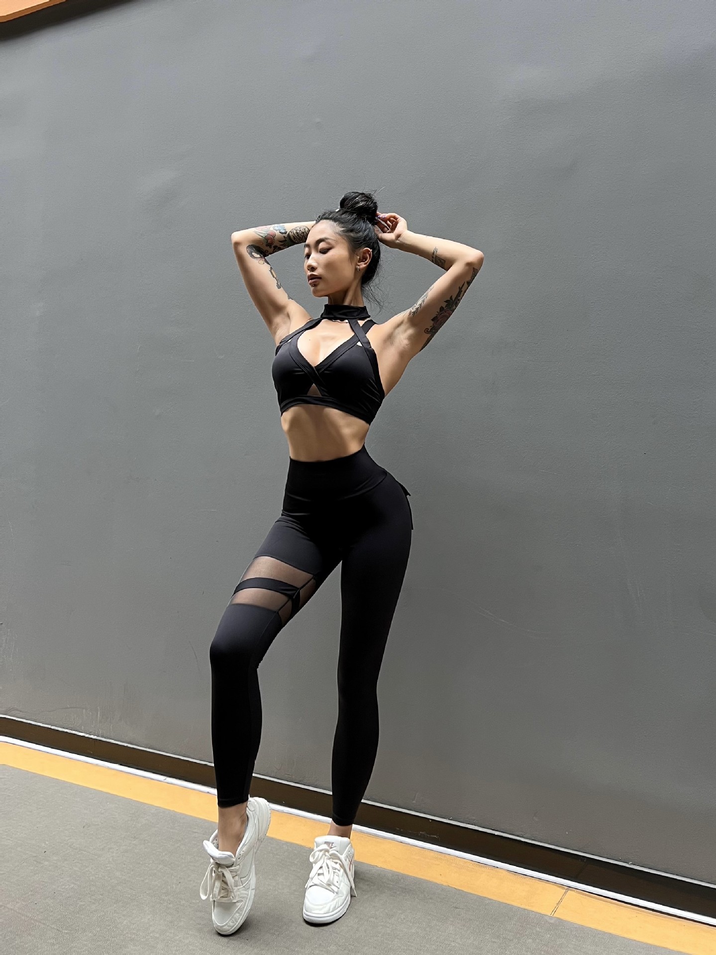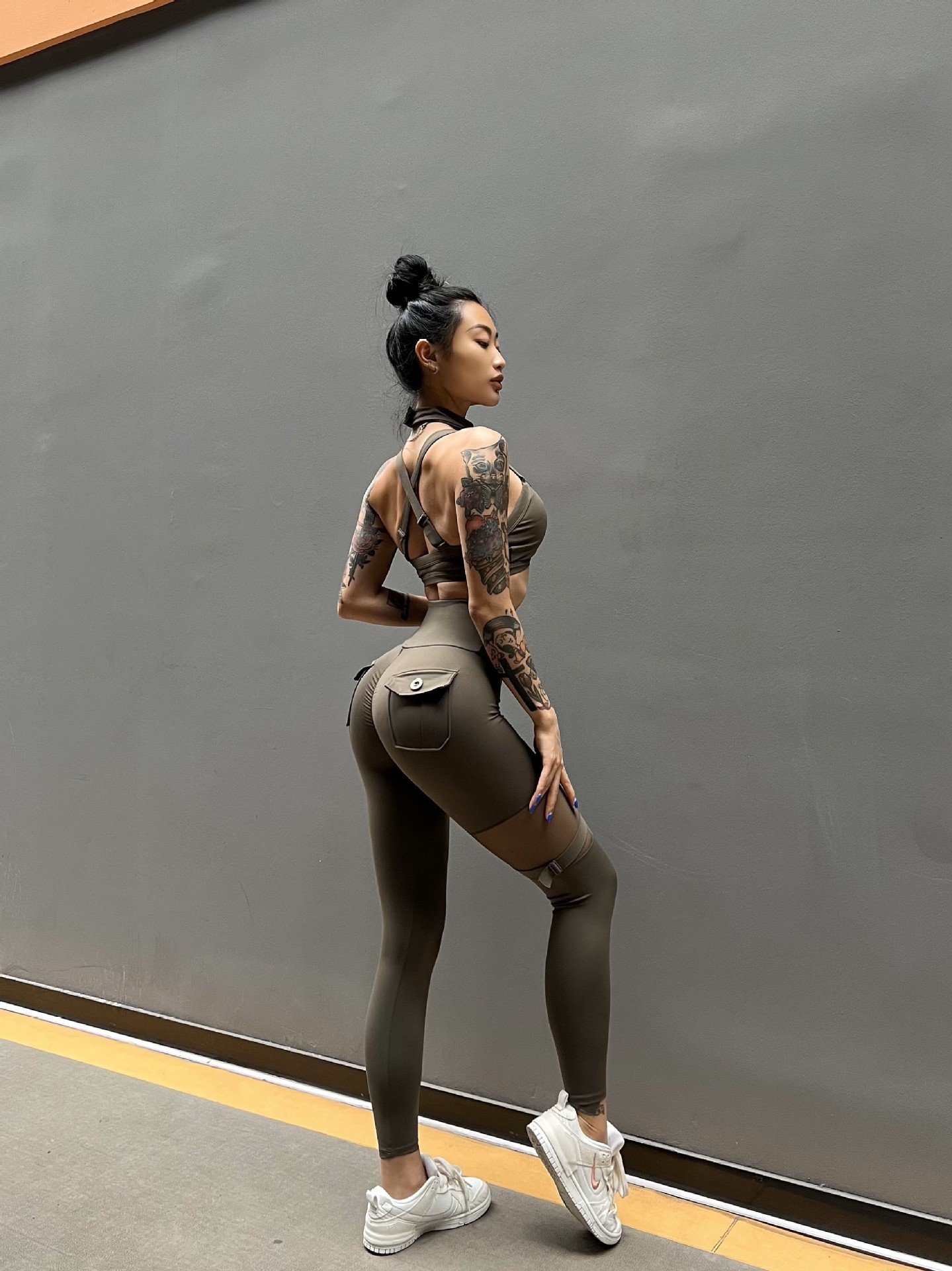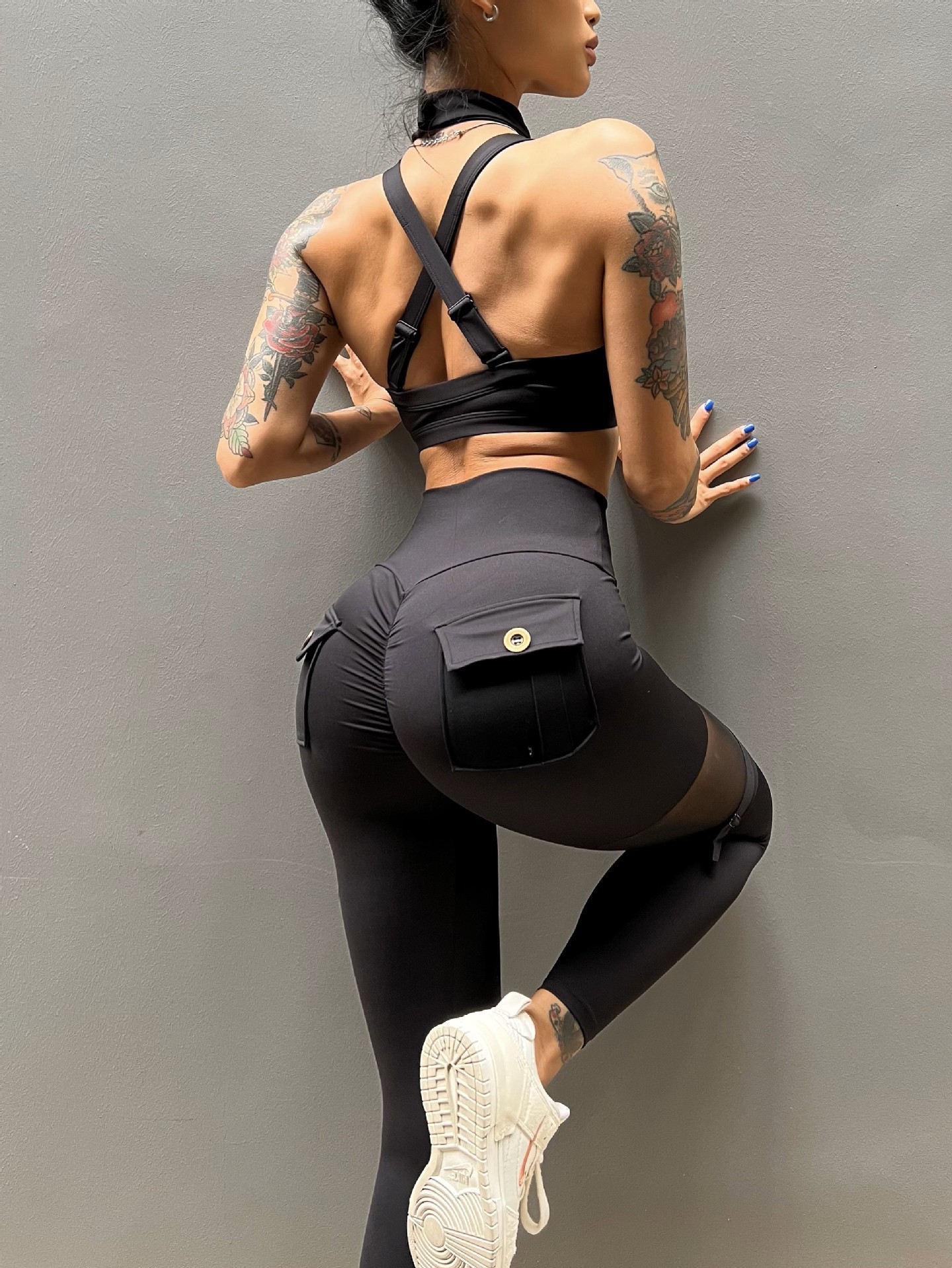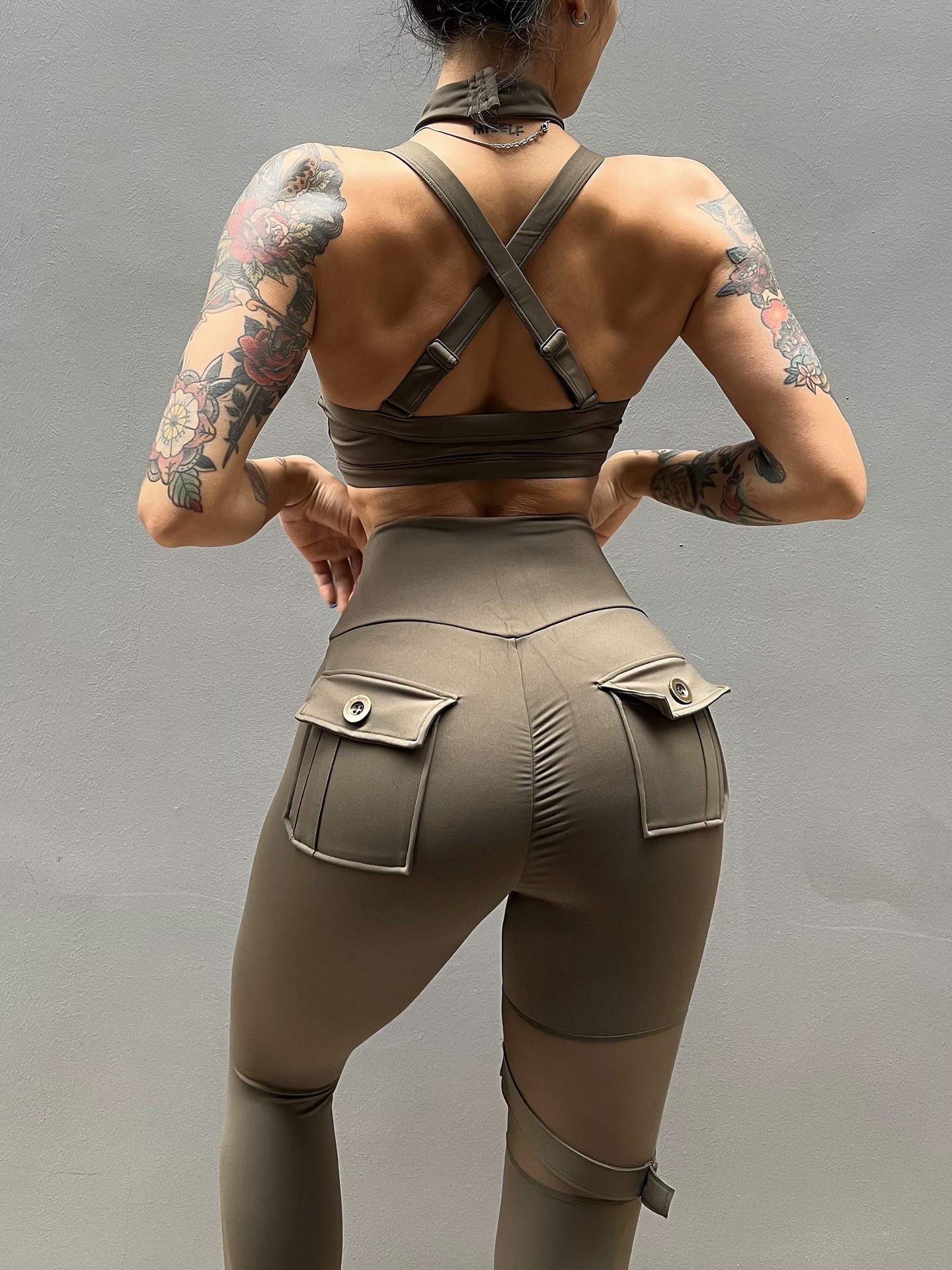 세트 유럽과 미국 크로스 보더 스포츠 휘트니스 요가 브래지어 속옷 여자의 섹시 스티칭 하이 웨이스트 꽉 바지 알몸 원활한스토어 가기