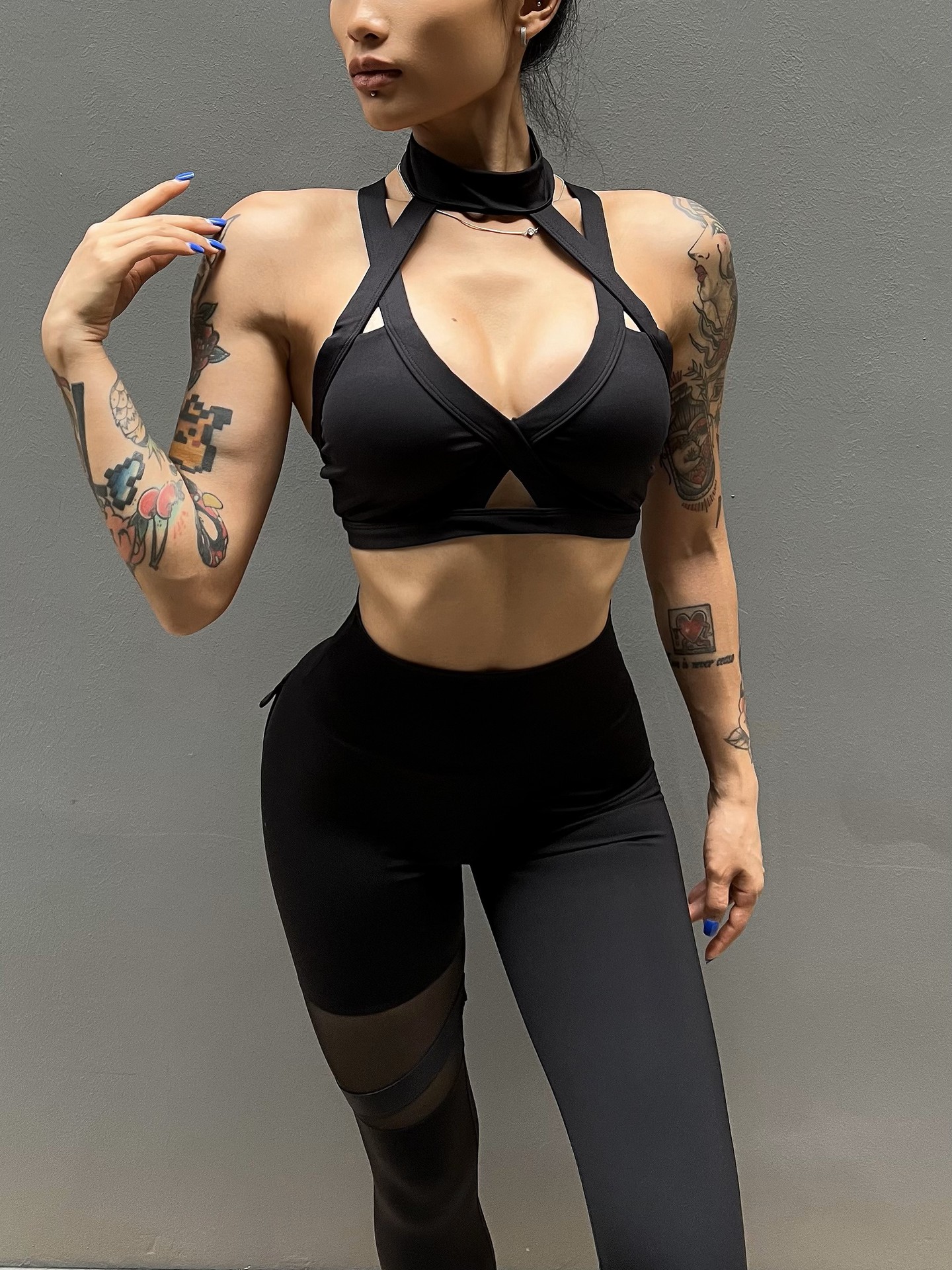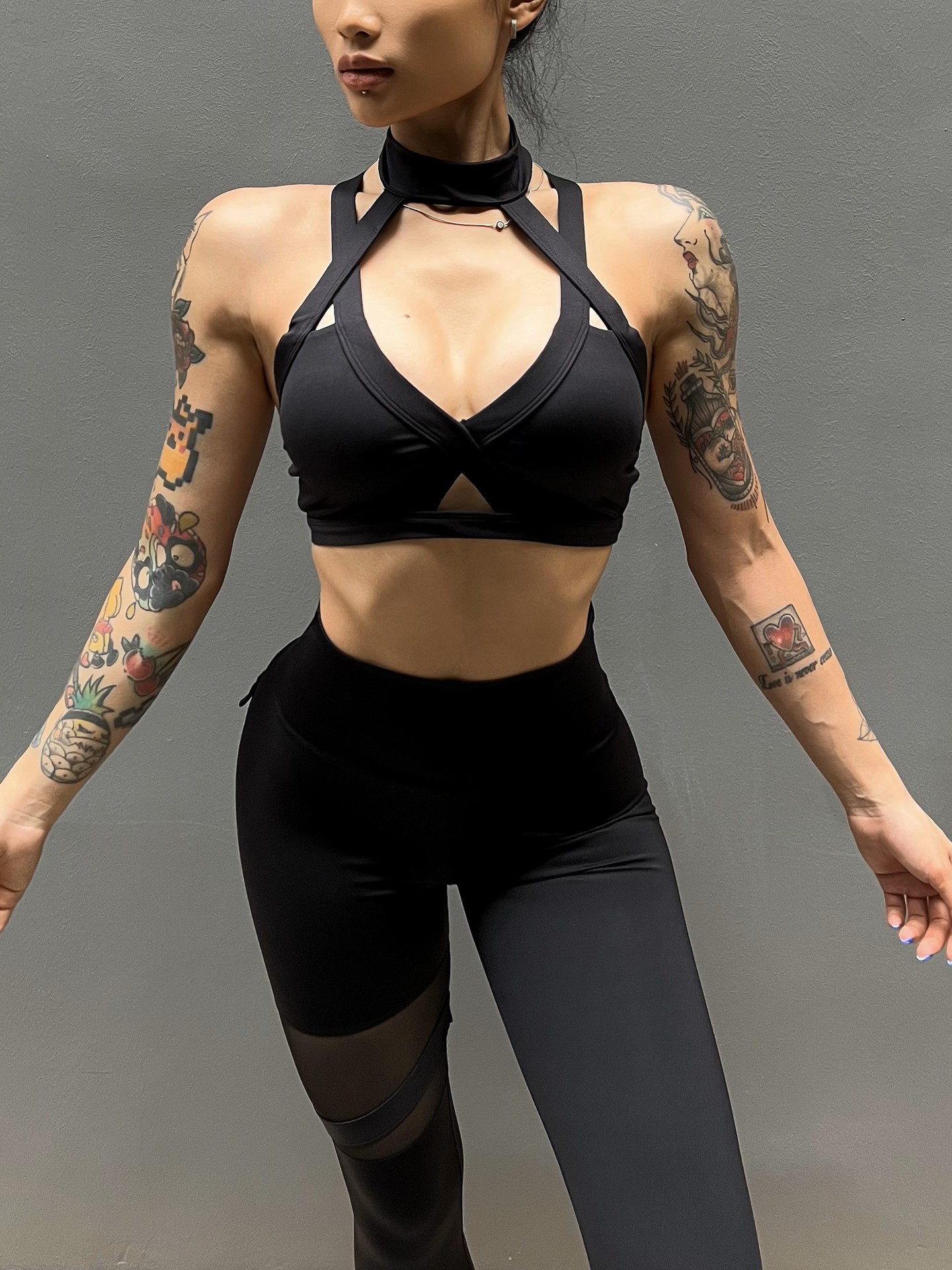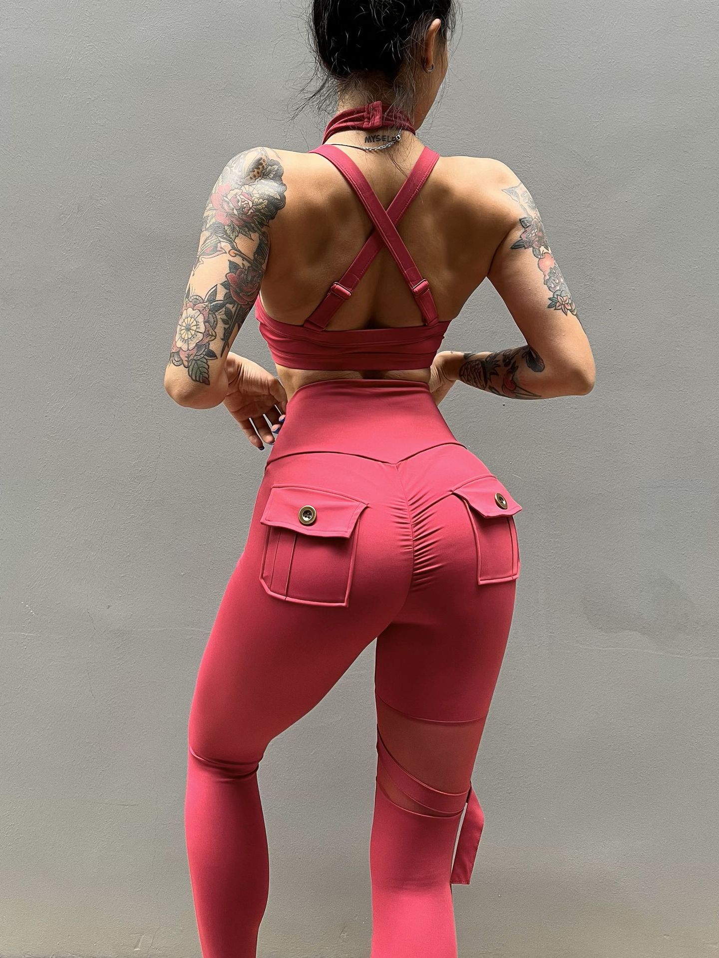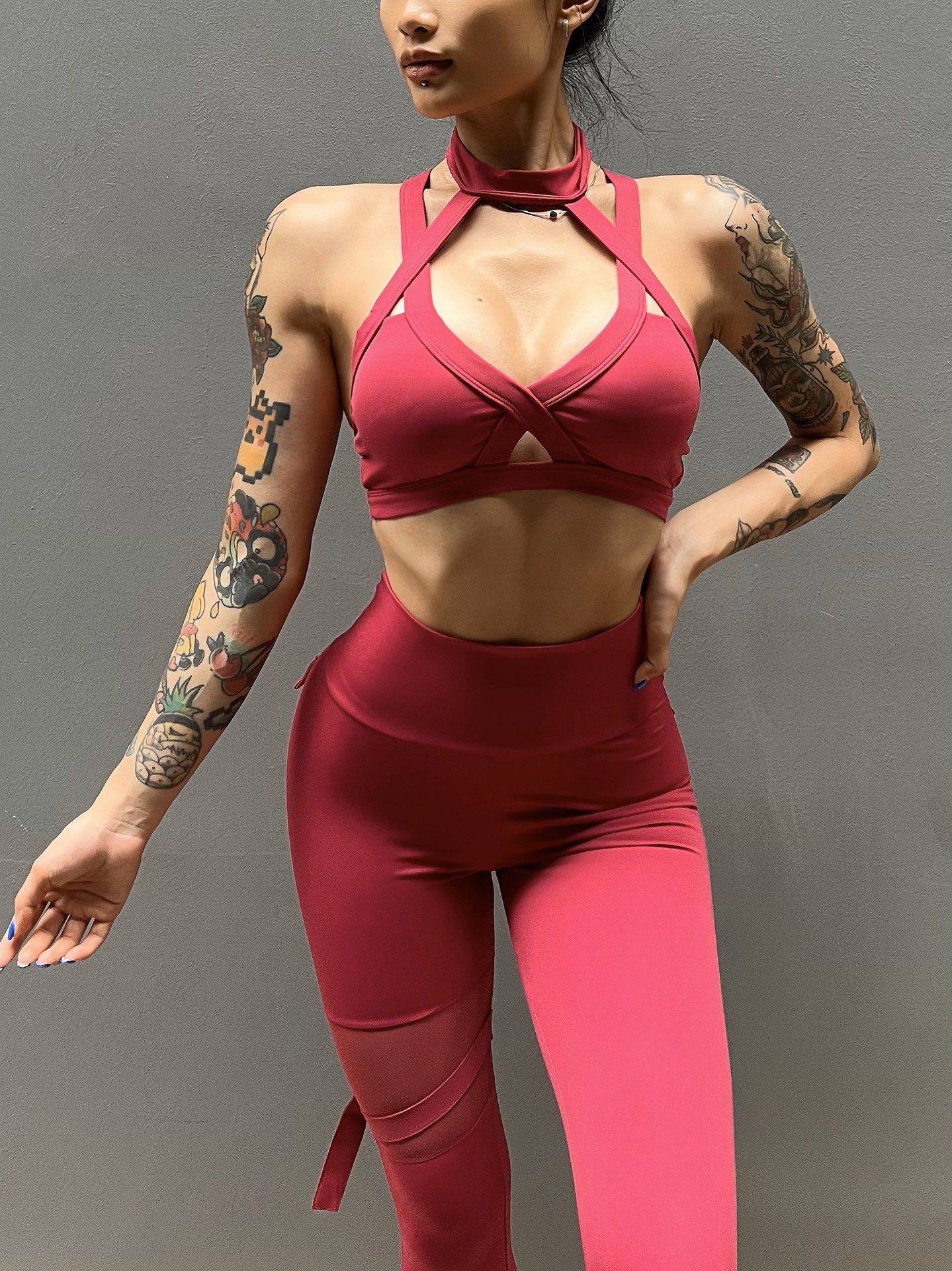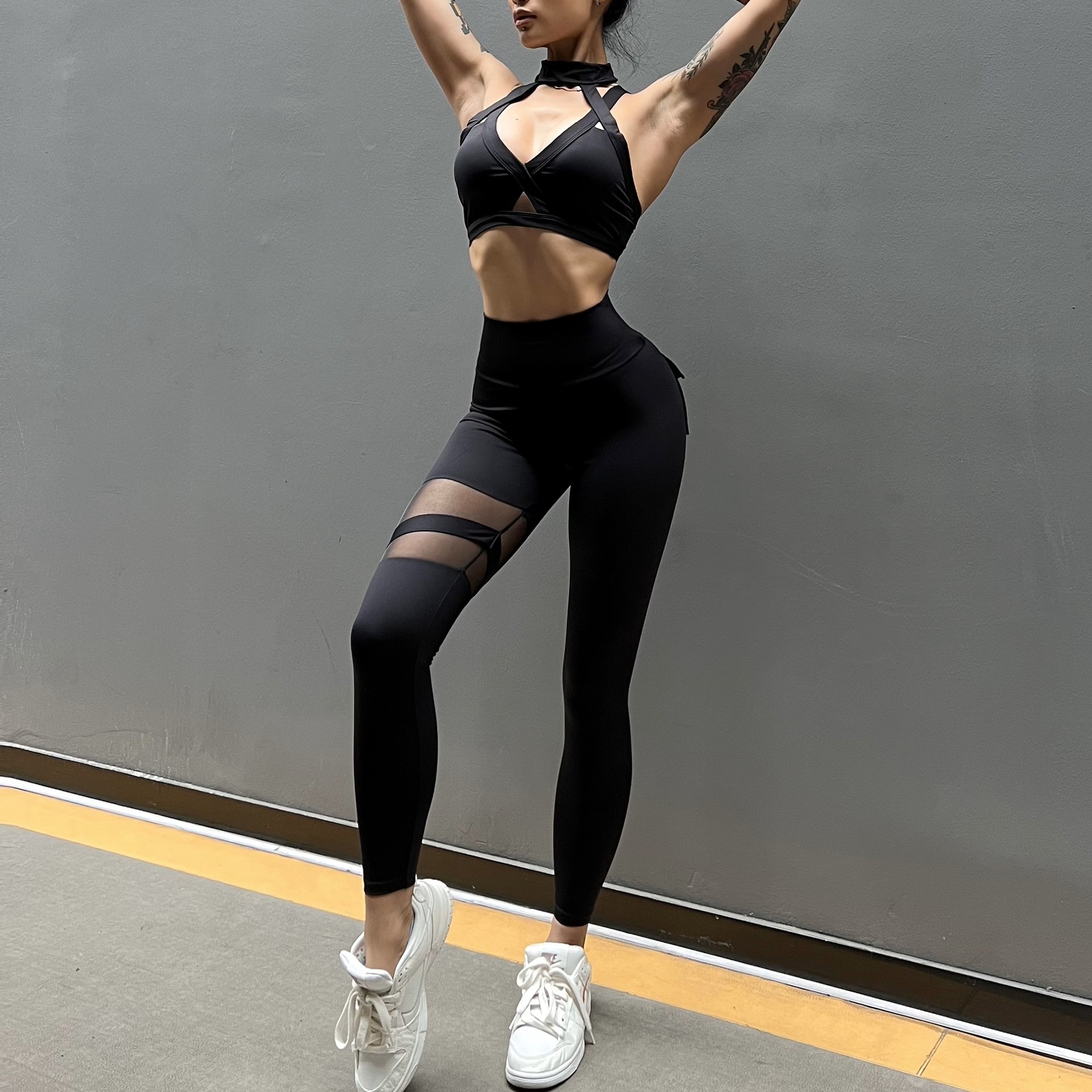 세트 유럽과 미국 크로스 보더 스포츠 휘트니스 요가 브래지어 속옷 여자의 섹시 스티칭 하이 웨이스트 꽉 바지 알몸 원활한