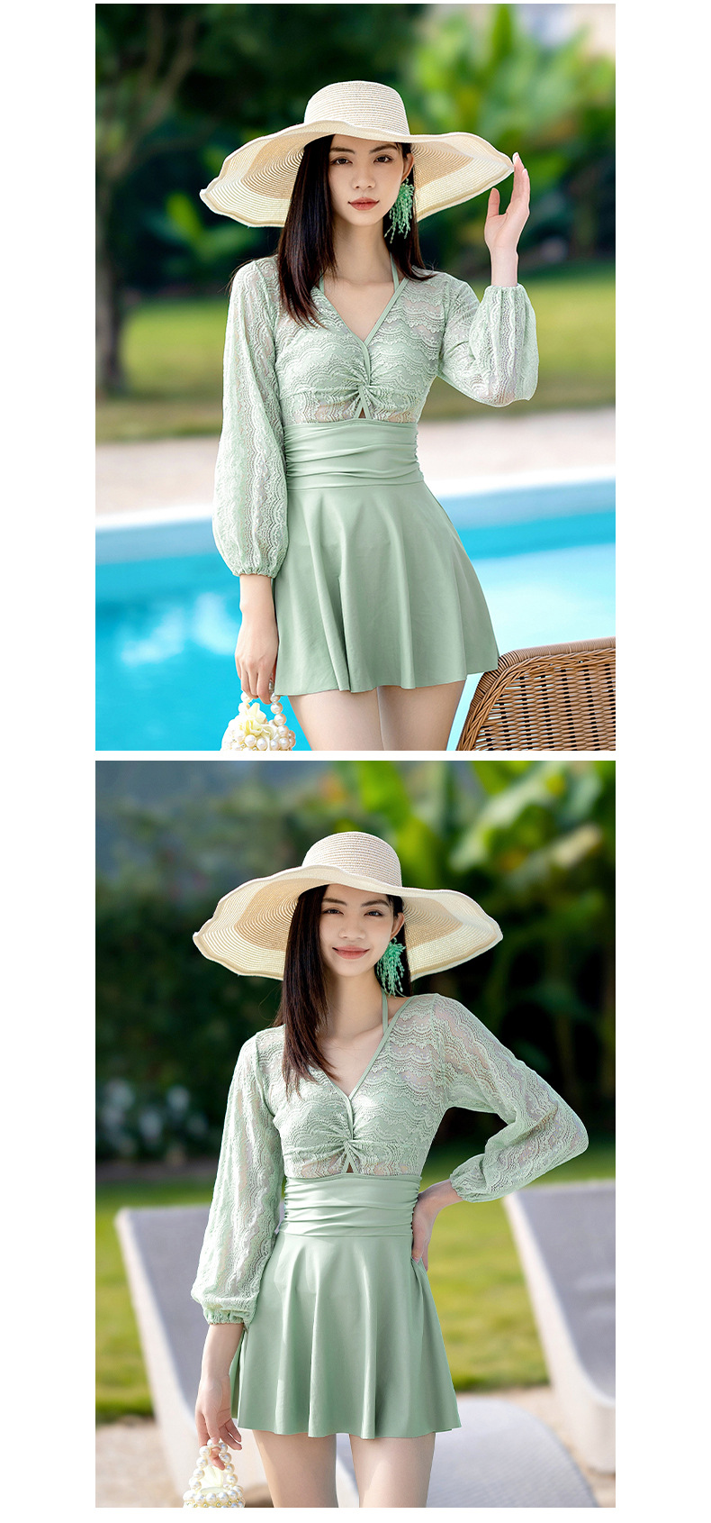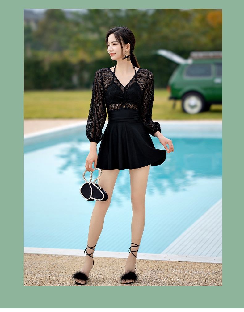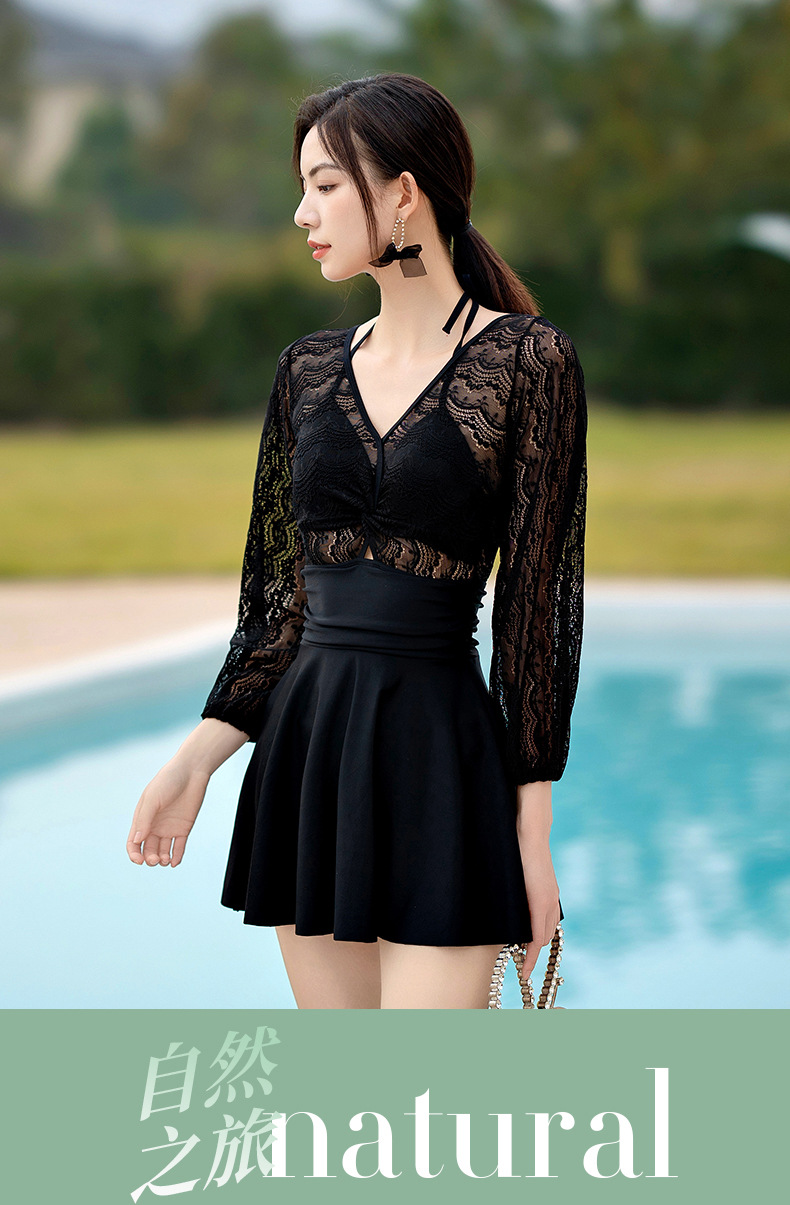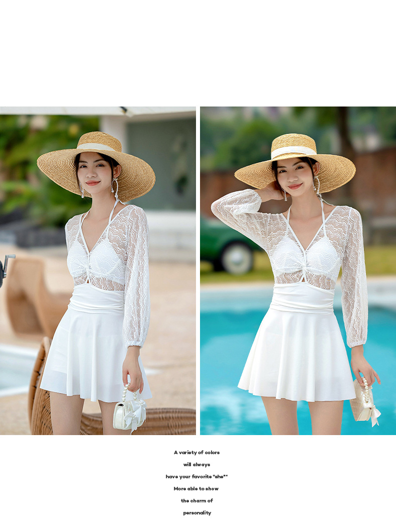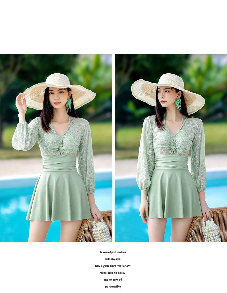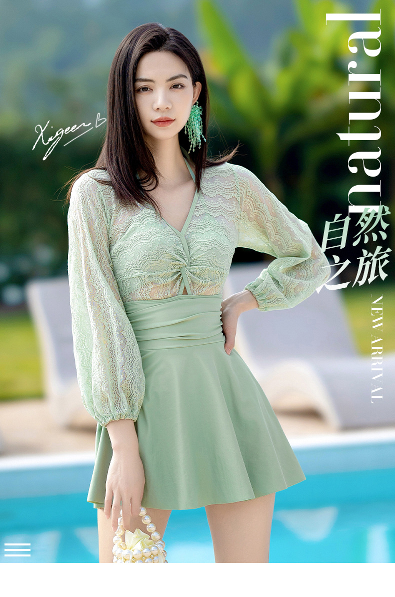 Xigeer 원피스 수영복 여성 2025 새로운 한국 스타일 스커트 수영복 하이 웨이스트 슬리밍 배꼽 커버 해변 휴가 수영복스토어 가기