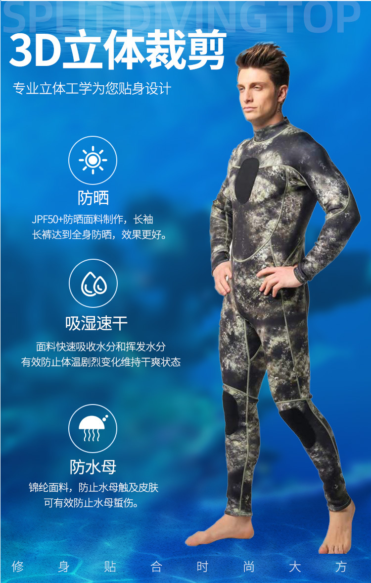 3mm 위장 슈퍼 탄성 디지털 인쇄 원피스 서퍼 세트 남자의 물고기 사냥 따뜻한 다이빙 세트 아마존 뜨거운 판매스토어 가기