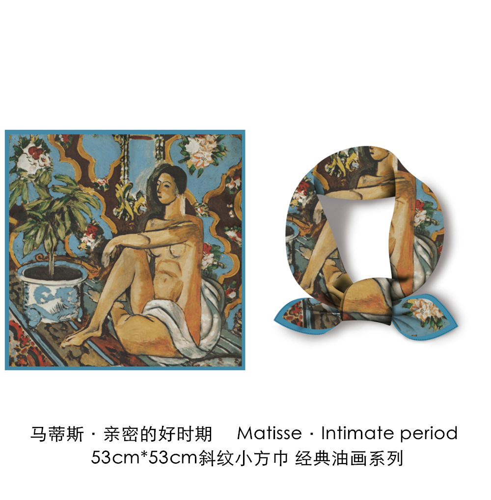 53*53 작은 사각 스카프 북유럽 만화 캐릭터 모조 실크 스카프 여성 마티스 유화 장식 스카프스토어 가기