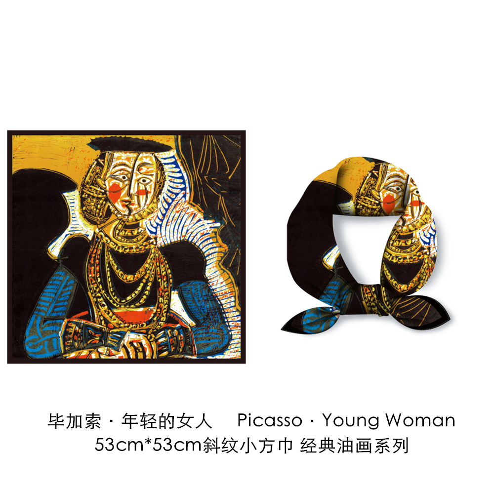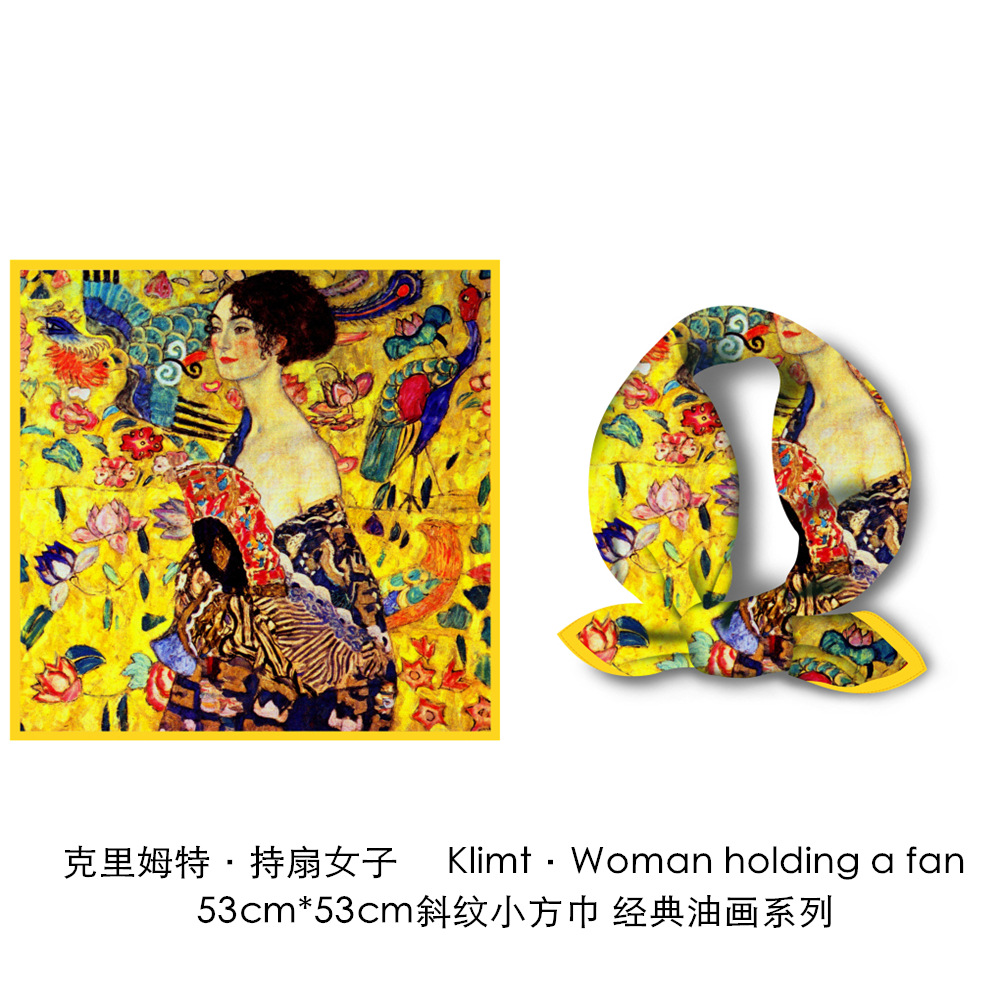 53*53 작은 사각 스카프 북유럽 만화 캐릭터 모조 실크 스카프 여성 마티스 유화 장식 스카프