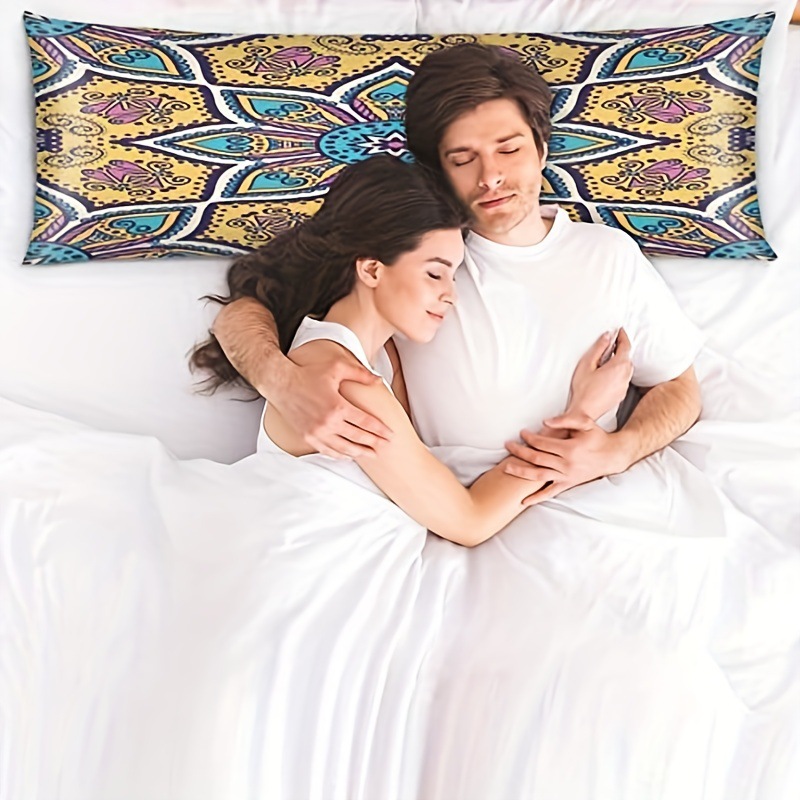 1.37 Mizhen 실크 밝은 새틴 인쇄 더블 롱 베개 가정용 커플 롱 원피스 롱 베개 부모-자식 베개스토어 가기