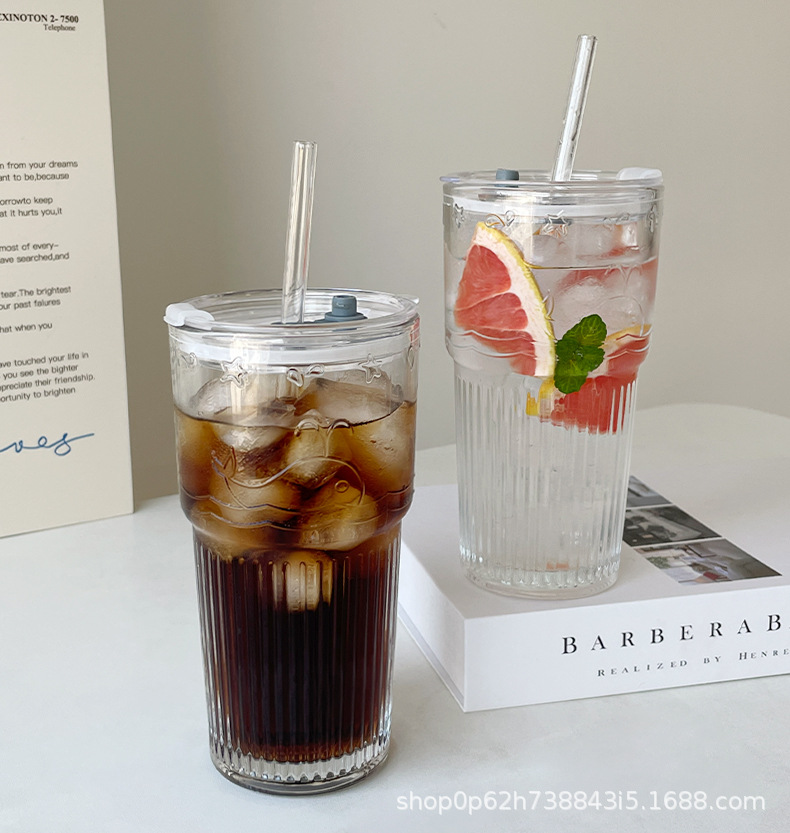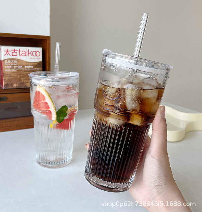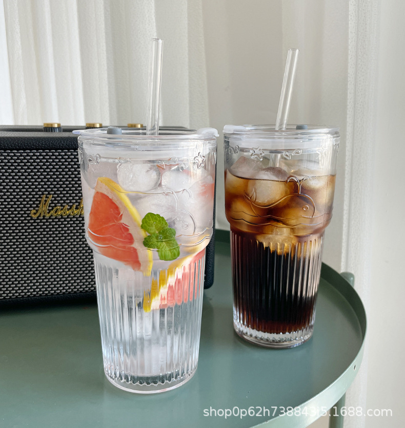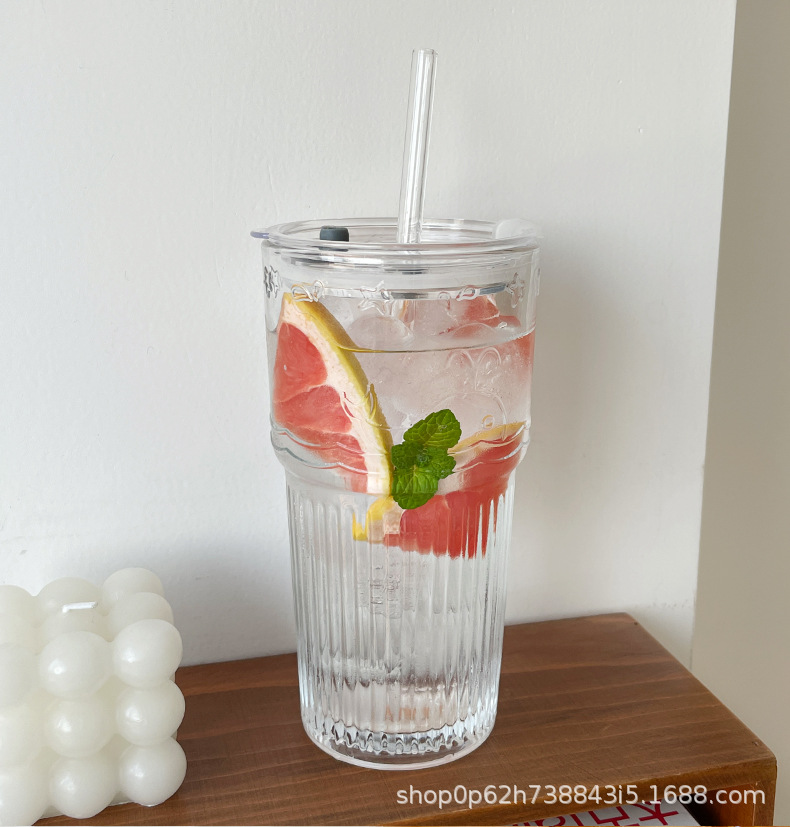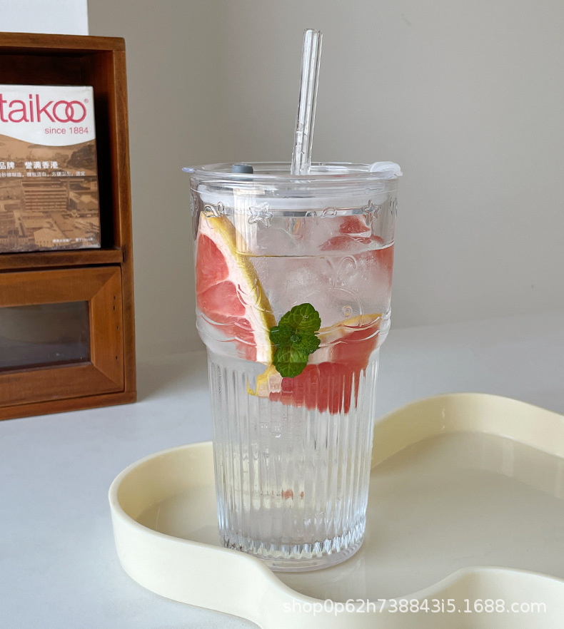 유리 컵 대용량 과일 차 흡입 튜브 컵 in 가정용 여름 여성 식수 두꺼운 컵 음료 주스 컵스토어 가기