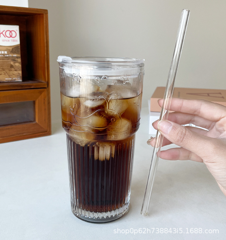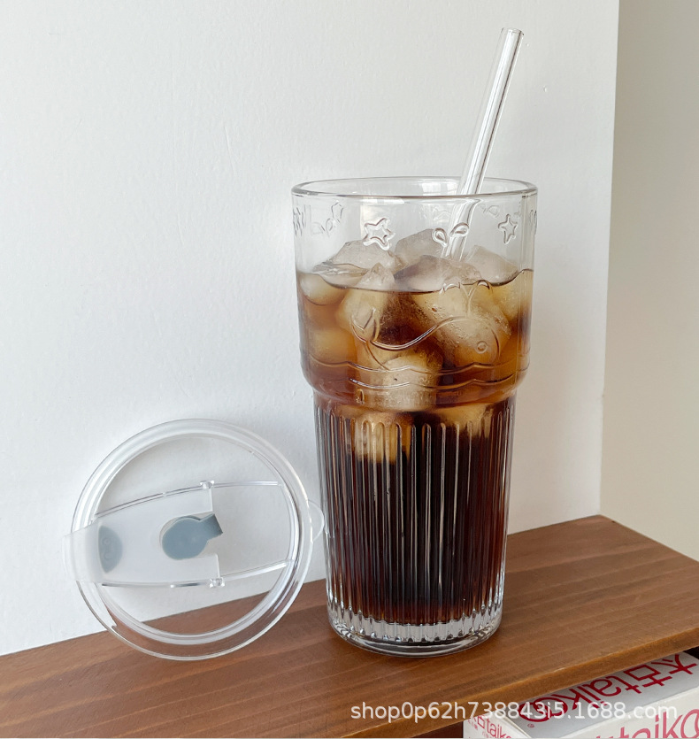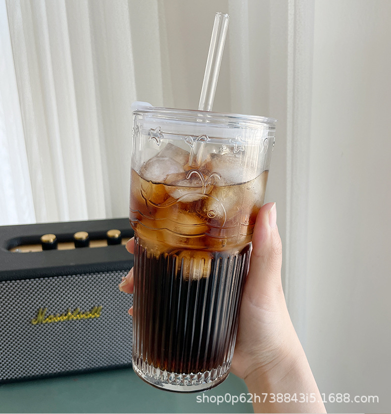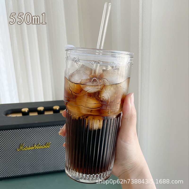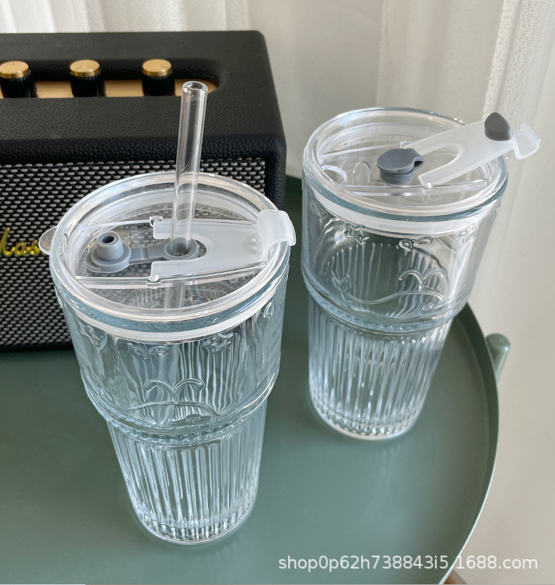 유리 컵 대용량 과일 차 흡입 튜브 컵 in 가정용 여름 여성 식수 두꺼운 컵 음료 주스 컵스토어 가기