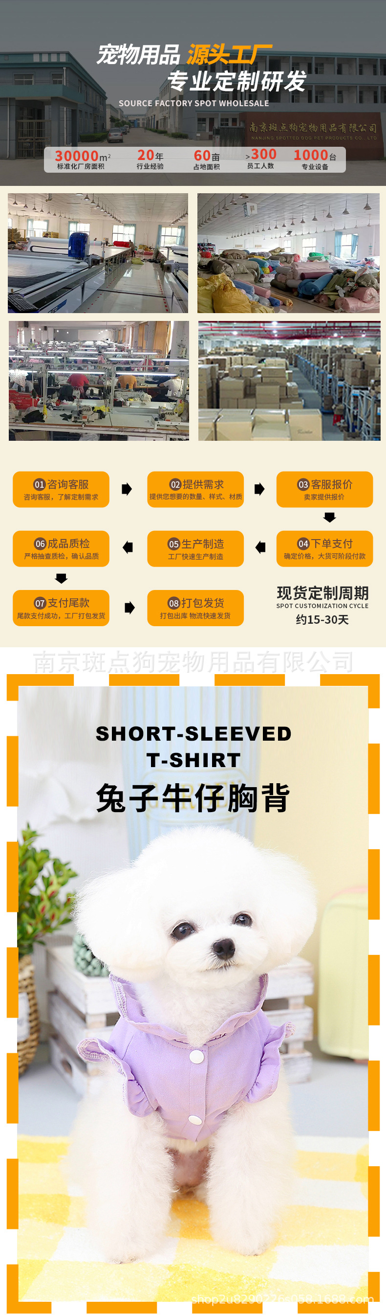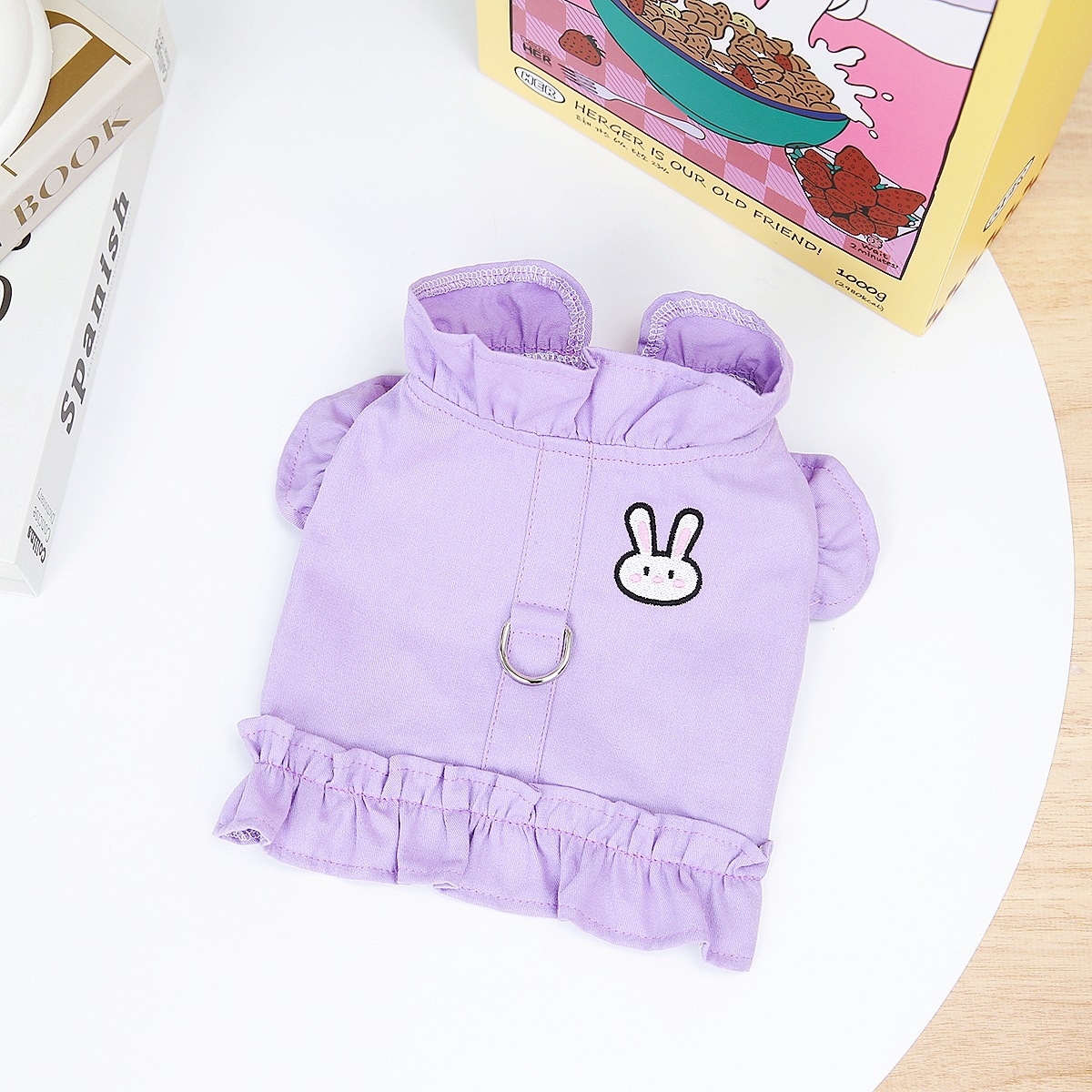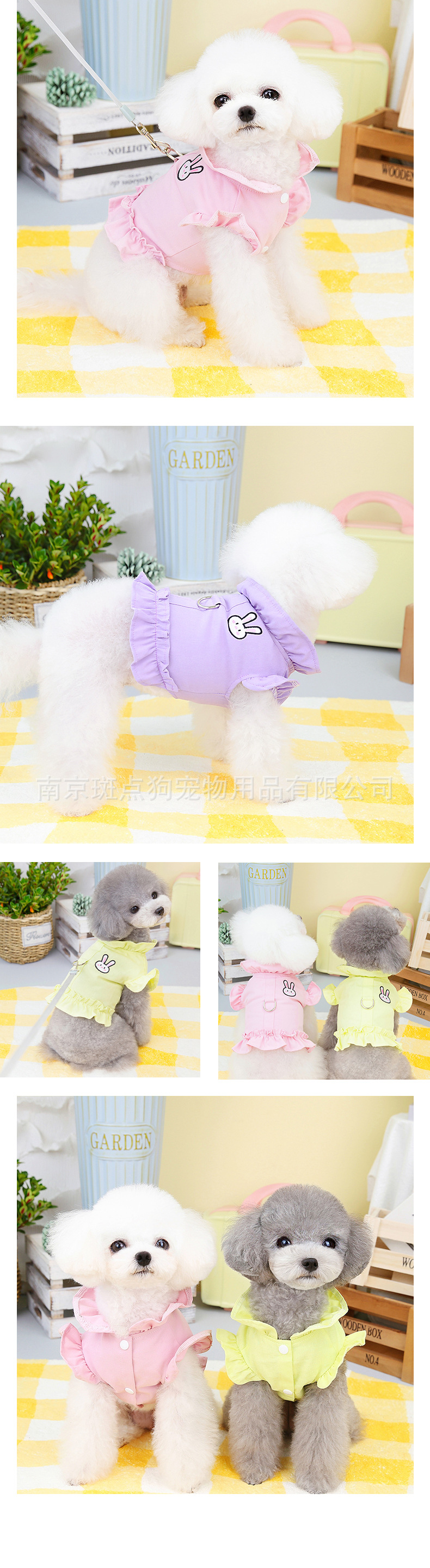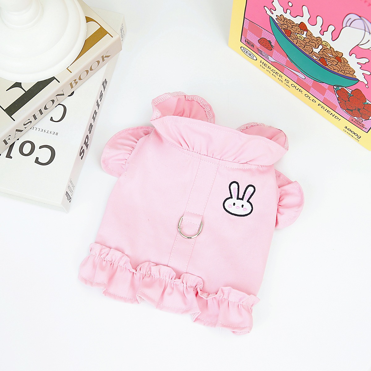 애완견 가슴끈 조끼 의류 봄 여름 신상품 토끼 데님 가슴끈 통기성 면 반팔
