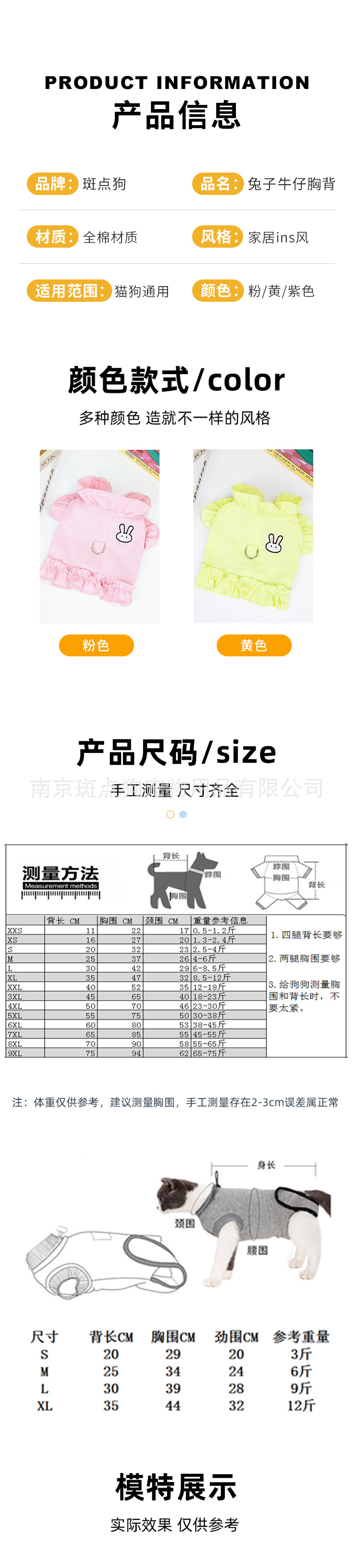 애완견 가슴끈 조끼 의류 봄 여름 신상품 토끼 데님 가슴끈 통기성 면 반팔스토어 가기