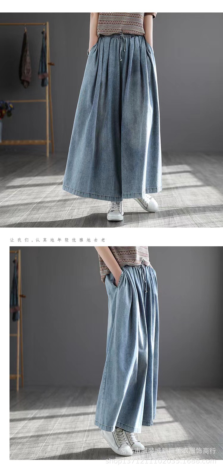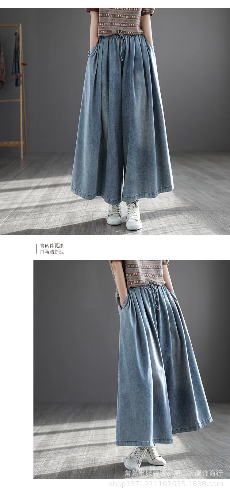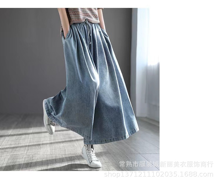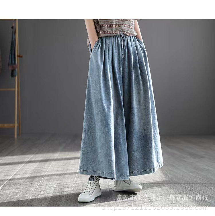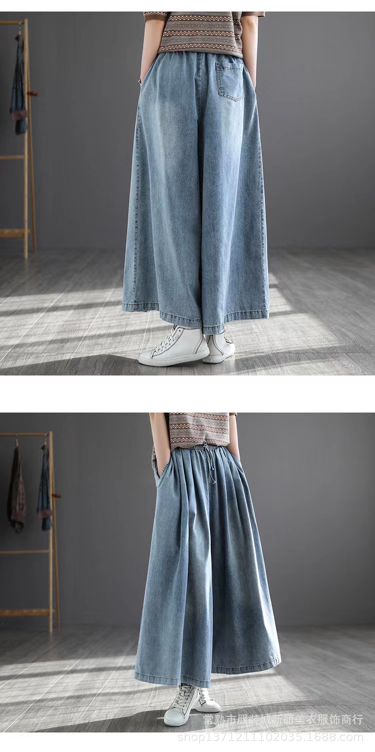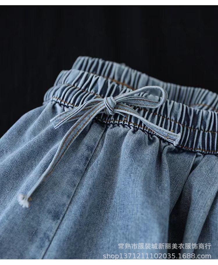 예술 복고풍 면 사용 청바지 여자의 봄 신상품 느슨한 슬리밍 플러스 사이즈 와이드 레그 바지스토어 가기