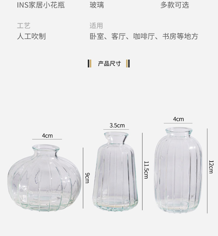 풍수에서 빈티지 3 종 세트 프랑스 투명 유리 꽃병 홈 장식 거실 포켓 꽃병스토어 가기