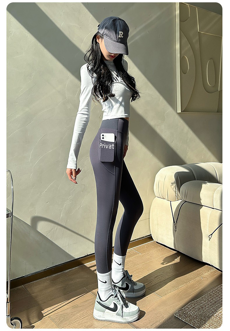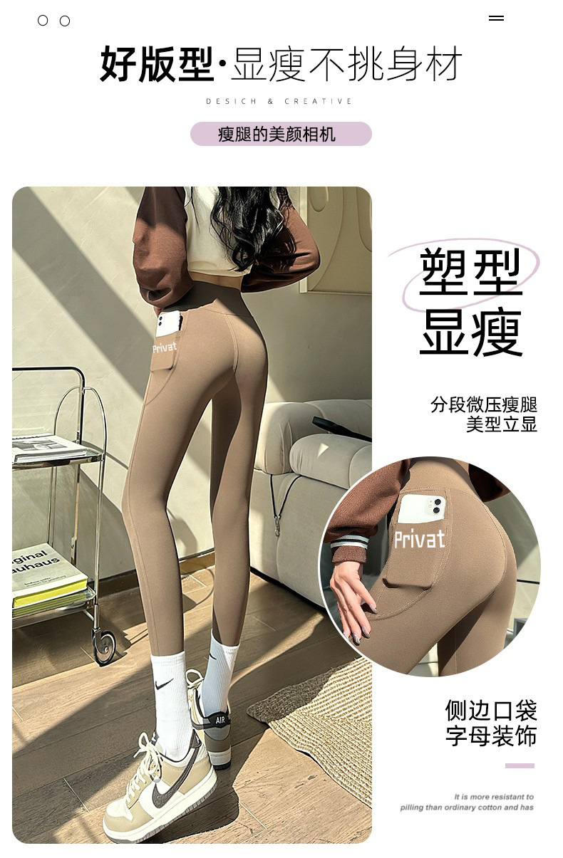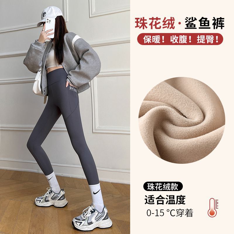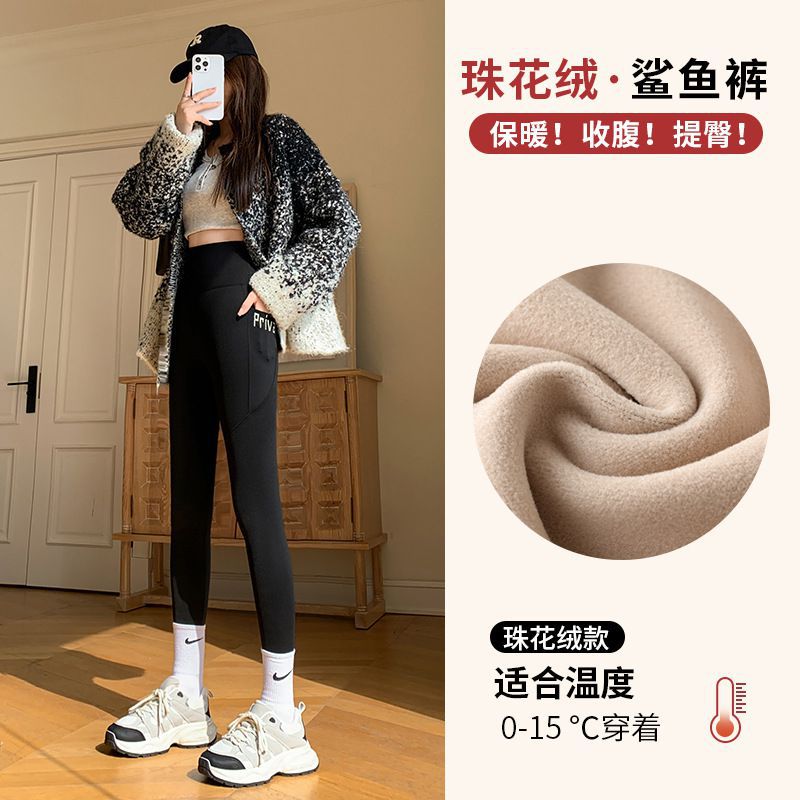 포켓 바비 바지 레깅스 여자의 가을과 겨울 기모 겉옷 얇은 배꼽 꽉 하이 웨이스트 꽉 슬림 요가 상어 바지스토어 가기