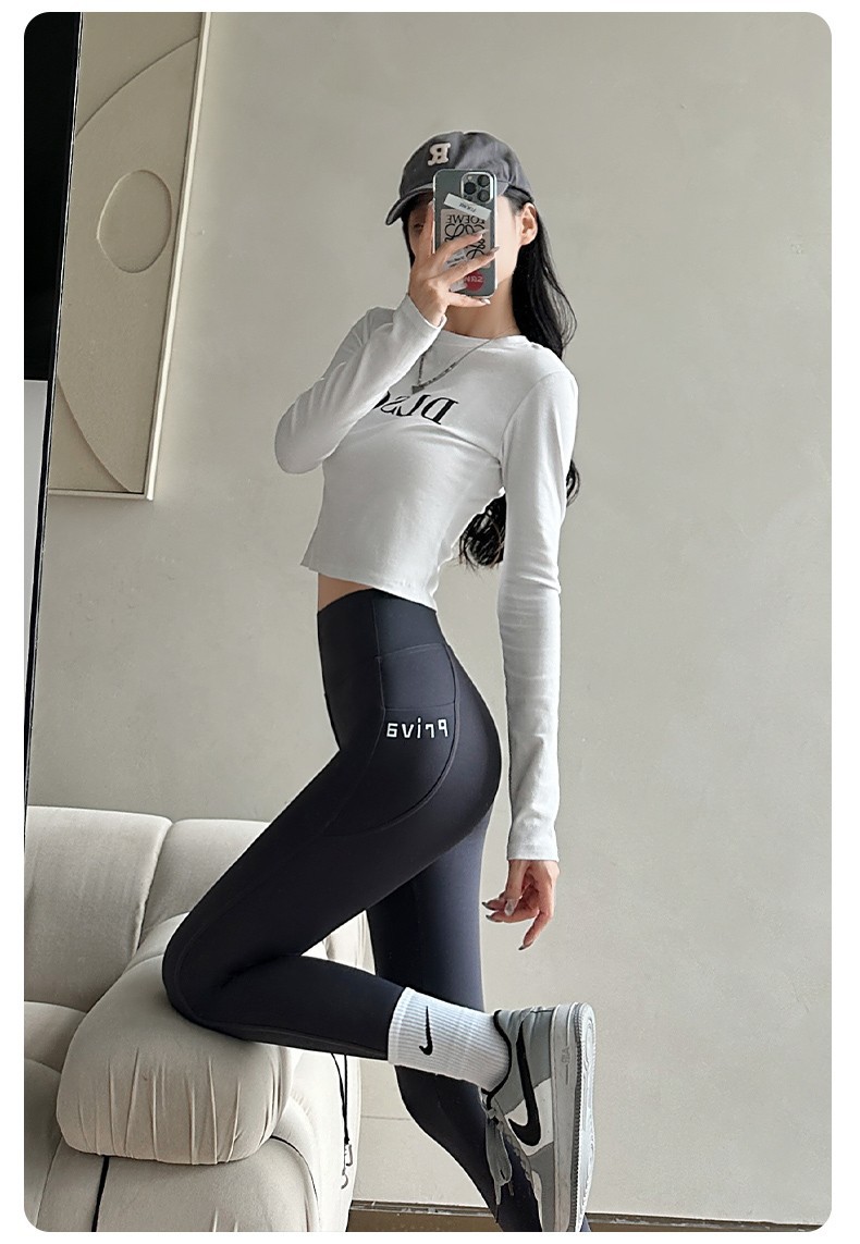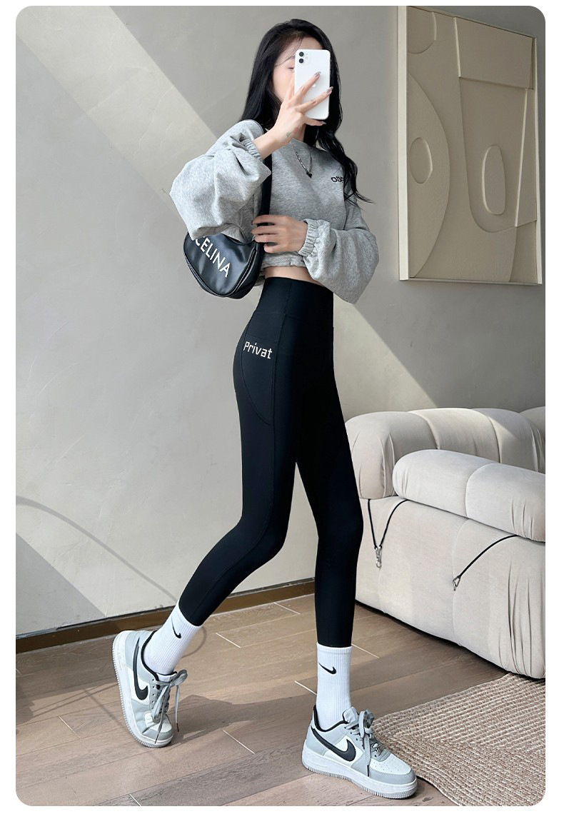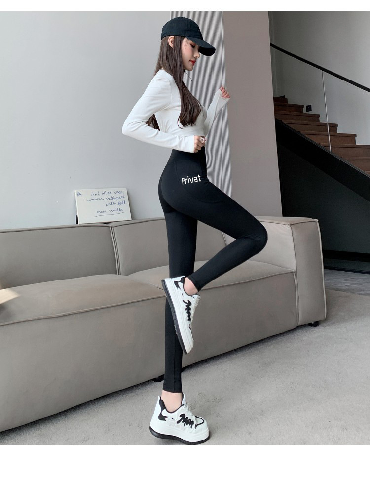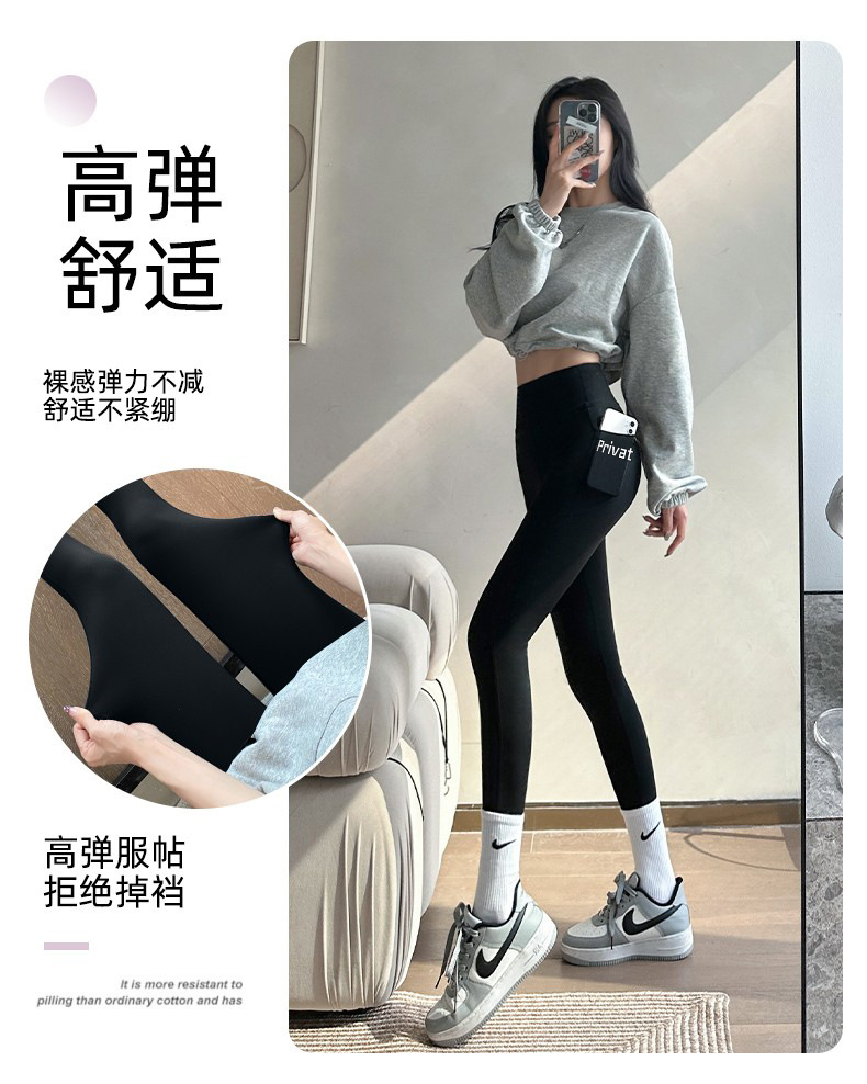 포켓 바비 바지 레깅스 여자의 가을과 겨울 기모 겉옷 얇은 배꼽 꽉 하이 웨이스트 꽉 슬림 요가 상어 바지스토어 가기