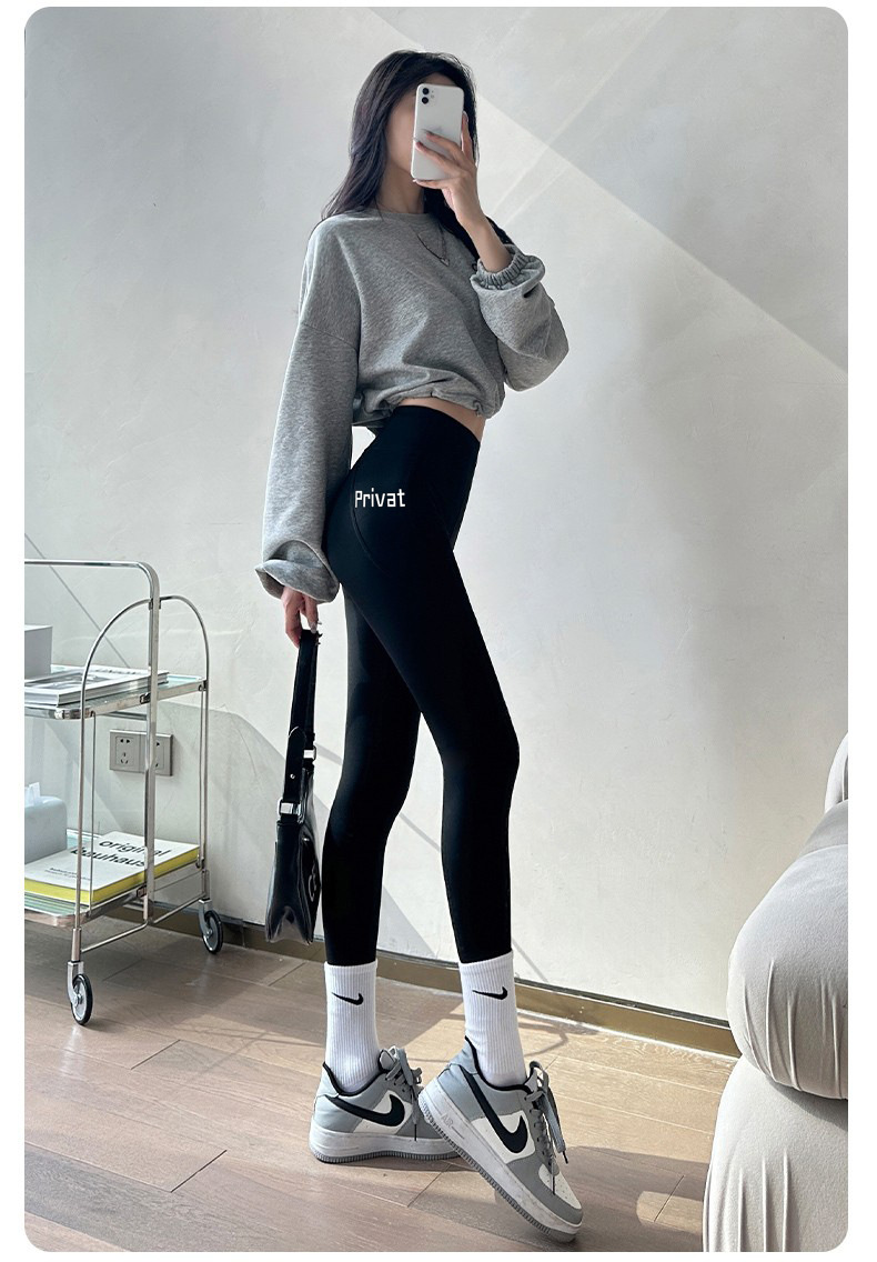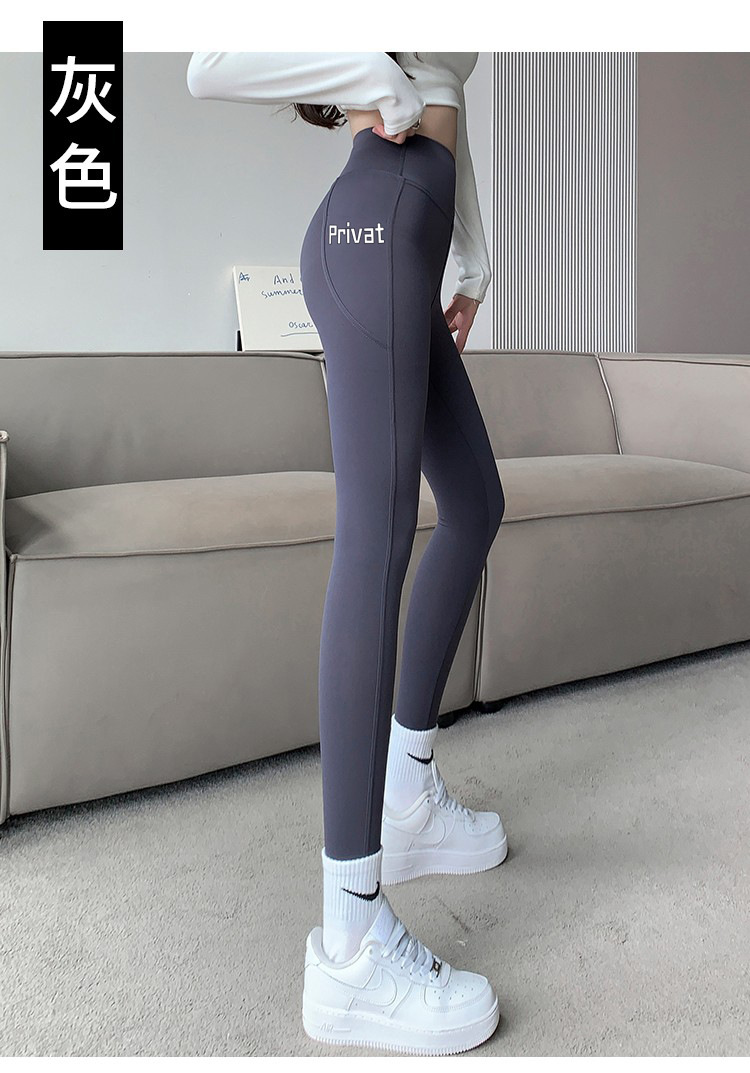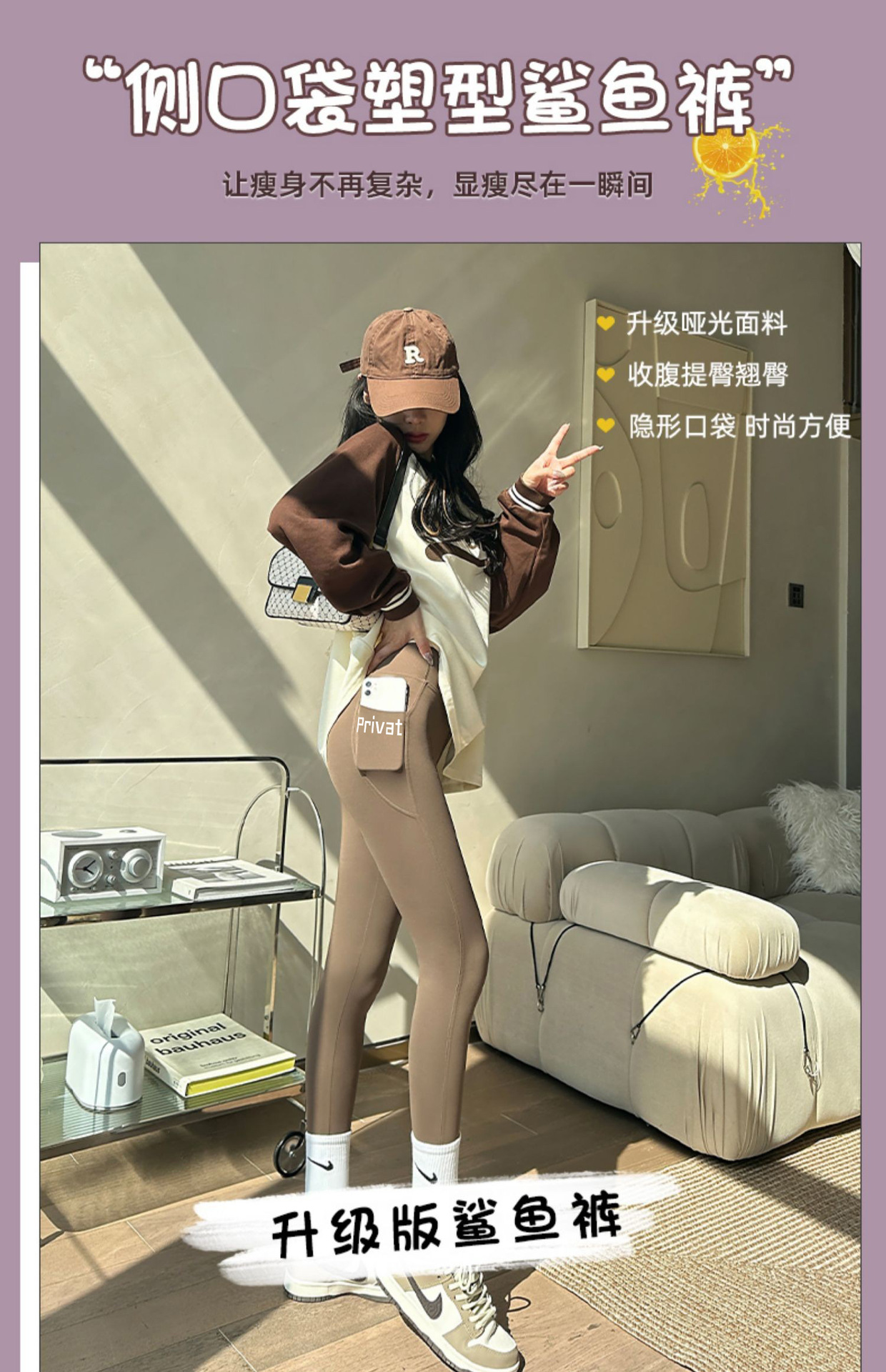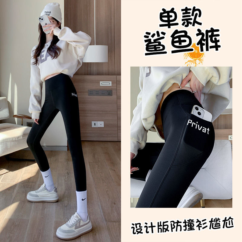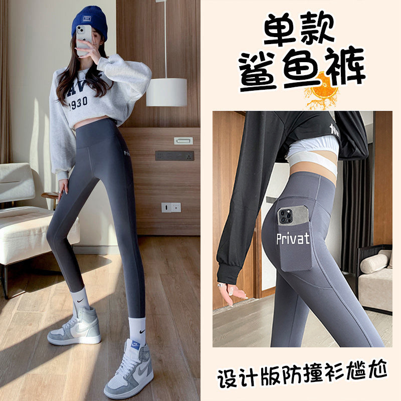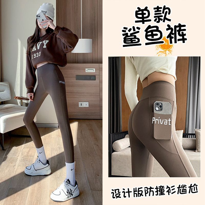 포켓 바비 바지 레깅스 여자의 가을과 겨울 기모 겉옷 얇은 배꼽 꽉 하이 웨이스트 꽉 슬림 요가 상어 바지
