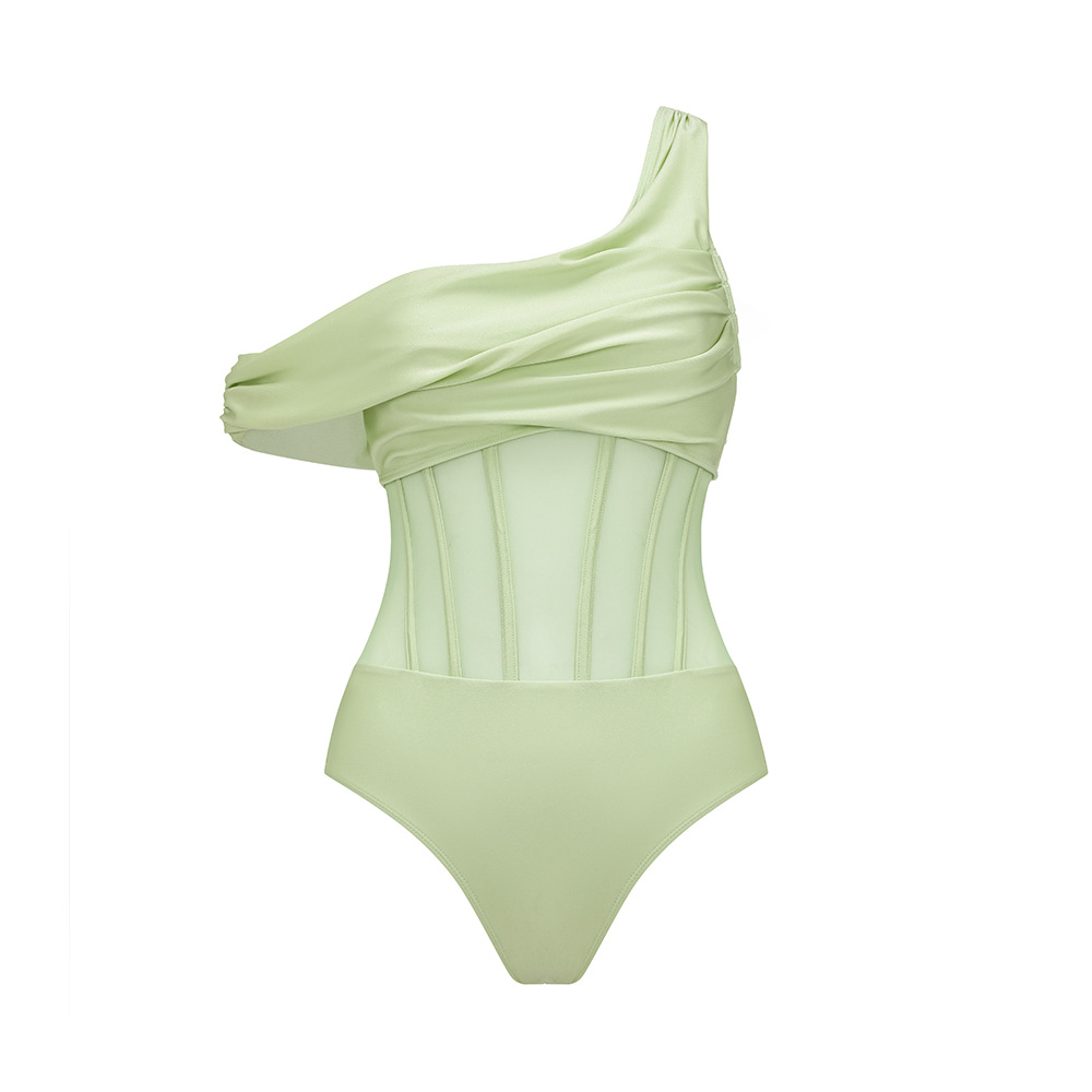 2024 유럽 및 미국 신상품 아마존 알리익스프레스 단색 원피스 수영복 여성용 배 가리기 슬림 비키니 휴가용 수영복