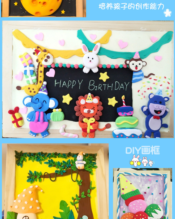 클레이 페인팅 3 차원 울트라 라이트 클레이 액자 어린이 창조적 인 수제 DIY 재료 유치원 나무 색 진흙 사진 프레임스토어 가기