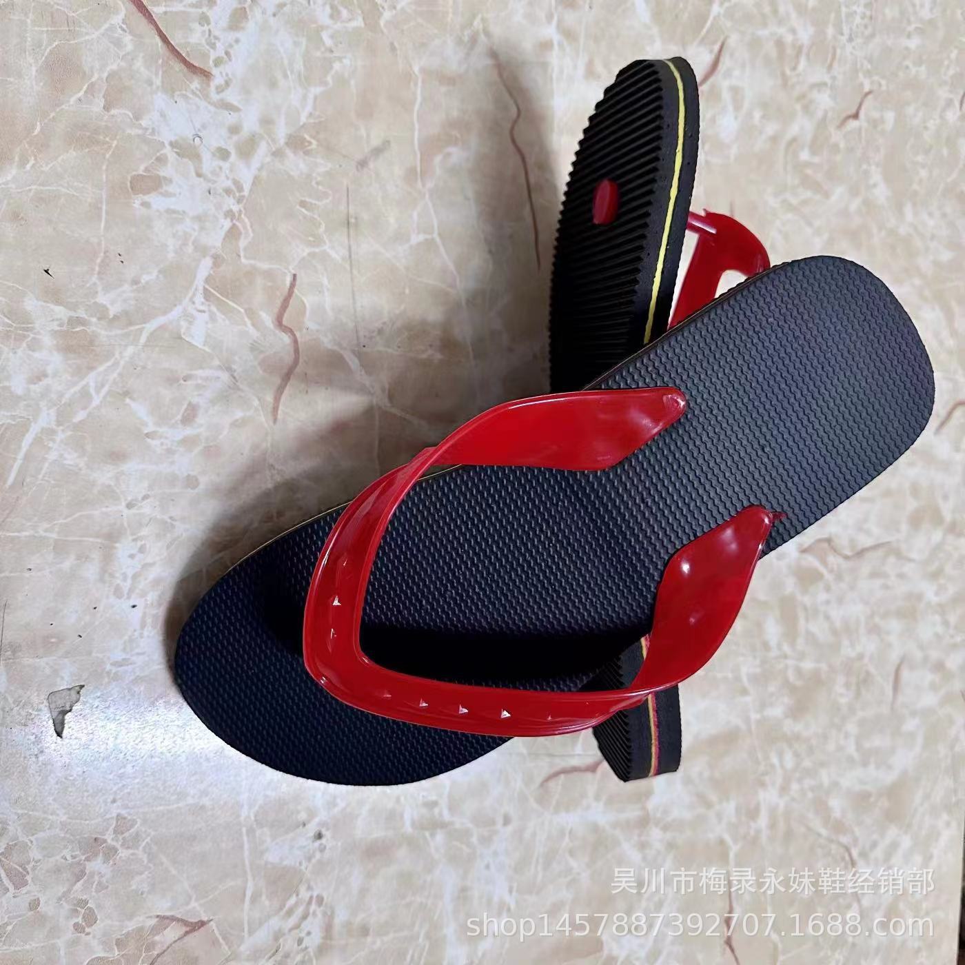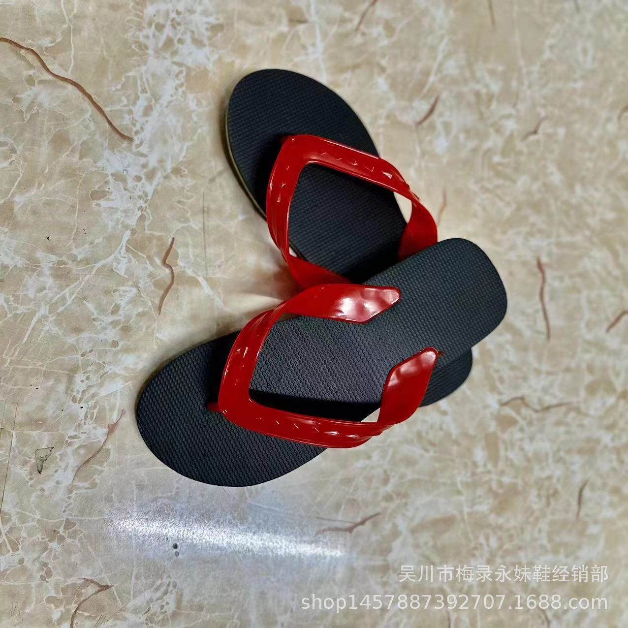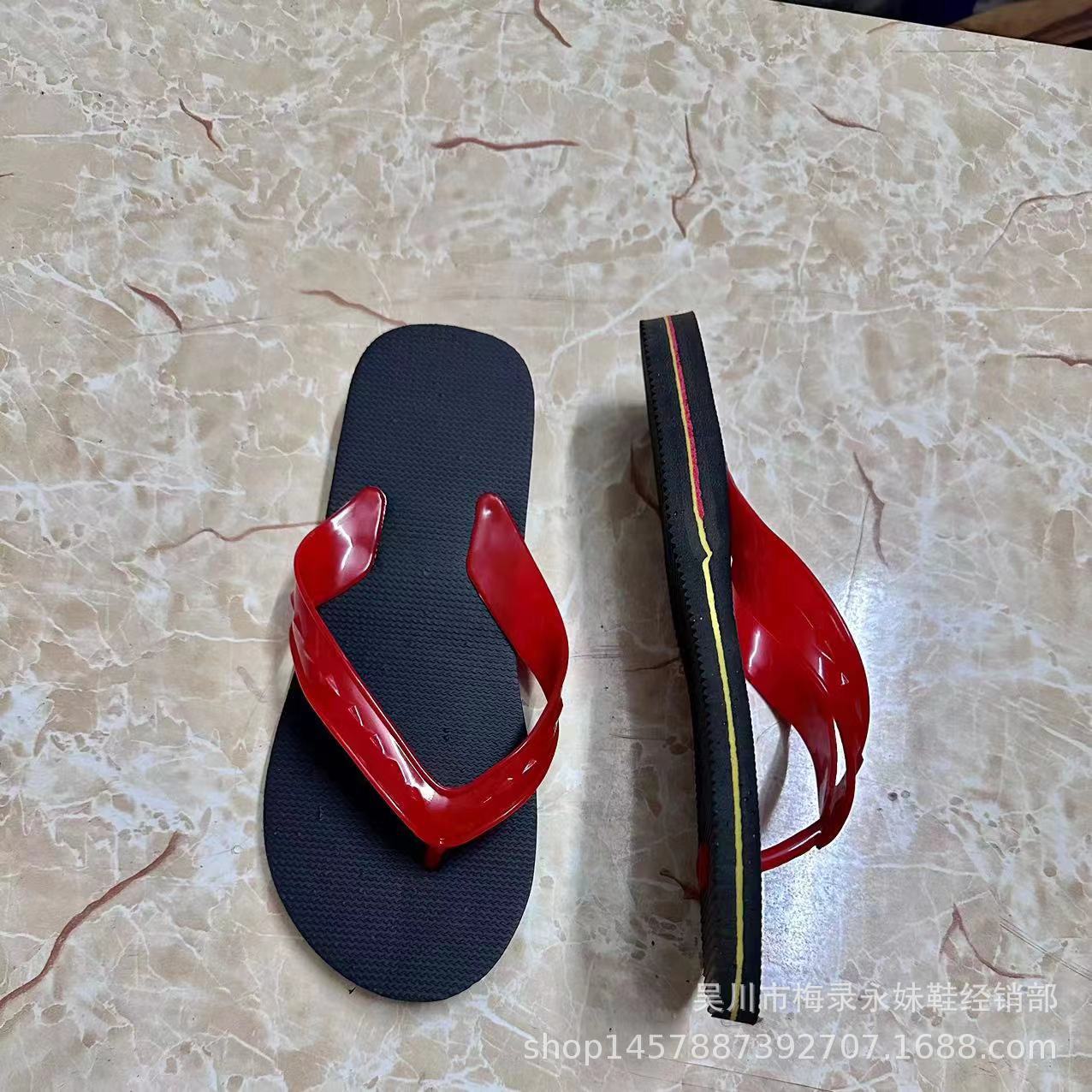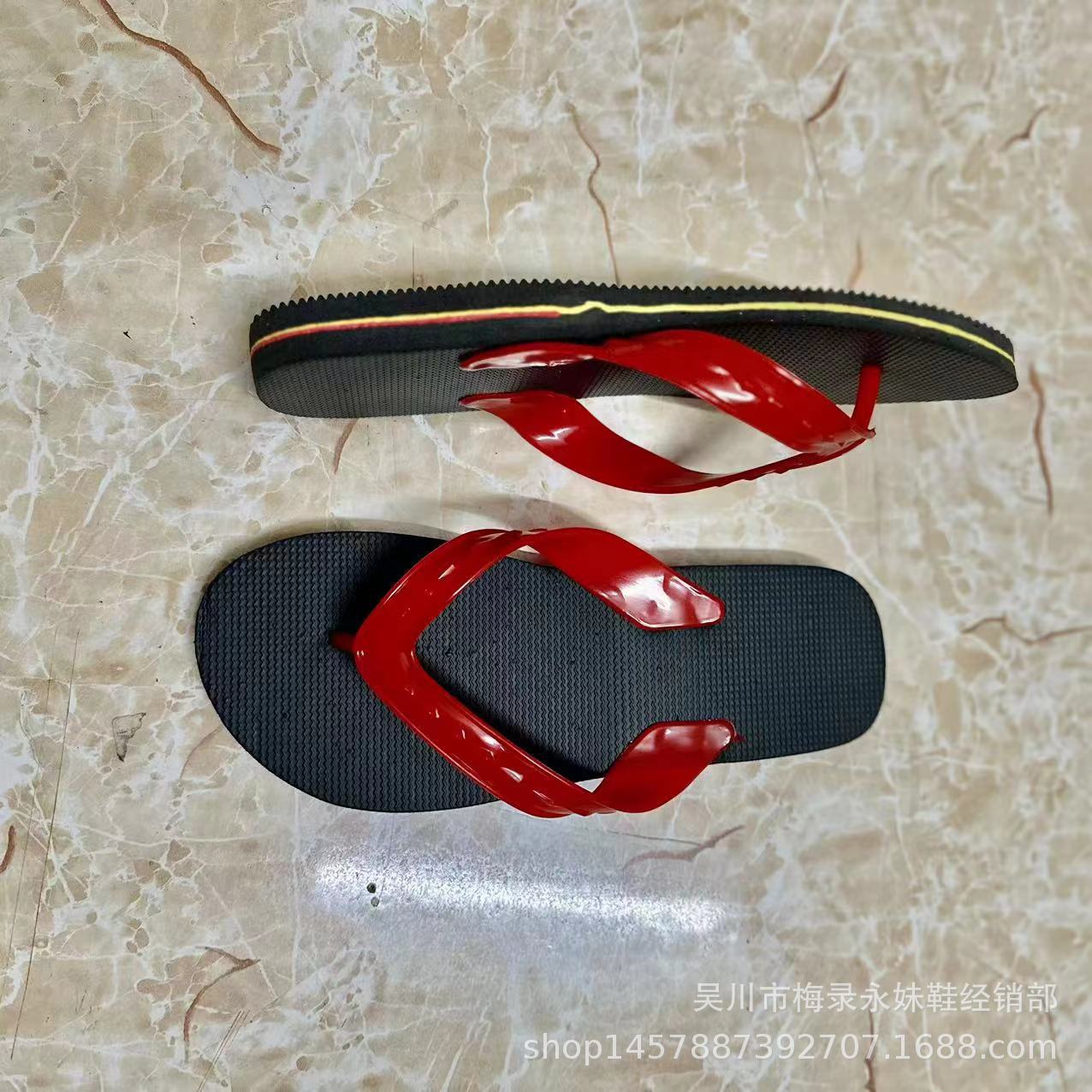 Zhanjiang Wuchuan Leizhou 레드 플립 플롭 남성 여름 미끄럼 방지 단순 캐주얼 레드 플랫 힐 샌들 비치스토어 가기