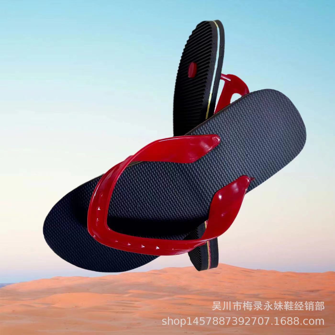 Zhanjiang Wuchuan Leizhou 레드 플립 플롭 남성 여름 미끄럼 방지 단순 캐주얼 레드 플랫 힐 샌들 비치