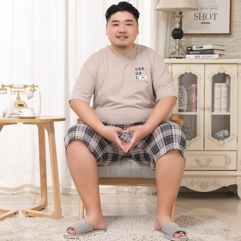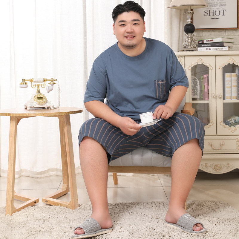 메이지 윤 남자의 순면 라운드 넥 짧은 소매 얇은 잠옷 5XL 플러스 사이즈 뚱뚱한 남자 가정 옷 세트스토어 가기