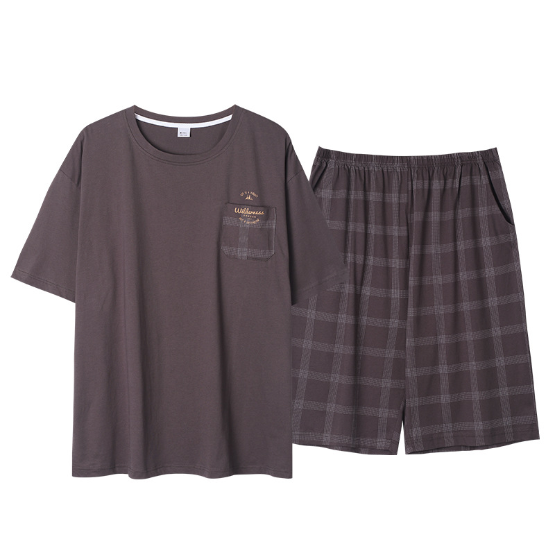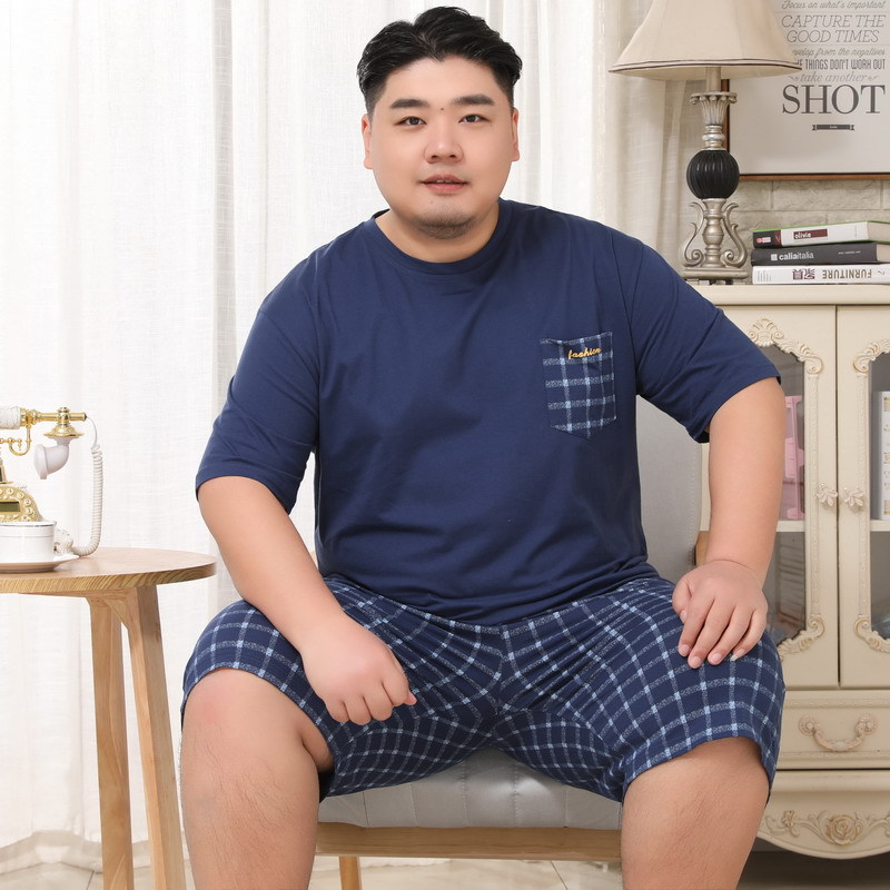 메이지 윤 남자의 순면 라운드 넥 짧은 소매 얇은 잠옷 5XL 플러스 사이즈 뚱뚱한 남자 가정 옷 세트