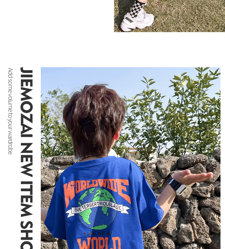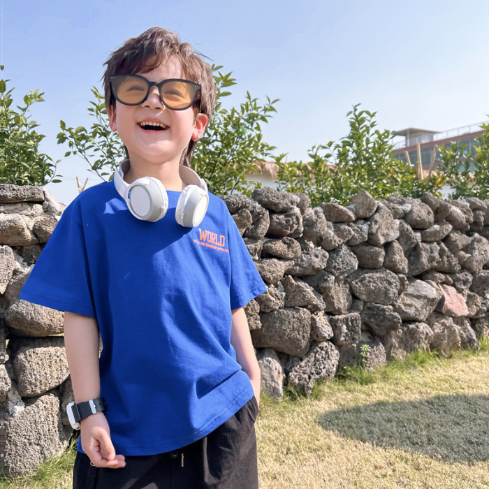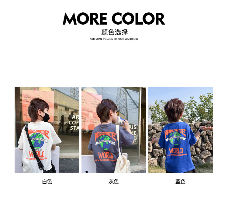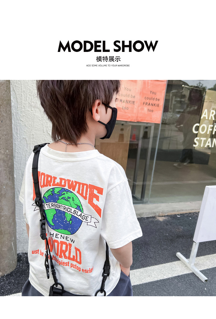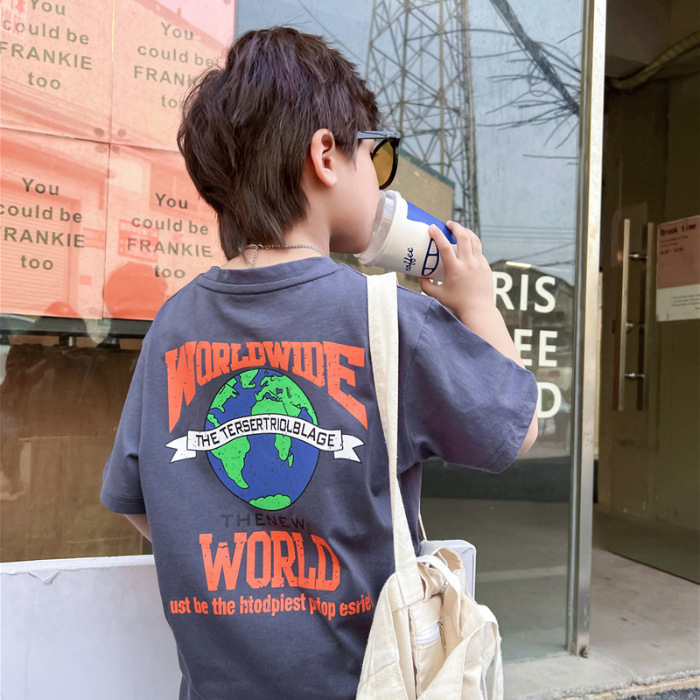 跨境纯棉男童短袖t恤新款夏季儿童男孩中大童夏装洋气卡通上衣潮