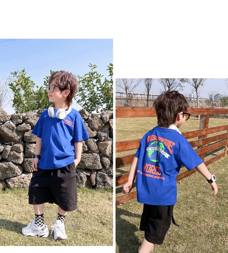 男童中大童短袖t恤2023夏季新款洋气潮流儿童装男孩宽松上衣