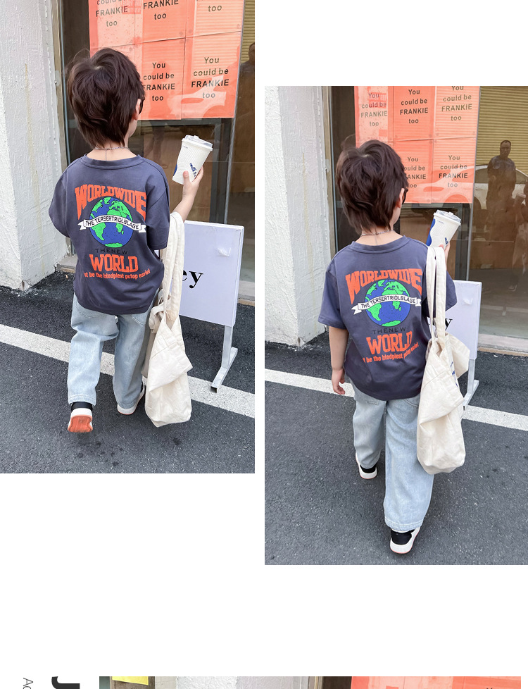 童装男童短袖t恤2023新款中大童夏季儿童洋气宽松上衣女童夏装潮
