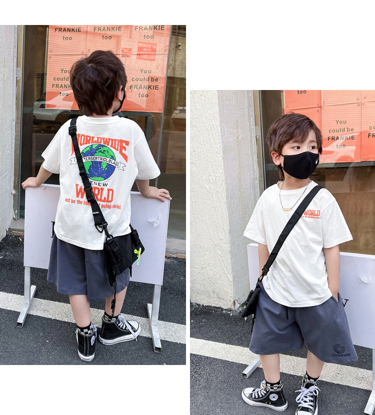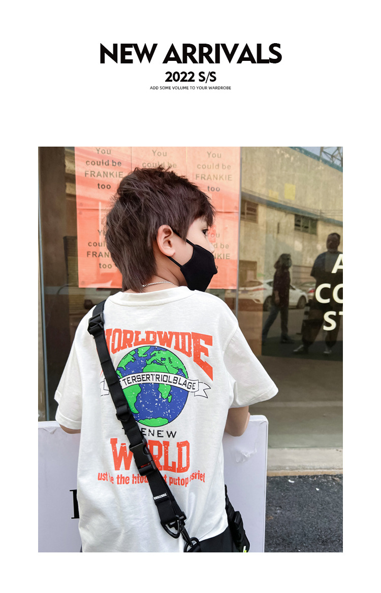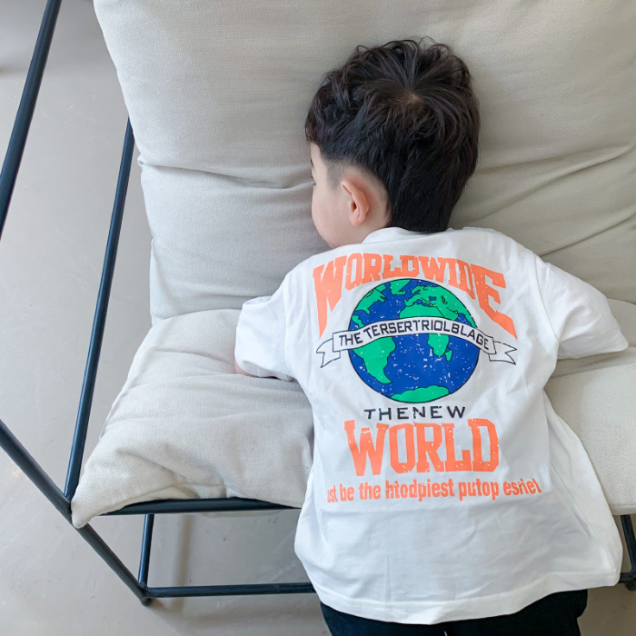 남아 반팔 티셔츠 화이트 어스 앞면과 뒷면 프린트 루즈한 하프 슬리브 내부 베이스 레이어 셔츠 서양식 여름 탑