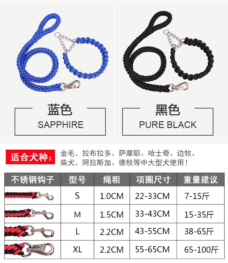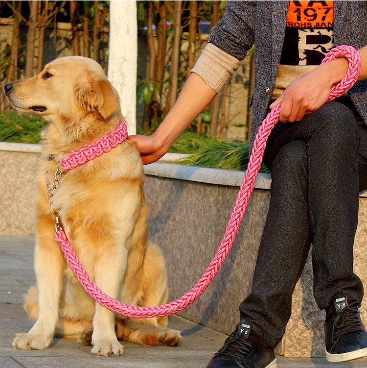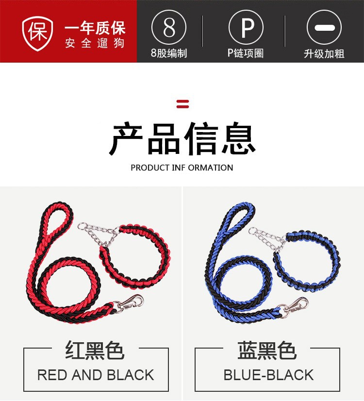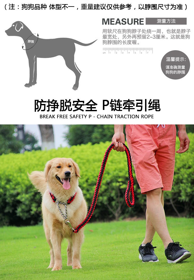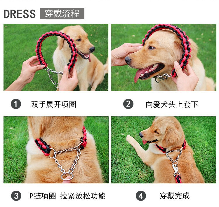 공장 도매 개 로프 8 가닥 로프 P 체인 칼라 애완 동물 가죽 끈 중형 및 대형 개 체인 골든 리트리버 가죽 끈스토어 가기