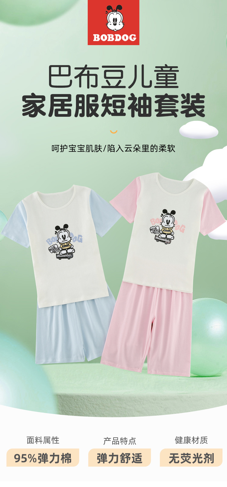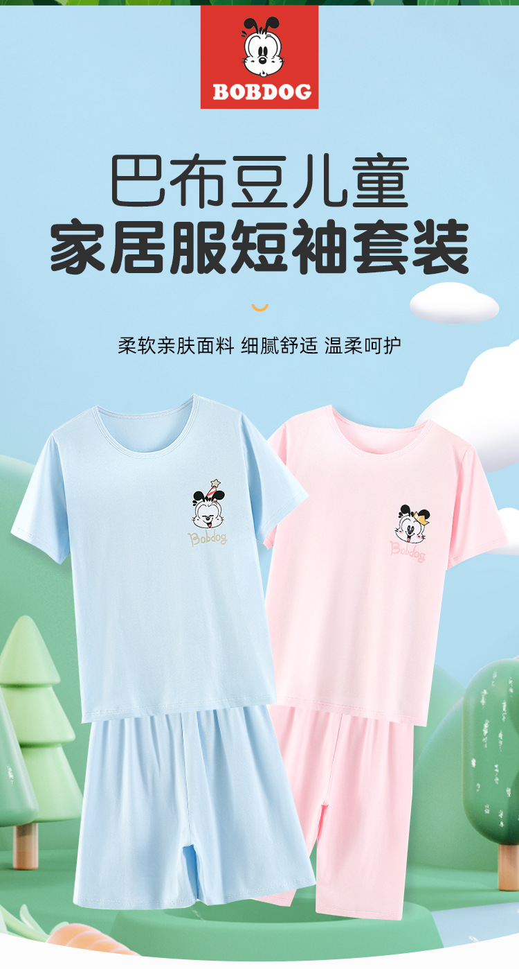 정리 바부 빈 어린이 잠옷 소년과 소녀 여름 반팔 바지 면 큰 아이 에어컨 가정 옷 세트
