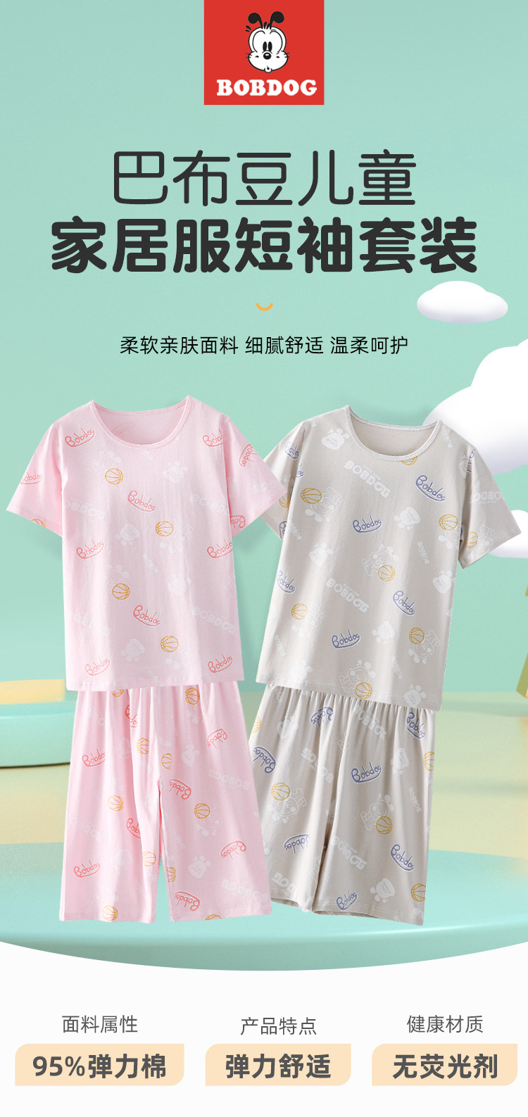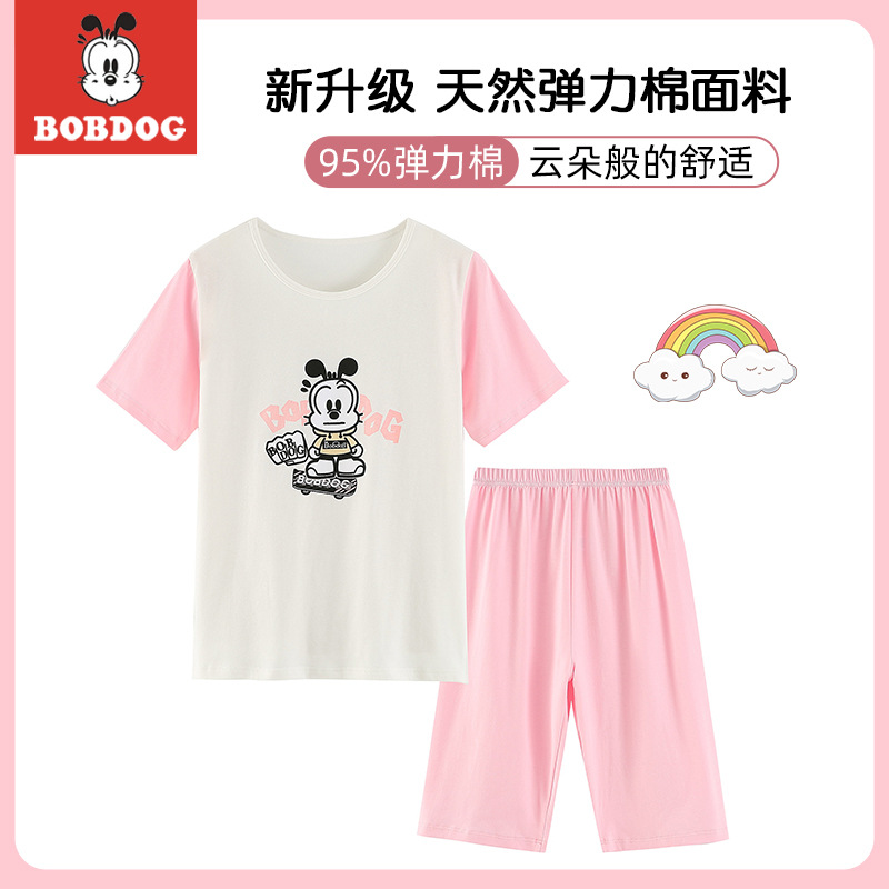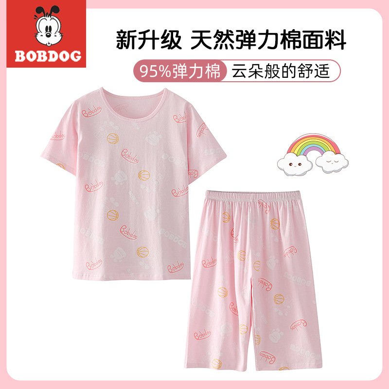 정리 바부 빈 어린이 잠옷 소년과 소녀 여름 반팔 바지 면 큰 아이 에어컨 가정 옷 세트스토어 가기
