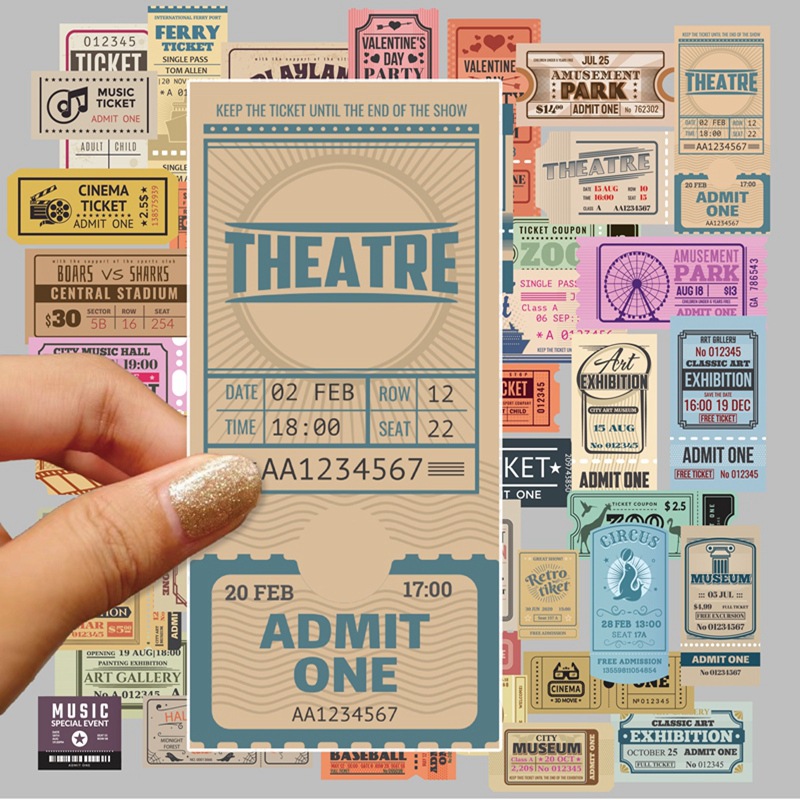 레트로 티켓 스티커 2 50 손 계정 스티커 크리에이티브 및 종이 손 계정 스티커 장식 아트 DIY 컬렉션 스티커스토어 가기